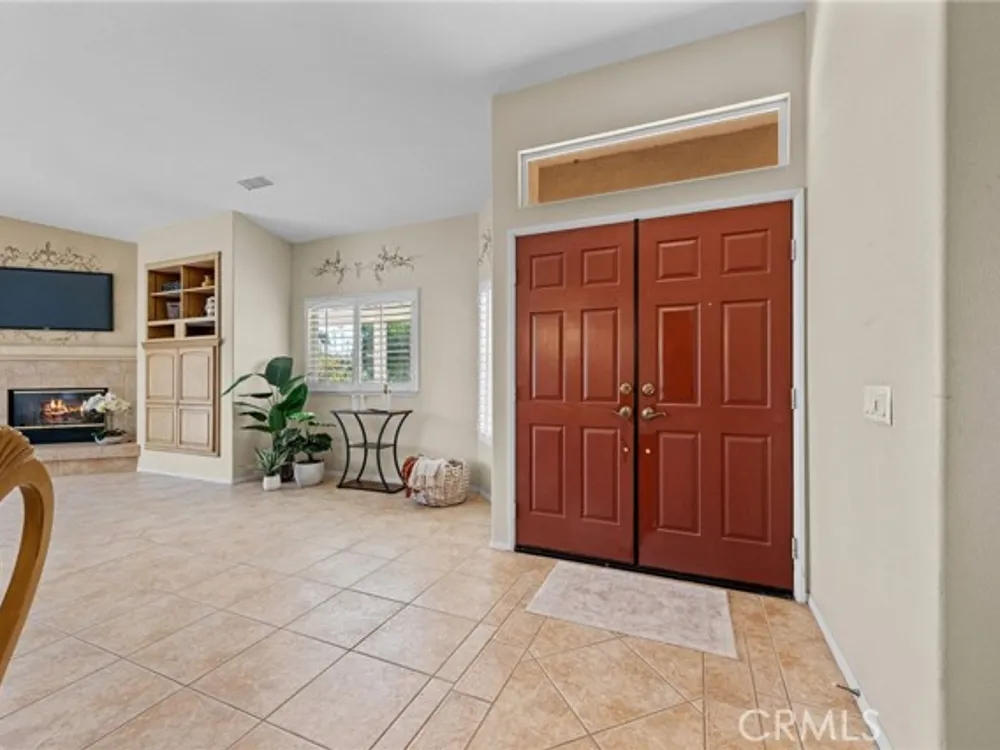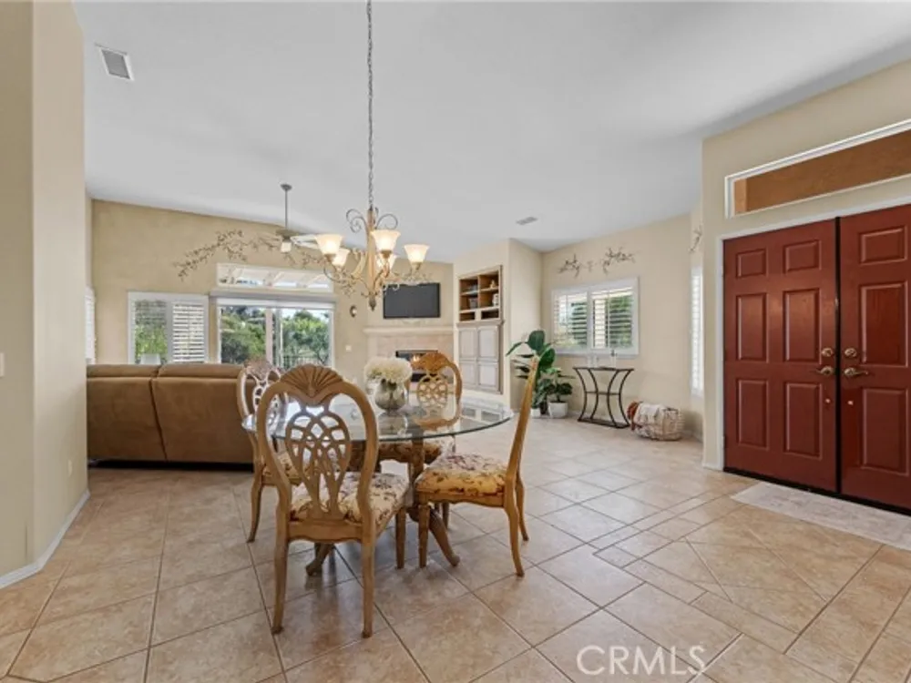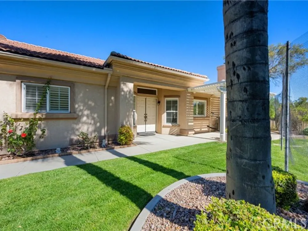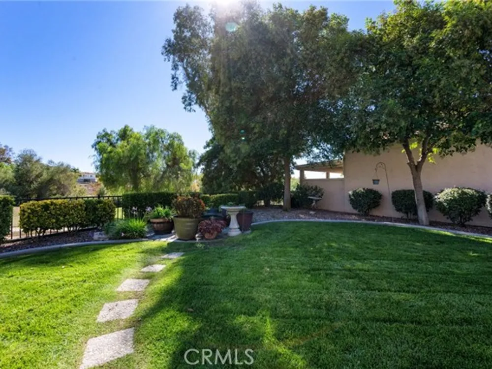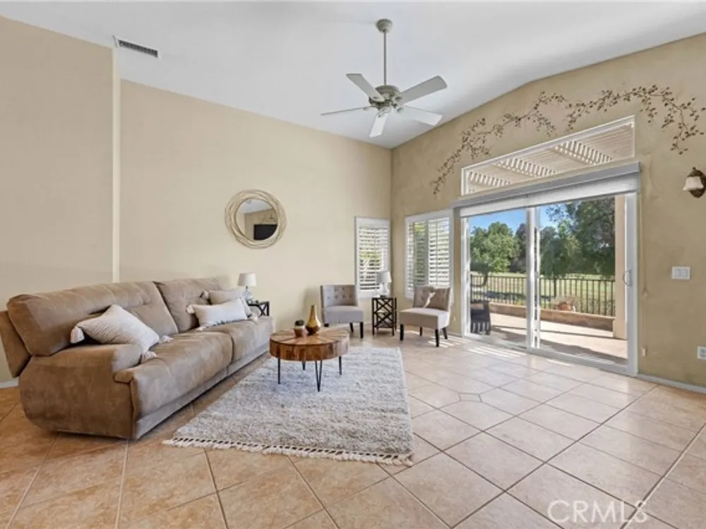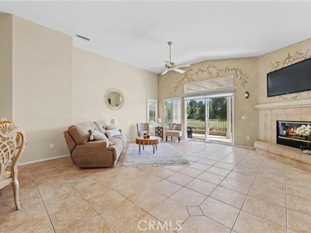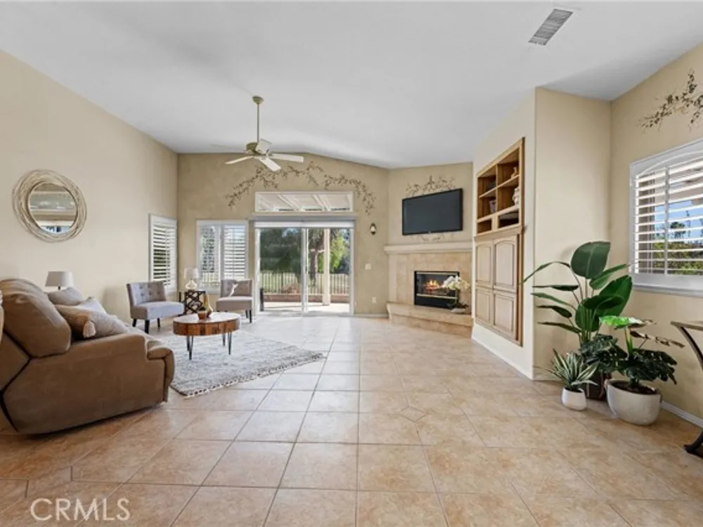 Welcome to the best location on the golf course at The Colony – Murrieta's premier 55+ gated community! Enter through your private gate into a charming yard-unique to this home's location-before stepping inside this beautifully maintained single-story residence. Offering the perfect blend active adult living, this home sits on a quiet cul-de-sac overlooking the 1st fairway. The spacious, light-filled floor plan features vaulted ceilings, custom tile flooring, plantation shutters, and a cozy fireplace. The well-appointed kitchen and dining area include rich wood cabinetry, Corian countertops, Bosch dishwasher, stainless steel LG oven and built-in microwave, a six-burner gas cooktop, large pantry, and the stainless steel refrigerator is included. The primary suite features vaulted ceilings and opens directly to the covered wrap-around patio with golf course views. The en-suite bathroom offers dual sinks, a soaking tub, walk-in shower, separate vanity, and a large walk-in closet. Two additional bedrooms are generously sized with wood floors, and the second bathroom also includes a walk-in shower. The large laundry room provides abundant cabinetry, a deep sink, and comes complete with washer and dryer. You'll also enjoy direct access to the two-car garage with built-in cabinets. Re