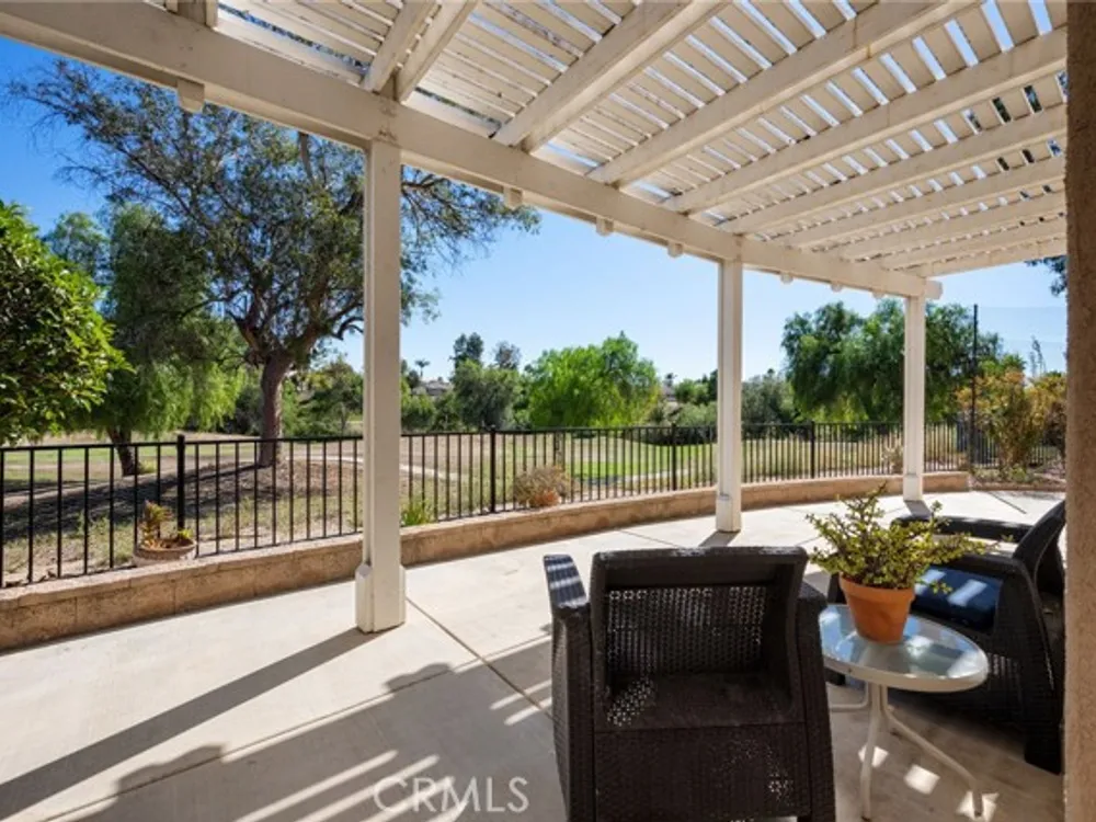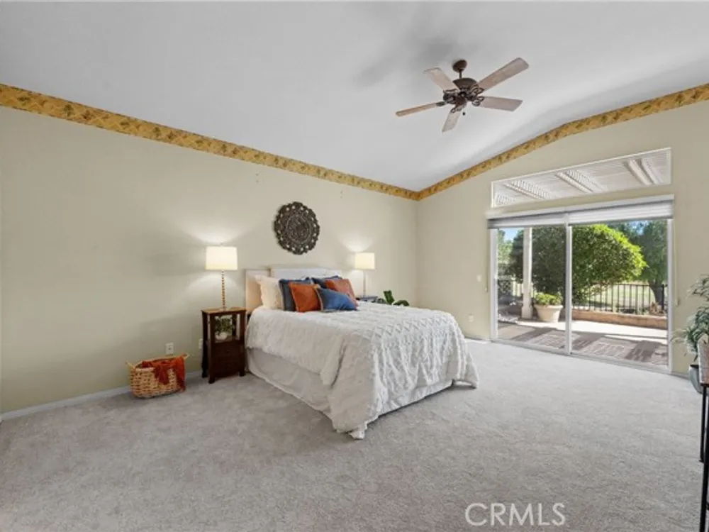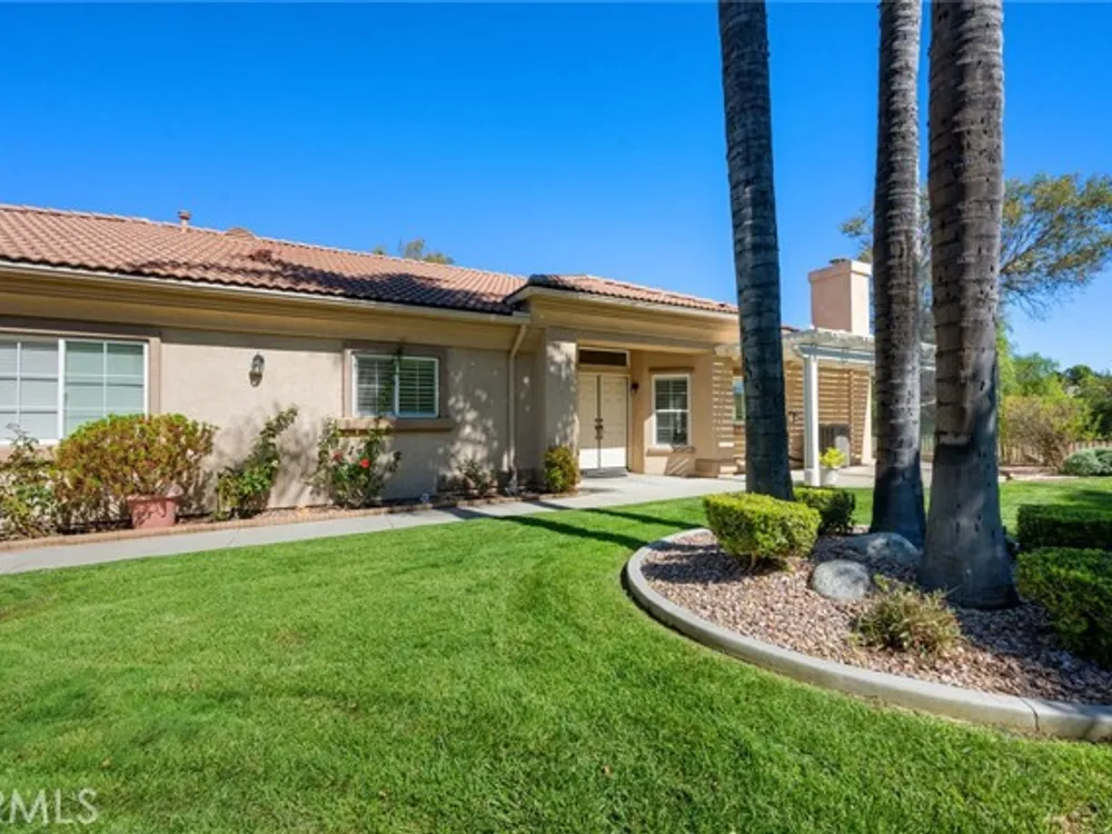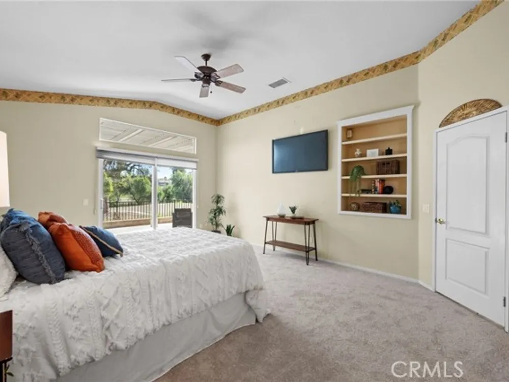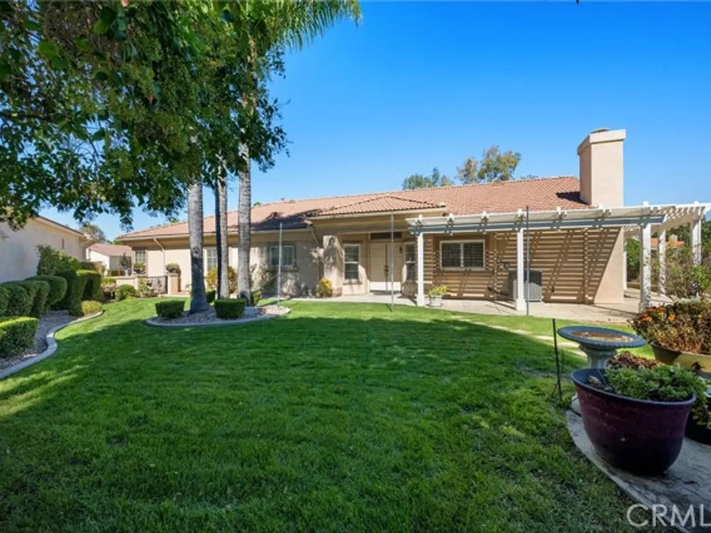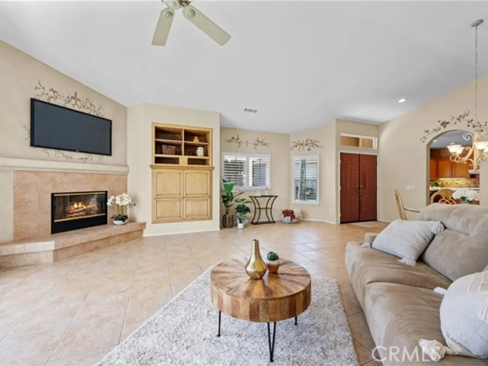 Welcome to the best location on the golf course at The Colony – Murrieta's premier 55+ gated community! Enter through your private gate into a charming yard-unique to this home's location-before stepping inside this beautifully maintained single-story residence. Offering the perfect blend active adult living, this home sits on a quiet cul-de-sac overlooking the 1st fairway. The spacious, light-filled floor plan features vaulted ceilings, custom tile flooring, plantation shutters, and a cozy fireplace. The well-appointed kitchen and dining area include rich wood cabinetry, Corian countertops, Bosch dishwasher, stainless steel LG oven and built-in microwave, a six-burner gas cooktop, large pantry, and the stainless steel refrigerator is included. The primary suite features vaulted ceilings and opens directly to the covered wrap-around patio with golf course views. The en-suite bathroom offers dual sinks, a soaking tub, walk-in shower, separate vanity, and a large walk-in closet. Two additional bedrooms are generously sized with wood floors, and the second bathroom also includes a walk-in shower. The large laundry room provides abundant cabinetry, a deep sink, and comes complete with washer and dryer. You'll also enjoy direct access to the two-car garage with built-in cabinets. Re