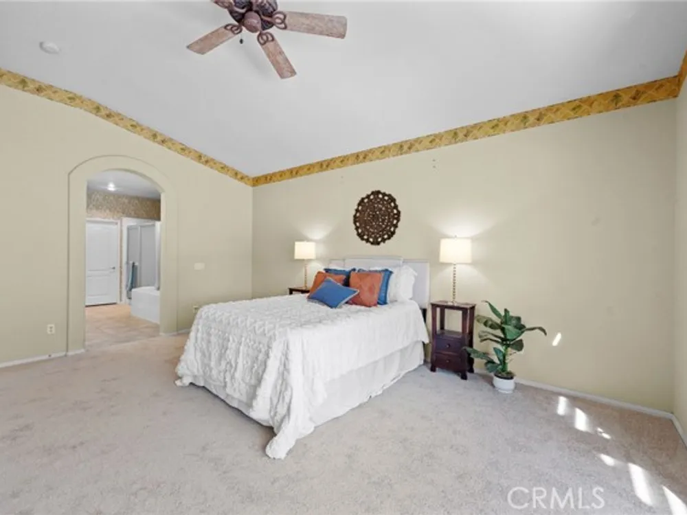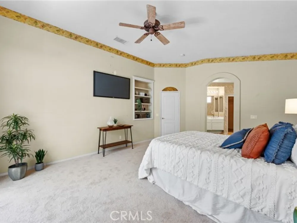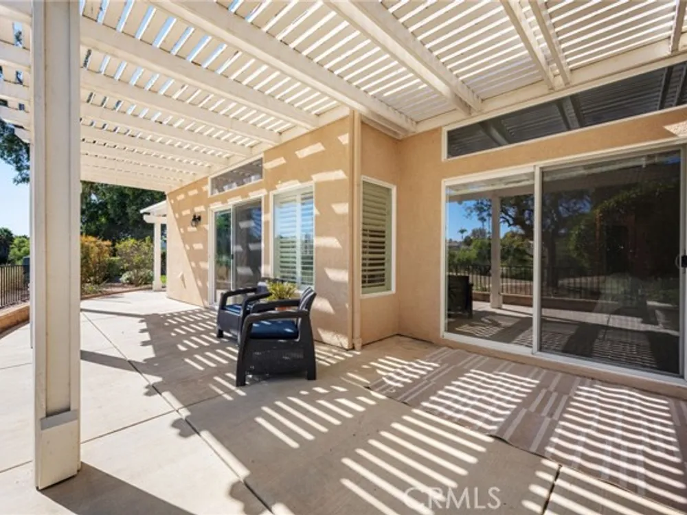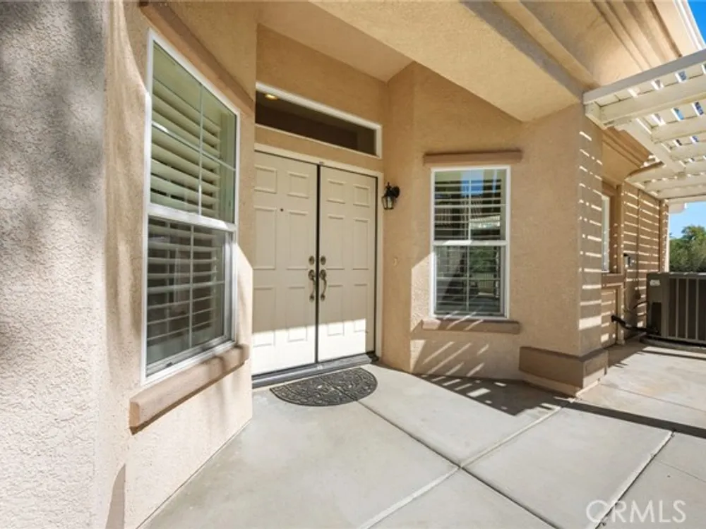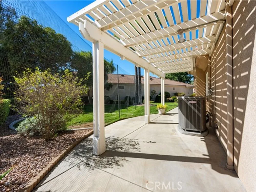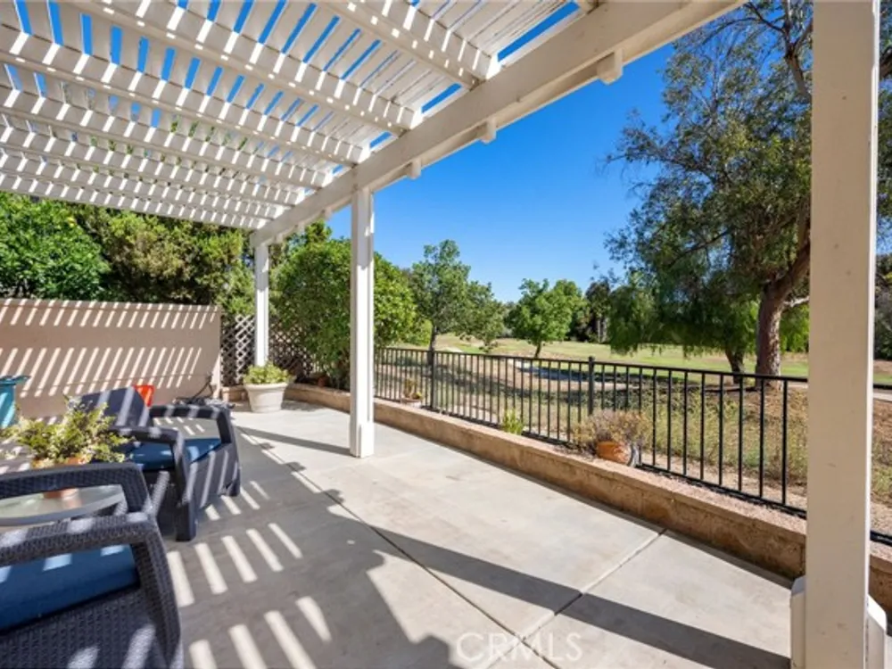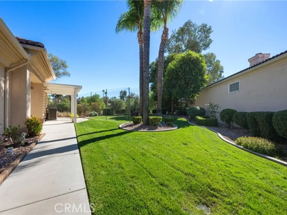 Welcome to the best location on the golf course at The Colony – Murrieta's premier 55+ gated community! Enter through your private gate into a charming yard-unique to this home's location-before stepping inside this beautifully maintained single-story residence. Offering the perfect blend active adult living, this home sits on a quiet cul-de-sac overlooking the 1st fairway. The spacious, light-filled floor plan features vaulted ceilings, custom tile flooring, plantation shutters, and a cozy fireplace. The well-appointed kitchen and dining area include rich wood cabinetry, Corian countertops, Bosch dishwasher, stainless steel LG oven and built-in microwave, a six-burner gas cooktop, large pantry, and the stainless steel refrigerator is included. The primary suite features vaulted ceilings and opens directly to the covered wrap-around patio with golf course views. The en-suite bathroom offers dual sinks, a soaking tub, walk-in shower, separate vanity, and a large walk-in closet. Two additional bedrooms are generously sized with wood floors, and the second bathroom also includes a walk-in shower. The large laundry room provides abundant cabinetry, a deep sink, and comes complete with washer and dryer. You'll also enjoy direct access to the two-car garage with built-in cabinets. Re