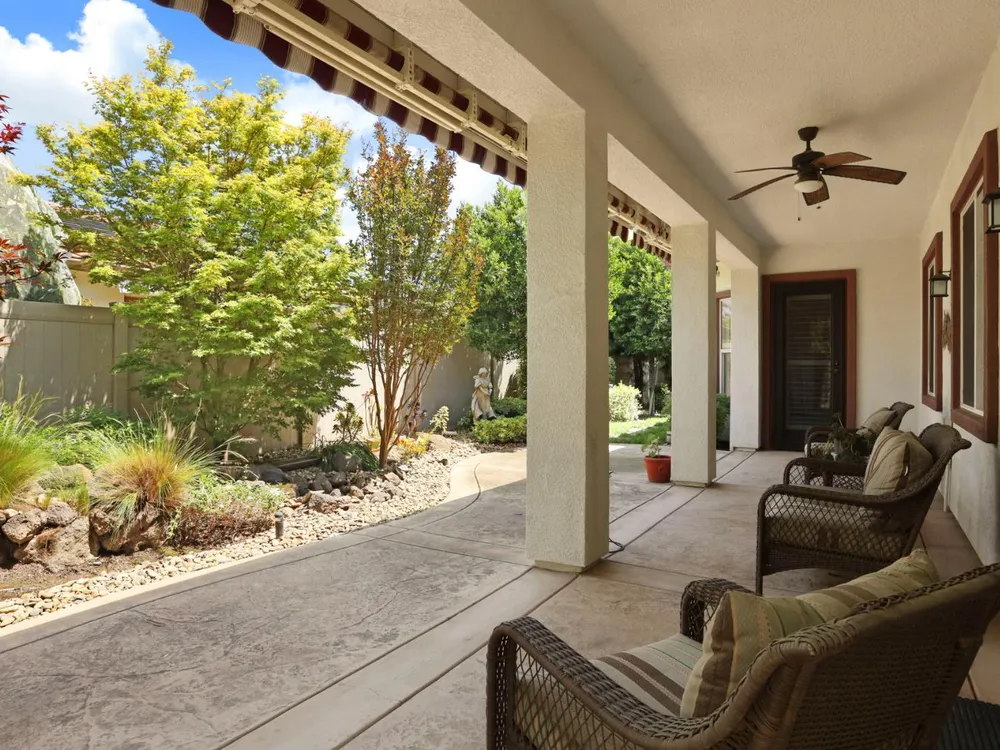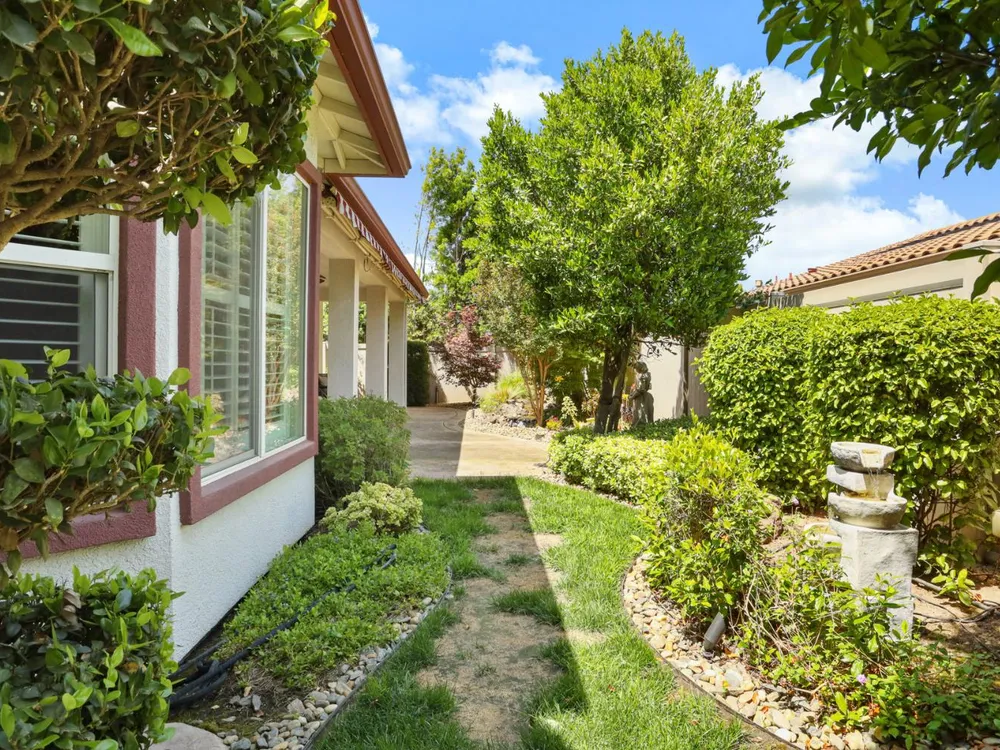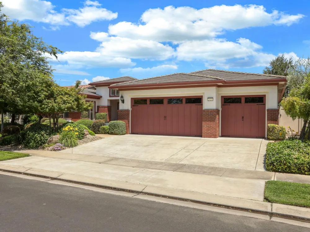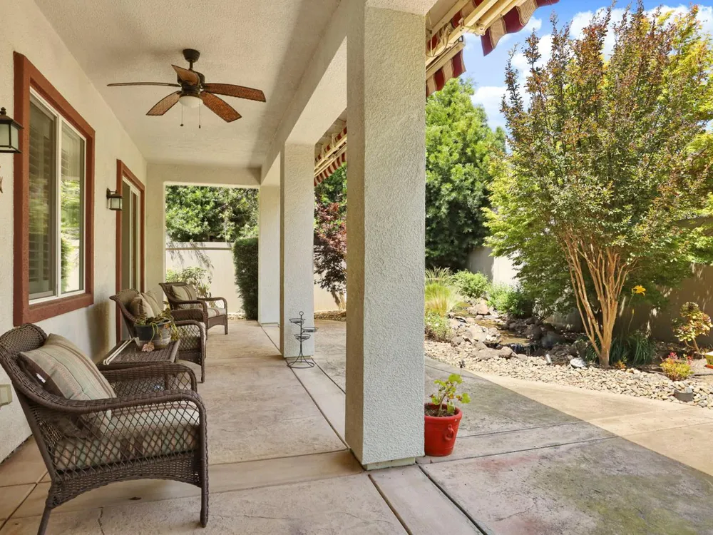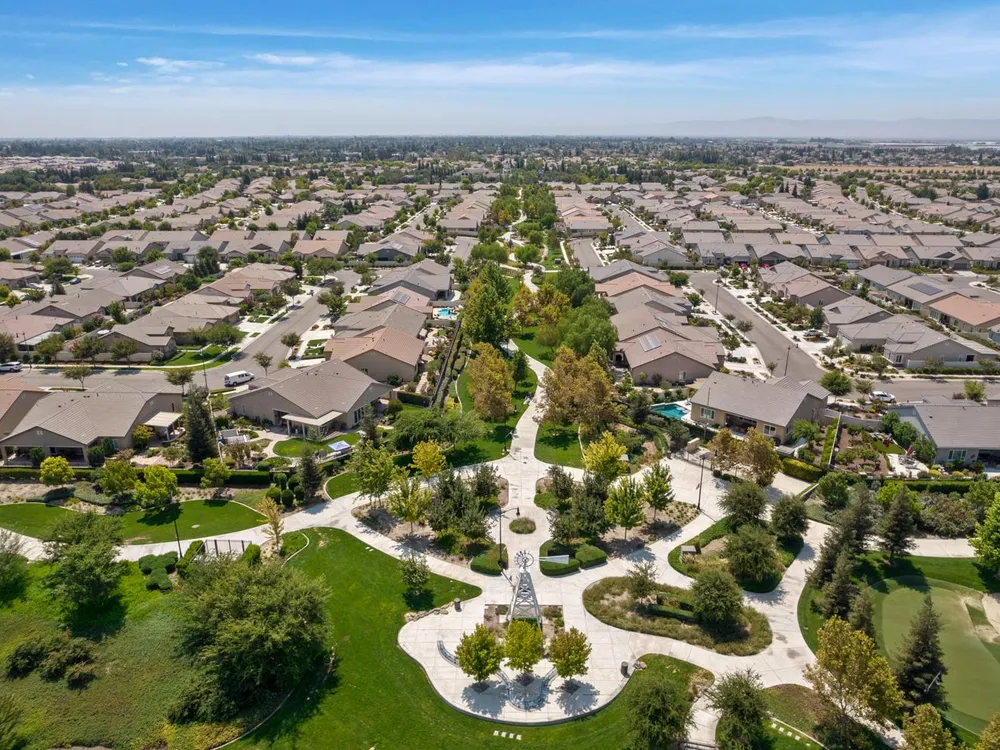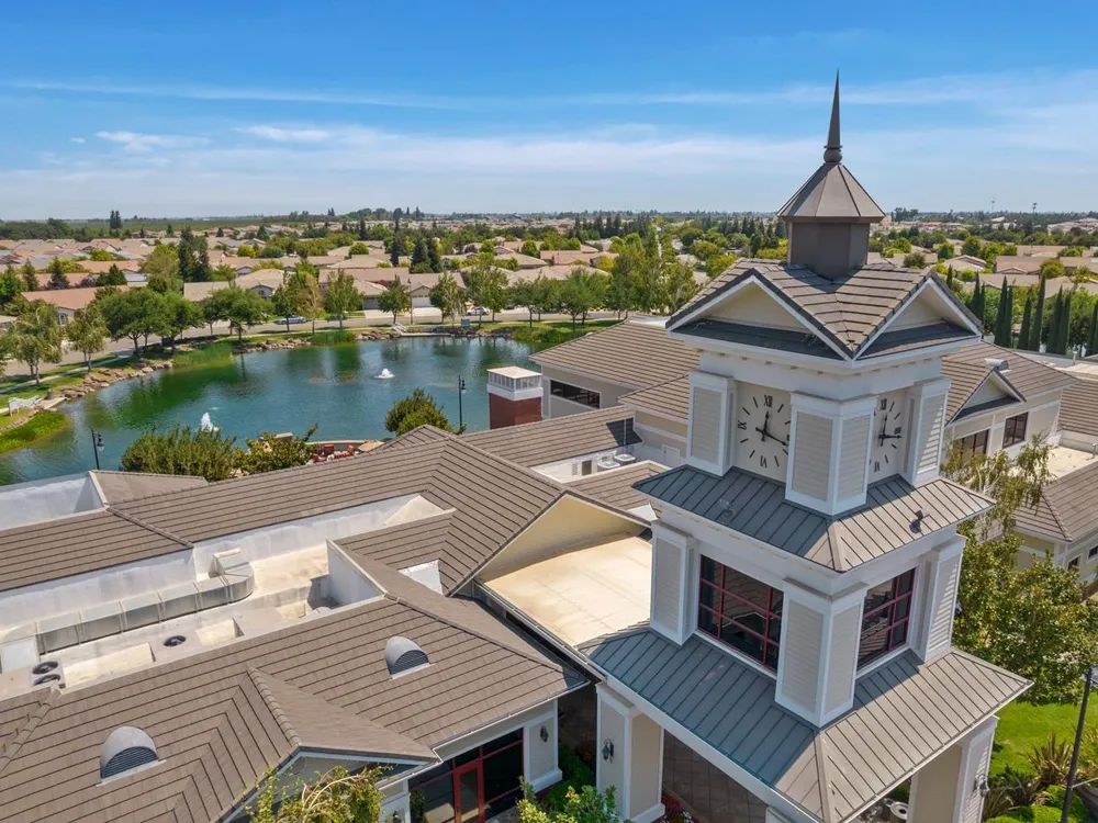 Welcome to this meticulously maintained 2,635 square feet, 3 bedroom, 2 1/2 bath Bedford floor plan located in the vibrant 55+ community of Del Webb Woodbridge in Manteca. This community is made for active seniors who want the social life and amenities of a gym, swimming pool, ballfield, line dancing classes and so many more activities! This home offers thoughtful design, quality upgrades, and an exceptional lifestyle. Curb appeal shines with brick veneer accents, a spacious 3-car garage, and a large front patio perfect for morning coffee or evening chats. Step inside to a bright and open layout featuring a den, plantation shutters, abundant natural light, and a cozy fireplace in the great room. The kitchen is a chef's dream with granite countertops, a large center island with bar seating, stainless steel appliances, and a dedicated dining area ideal for entertaining. The laundry room offers added convenience with upper/lower cabinets and a sink. Retreat to the spacious main bedroom with a charming bay window and ensuite featuring a luxurious roll-in shower, dual water closets, and generous storage. The backyard is great for relaxing underneath your covered patio with ceiling fan, surrounded by lush landscaping and the calming sound of a pond waterfall! This one has it all!