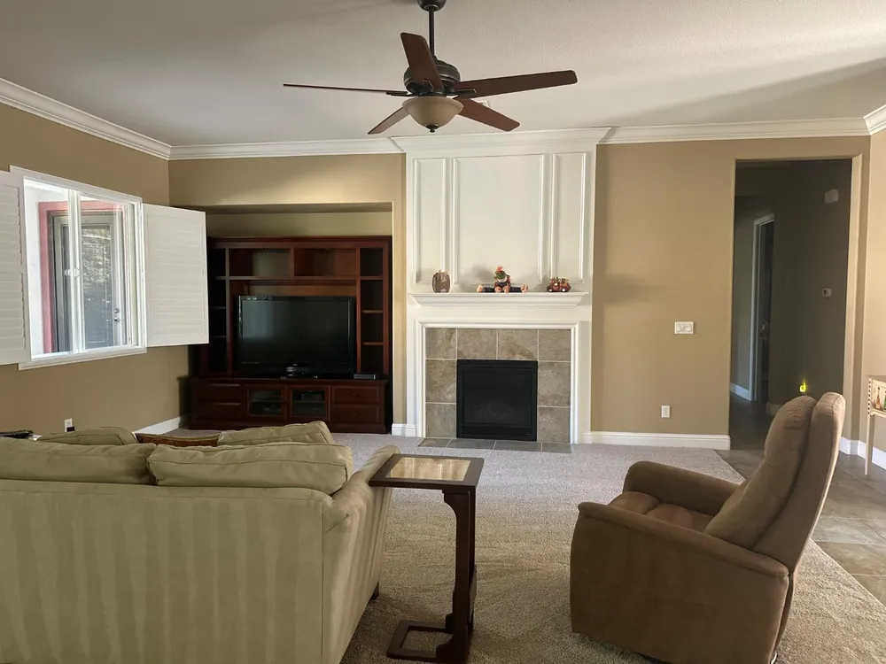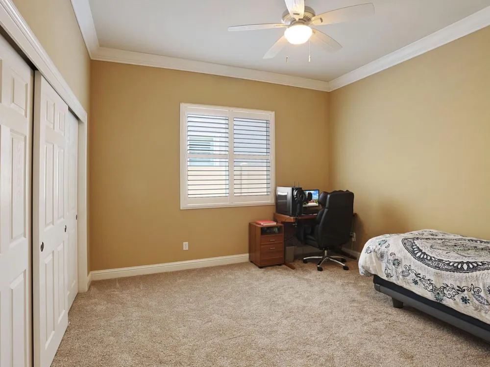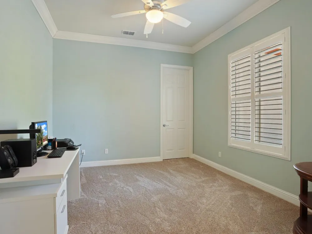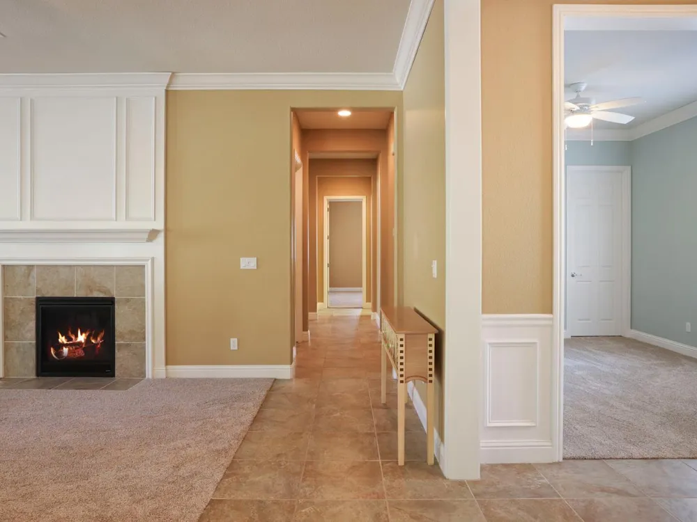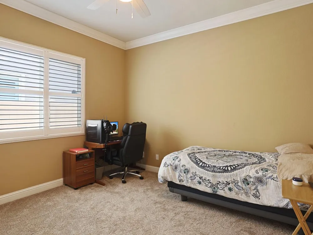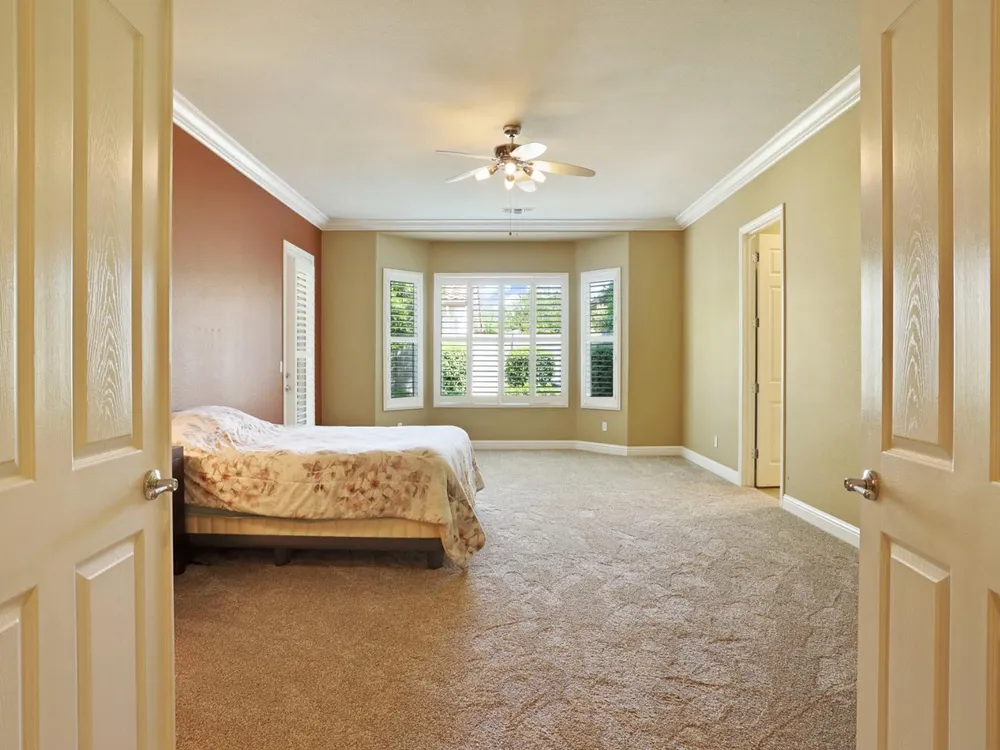 Welcome to this meticulously maintained 2,635 square feet, 3 bedroom, 2 1/2 bath Bedford floor plan located in the vibrant 55+ community of Del Webb Woodbridge in Manteca. This community is made for active seniors who want the social life and amenities of a gym, swimming pool, ballfield, line dancing classes and so many more activities! This home offers thoughtful design, quality upgrades, and an exceptional lifestyle. Curb appeal shines with brick veneer accents, a spacious 3-car garage, and a large front patio perfect for morning coffee or evening chats. Step inside to a bright and open layout featuring a den, plantation shutters, abundant natural light, and a cozy fireplace in the great room. The kitchen is a chef's dream with granite countertops, a large center island with bar seating, stainless steel appliances, and a dedicated dining area ideal for entertaining. The laundry room offers added convenience with upper/lower cabinets and a sink. Retreat to the spacious main bedroom with a charming bay window and ensuite featuring a luxurious roll-in shower, dual water closets, and generous storage. The backyard is great for relaxing underneath your covered patio with ceiling fan, surrounded by lush landscaping and the calming sound of a pond waterfall! This one has it all!