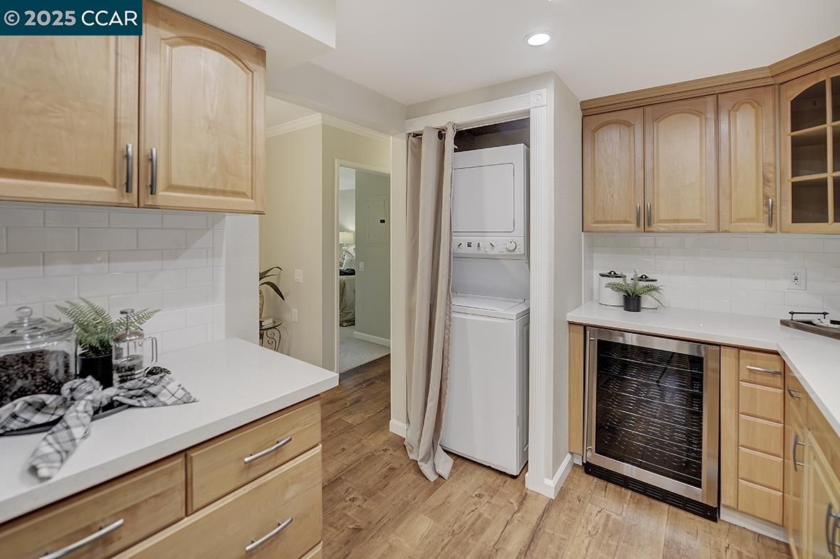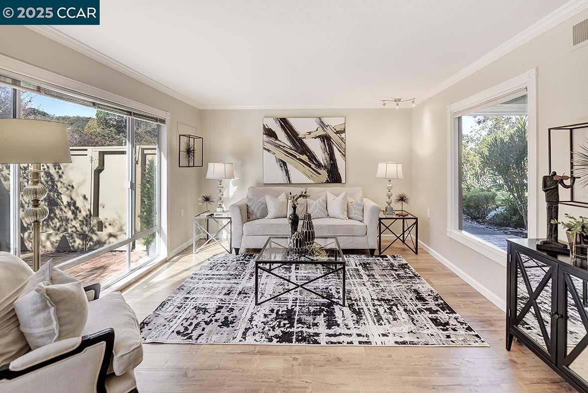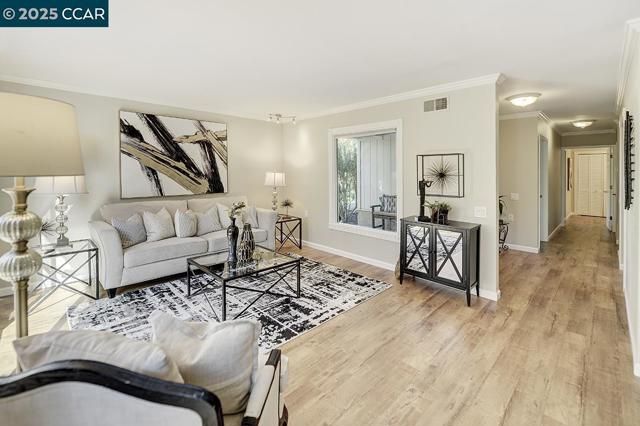 Lovely Updated Level-In Yosemite Model – Steps to the Golf Course! Discover effortless Rossmoor living in this beautifully updated level-in Yosemite model—no steps to entry and located in a desirable four-unit building near the golf course. The unit sits on a bluff, offering a peaceful garden view from the expansive brick-lined patio, perfect for relaxing or entertaining. Welcomed by gorgeous double front doors and a charming front sitting area, this inviting 2-bed, 2-bath home features smooth ceilings, crown molding, and laminate wood-style flooring in the main living areas, with brand-new carpet in both bedrooms. The updated kitchen includes a wine refrigerator, and the convenience of an in-unit washer/dryer enhances everyday ease. Parking Entry E Bldg 203 space 3. Move-in ready and designed for comfort, this home brings together beauty, convenience, and single-level living—your ideal Rossmoor retreat. Rossmoor offers a resort-like lifestyle with golf, swimming, bocce ball, pickleball, gaming rooms for games such as bridge and canasta, hiking, fitness center, dinners, dances, lectures and 200+ clubs and organizations. Now is the time for an exciting new future focusing on you and what you love to do!