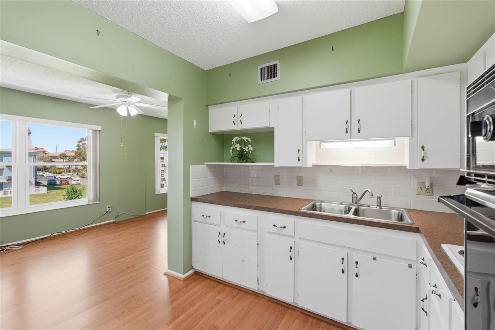 Welcome to this light and bright two-bedroom, two-bathroom condo located in the desirable 55+ community of On Top of the World in Clearwater. Perfectly situated on the third floor, this home offers beautiful views and is conveniently close to the clubhouse and community amenities. The spacious living area features a large front window that fills the space with natural light and connects seamlessly to the dining area. The kitchen and back room feature attractive wood-look laminate flooring, and the back room provides a relaxing space with a pleasant view, ideal for reading or enjoying your morning coffee. The primary bedroom includes a ceiling fan and a private ensuite bathroom, while the second bedroom also features a ceiling fan for added comfort. An assigned parking space adds to the convenience. Enjoy an active lifestyle in this vibrant community offering two pools, pickleball courts, two golf courses, a fitness center, library, clubhouse, 175 clubs, and a full calendar of social activities. Ideally located near shopping centers, banks, dining, and entertainment, this condo provides both comfort and convenience in one of Clearwater’s most popular 55+ neighborhoods. Schedule your showing today!
