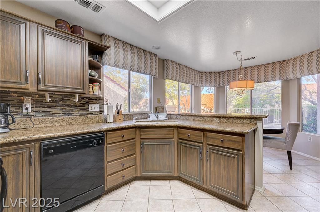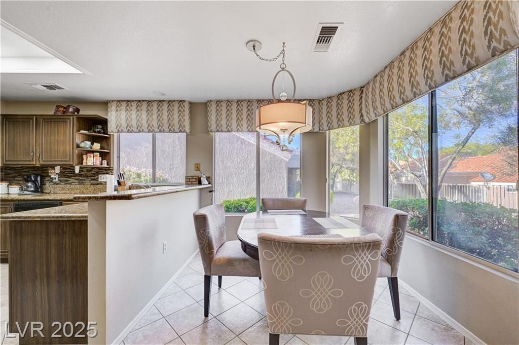 Sun City Summerlin Townhouse with Additional Permitted SqFt. Home Features: Open Living- and Dining Room with Vaulted Ceilings. Separate Family Room. Kitchen with Breakfast Bar and Breakfast Nook. 2nd Bedroom with Ceiling Fan and Light. Guest Full Bathroom. Den with Mini-Split and Access to Backyard. Primary Bedroom with En-Suite Shower Bathroom. Courtyard Entry. 2-Car Garage.