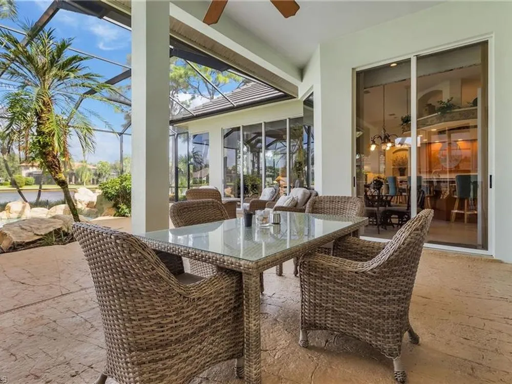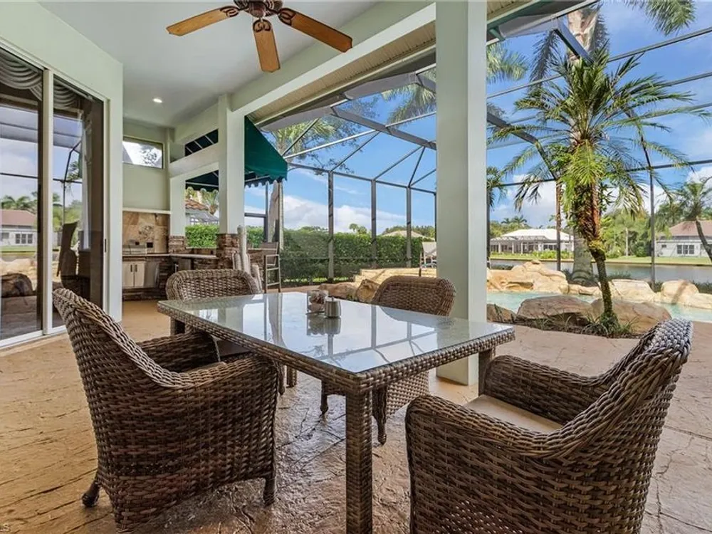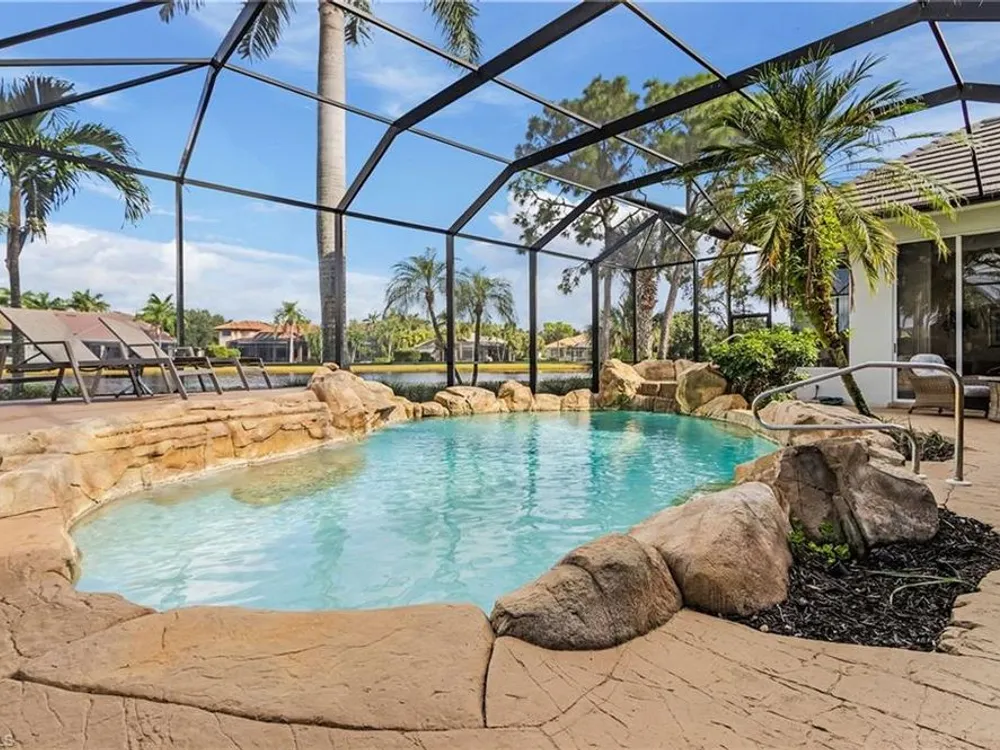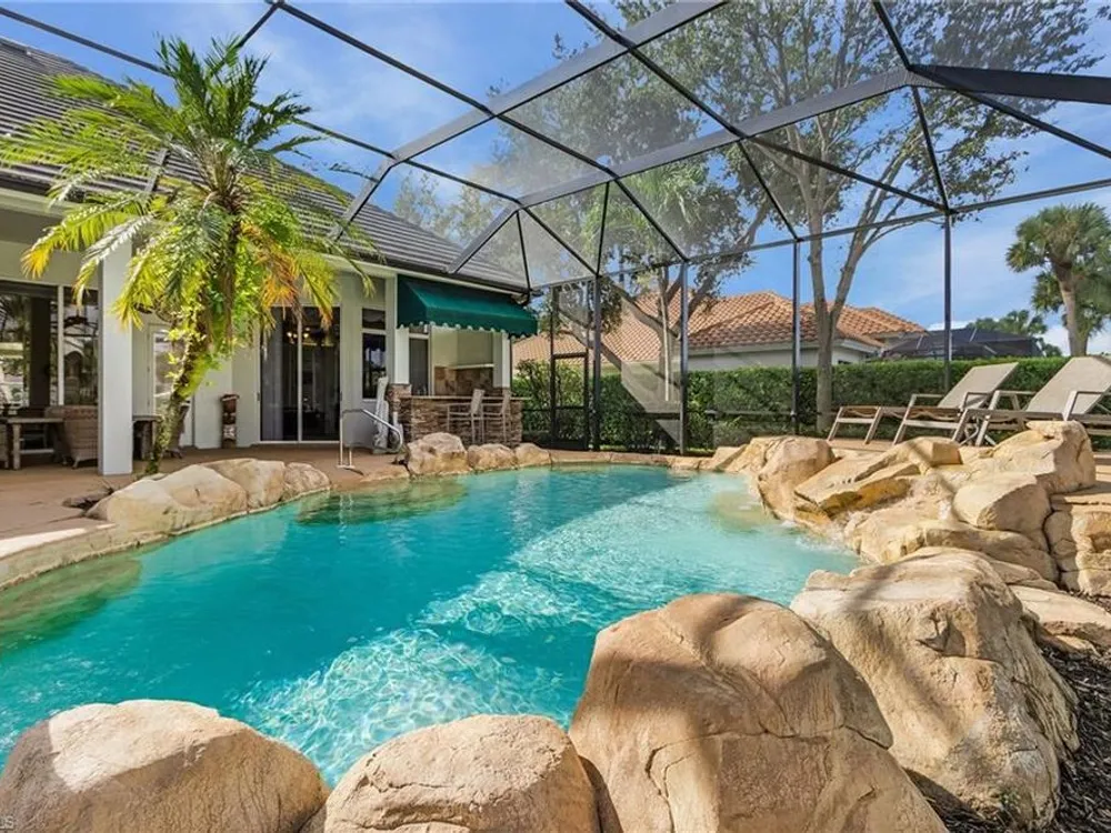 Welcome to this stunning estate home offering luxury, privacy, and breathtaking lake views. Situated on one of the community’s largest private lots, this executive home is one of the original model homes built by Arthur Rutenberg which showcases exceptional architectural details, numerous custom upgrades throughout and is less than a minute away from the North Gate. Step inside and feel the elegance of the open-concept design featuring an updated kitchen with a large island, breakfast bar, and new Cafe' refrigerator, all flowing seamlessly into the formal dining area—perfect for special occasions.The expansive primary suite offers a spa-like bathroom and serene views, while additional bedrooms provide comfort and flexibility for family and guests.Enjoy Florida living at its finest in the incredible outdoor space with a custom pool, water features, outdoor kitchen, bar, firepit, and multiple areas for entertaining and relaxation. Sliders open fully to create a true indoor-outdoor experience. With over 3,700 square feet, 4 bedrooms, and 4 baths, this home also includes a versatile mother-in-law suite that can easily be converted back to a 3-car garage or used as a private guest suite, office, or hobby retreat.Pelican Landing is the only development with a 34-acre private island beach club with white sand beaches, accessible via shuttle boat. Other amenities include fishing piers, a boat ramp with sailing & kayaking, a fitness center, 12 Har-Tru tennis courts, pickleball & bocce courts. With the exception of the country clubs and golf, access to all amenities is included with your annual assessment. Golf and social memberships are optional offering 36 holes of championship golf and a newly renovated clubhouse in 2020. Experience resort-style living in your own private paradise.