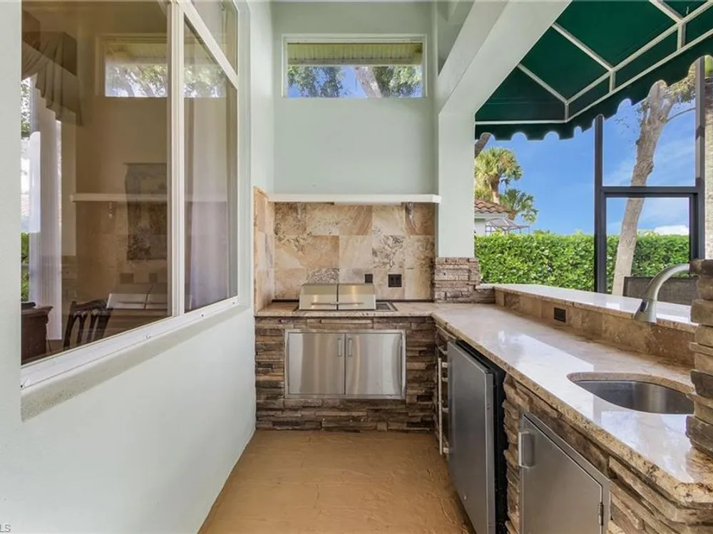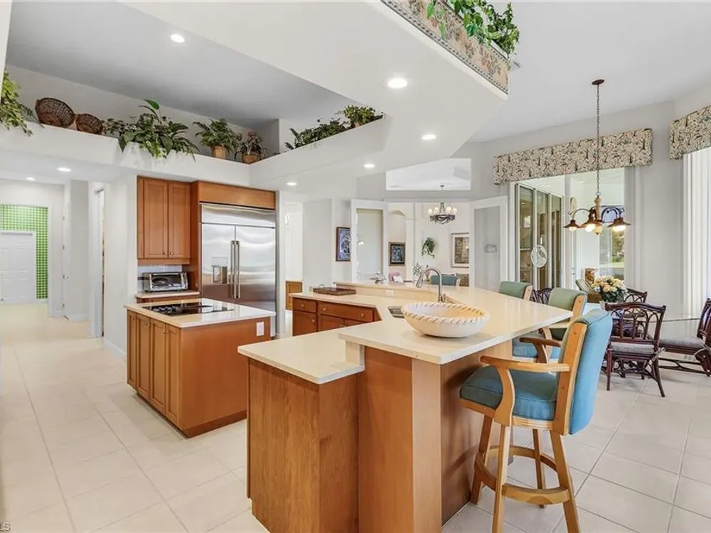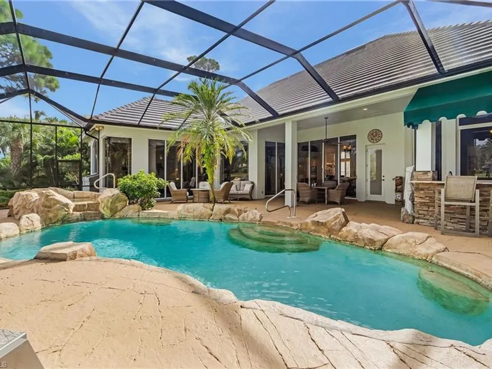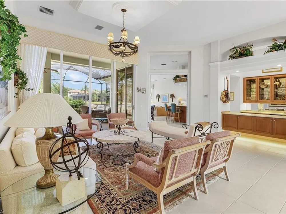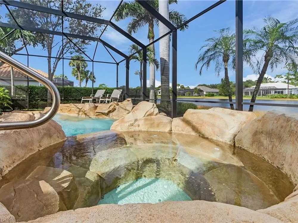 Welcome to this stunning estate home offering luxury, privacy, and breathtaking lake views. Situated on one of the community’s largest private lots, this executive home is one of the original model homes built by Arthur Rutenberg which showcases exceptional architectural details, numerous custom upgrades throughout and is less than a minute away from the North Gate. Step inside and feel the elegance of the open-concept design featuring an updated kitchen with a large island, breakfast bar, and new Cafe' refrigerator, all flowing seamlessly into the formal dining area—perfect for special occasions.The expansive primary suite offers a spa-like bathroom and serene views, while additional bedrooms provide comfort and flexibility for family and guests.Enjoy Florida living at its finest in the incredible outdoor space with a custom pool, water features, outdoor kitchen, bar, firepit, and multiple areas for entertaining and relaxation. Sliders open fully to create a true indoor-outdoor experience. With over 3,700 square feet, 4 bedrooms, and 4 baths, this home also includes a versatile mother-in-law suite that can easily be converted back to a 3-car garage or used as a private guest suite, office, or hobby retreat.Pelican Landing is the only development with a 34-acre private island beach club with white sand beaches, accessible via shuttle boat. Other amenities include fishing piers, a boat ramp with sailing & kayaking, a fitness center, 12 Har-Tru tennis courts, pickleball & bocce courts. With the exception of the country clubs and golf, access to all amenities is included with your annual assessment. Golf and social memberships are optional offering 36 holes of championship golf and a newly renovated clubhouse in 2020. Experience resort-style living in your own private paradise.