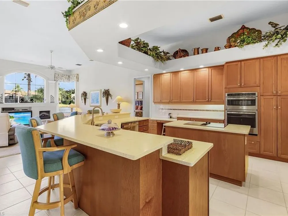- Bar, Built-In Cabinets, Cable TV Hookup, Closet Cabinetry, Coffered Ceiling(s), Fireplace, Entrance Foyer, French Door(s)/Atrium Door(s), Internet Available, Laundry Tub, Pantry, Pull Down Attic Stairs, Smoke Detector, High Ceilings, Walk-In Closet(s), Wet Bar, Window Coverings, Accessory Apartment, Den, Family Room, Great Room, Additional Bathroom, Guest Room, Home Office, Laundry Facility, Bedroom on Main Level, Main Level Primary, Split Bedrooms, Breakfast Bar, Eat-in Kitchen, Separate/Formal Dining Room, Kitchen Island, Dual Sinks, Bathtub, Separate Shower, Impact Glass, Picture Window(s), Single Hung Window(s), Sliding Window(s), Transom Window(s), Washer/Dryer Hookup