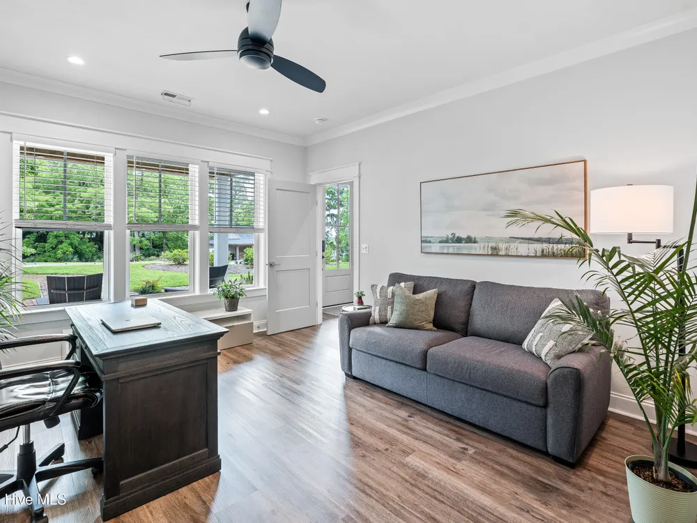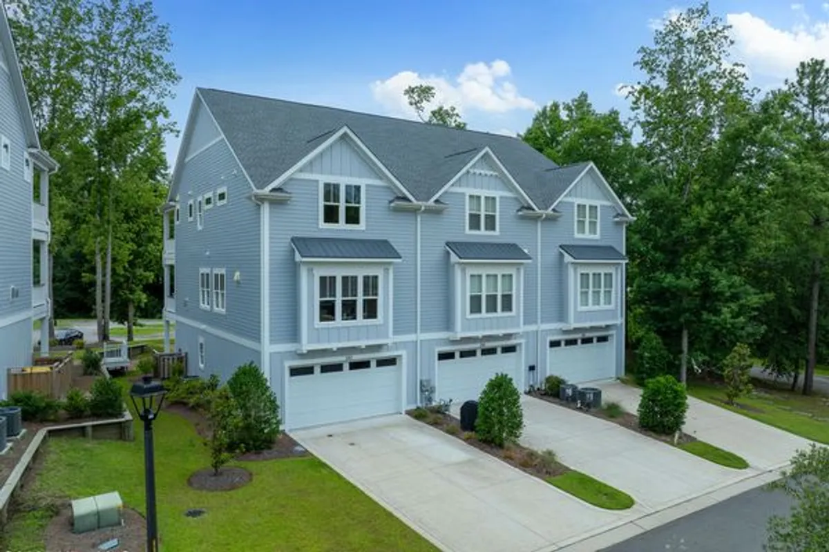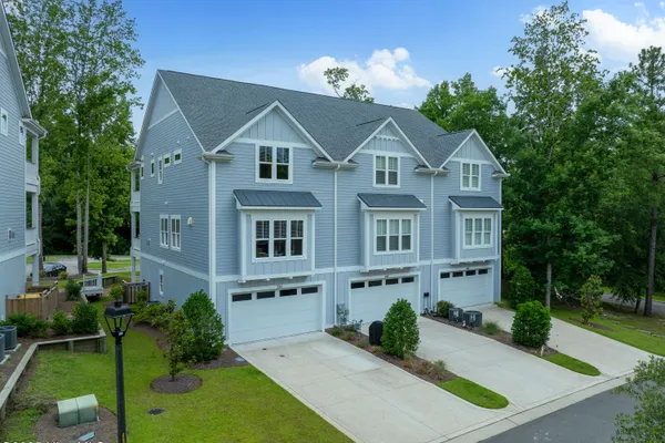 Serene river views await in this gorgeous end-unit maintenance-free townhome tucked away inside the gated community of River Bluffs. Steps away from the community marina and half-mile river walk, this beautifully designed home embodies coastal elegance. Bright and modern finishes adorn all three floors. The open, spacious layout has 3 beds, 3.5 baths and a finished two car garage. On the first floor, a home office or guest space offers privacy for guests or working from home. The second level main living floor is a bright, wide open space that sprawls across the entire level hosting a chef-inspired kitchen featuring a massive island, walk-in pantry and abundant storage. The top floor is a cozy retreat for the primary suite, laundry, and dedicated guest room with ensuite. Step outside to either of the two balconies or patio to enjoy the most beautiful scenes and sunsets over the river. From the front door, a walk (or golf cart ride) across a scenic bridged trail will take you to a multitude of wonderful River Bluffs amenities: pools, fitness centers, boat ramp, river walk, marina, restaurant, community farm, and much more.