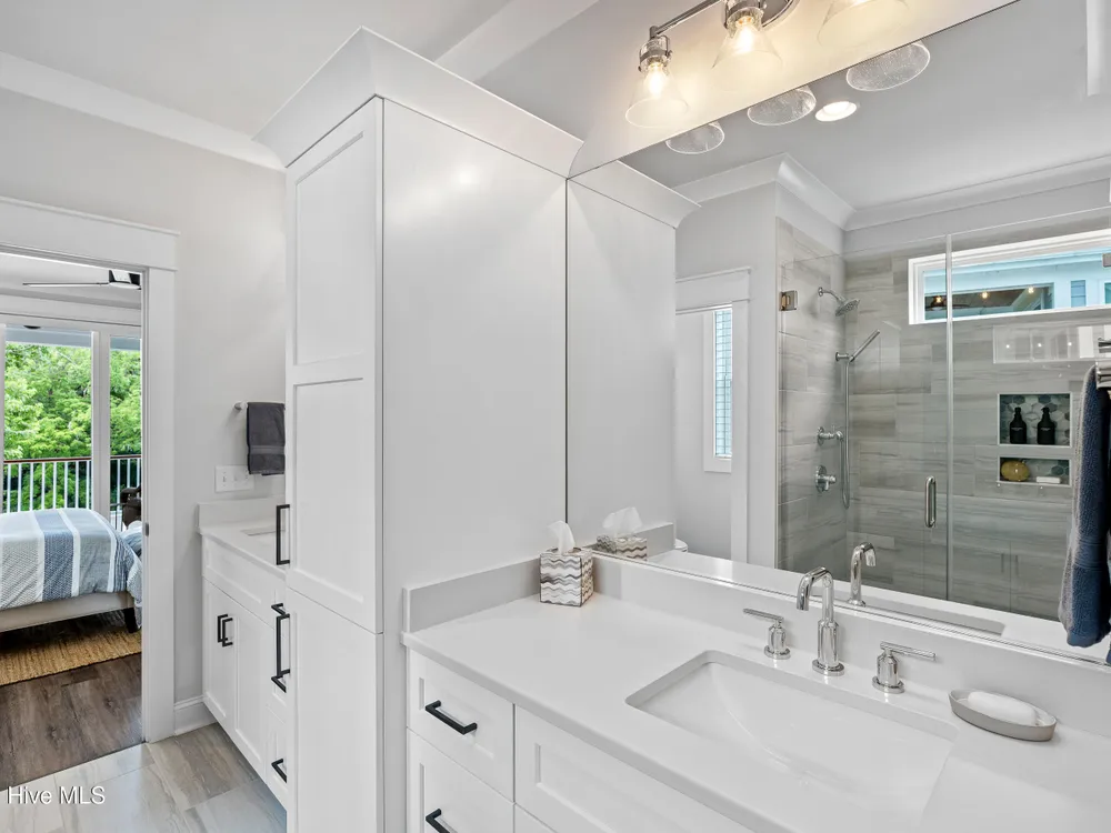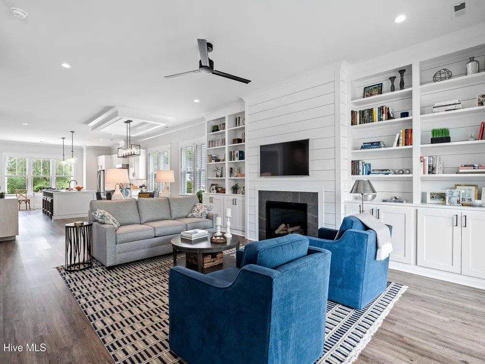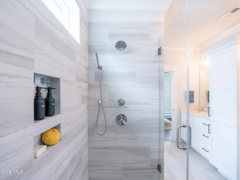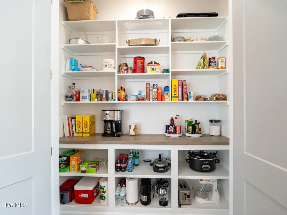 - Ceiling Fan(s), Solid Surface, Walk-In Closet(s), Walk-in Shower, Pantry, High Ceilings, Gas Log, Entrance Foyer