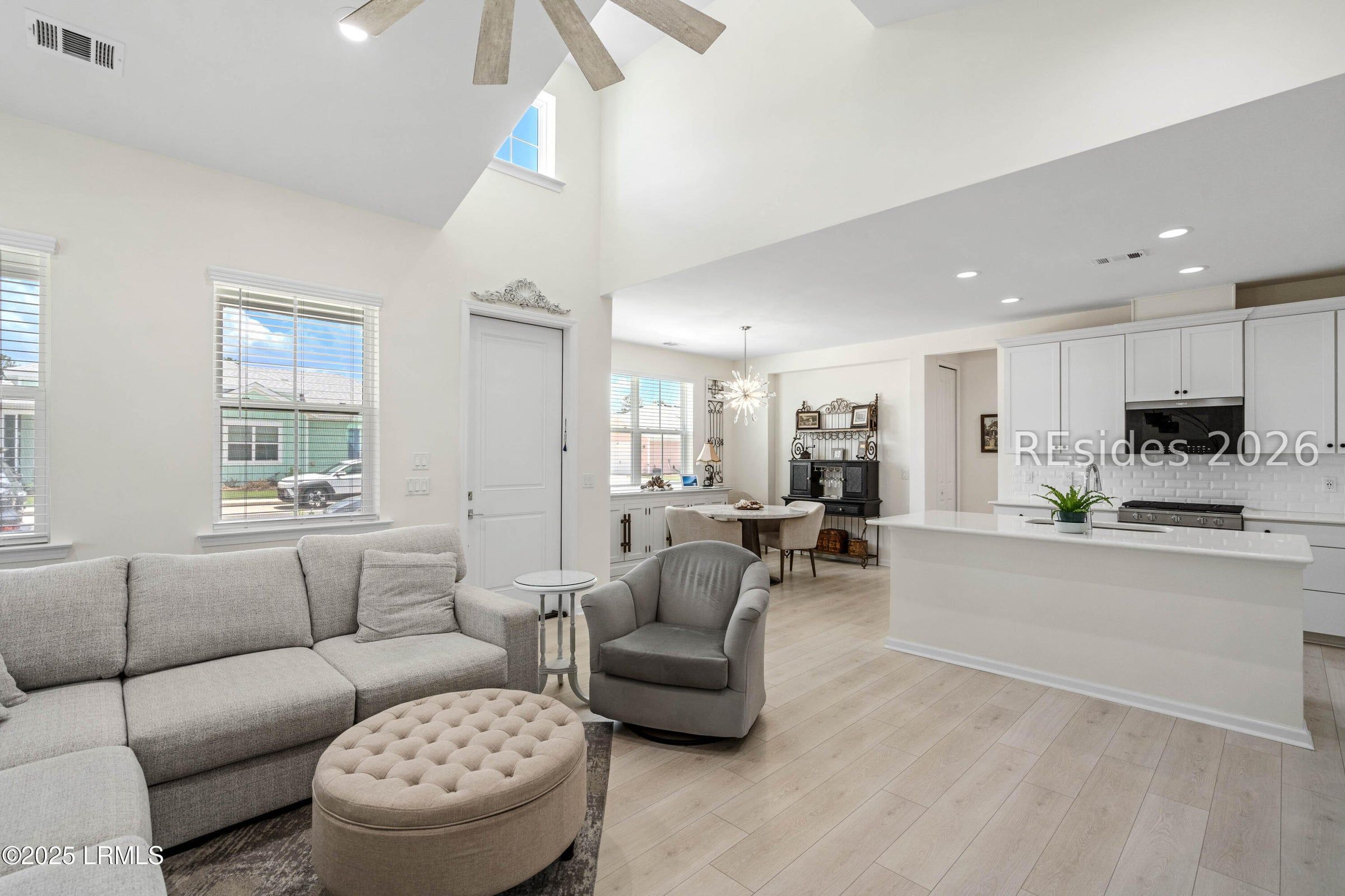 Welcome to Latitude Margaritaville! The Dreamsicle model features an extended L-shaped front porch with both front and side views-ideal for a corner lot. This 2-bedroom, 2-bath home includes a bonus office/flex room, screened lanai, and a spacious two-car garage. One of the largest cottage options available, the home is filled with stylish updates and enhanced with a whole-house water filtration system for added comfort and peace of mind. Pristine and truly move-in ready, it's perfect for relaxing, entertaining, and enjoying the island-inspired lifestyle. Furniture negotiable.