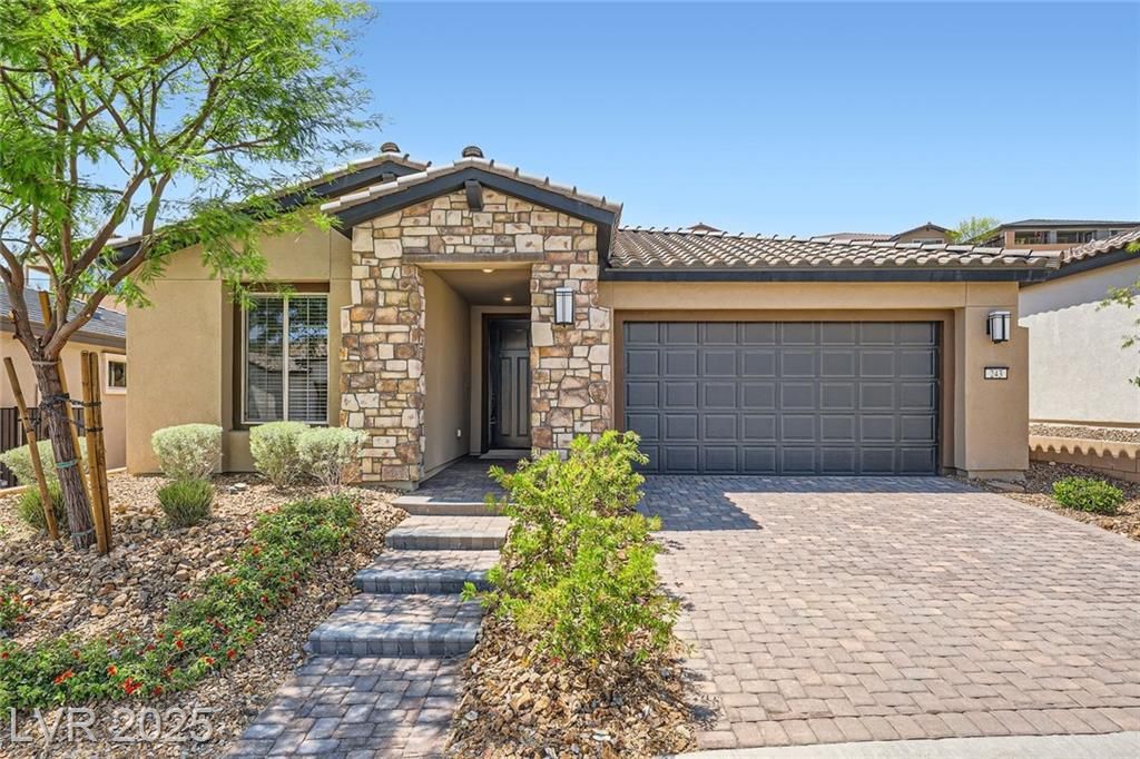 2023-BUILT HOME IN DEL WEBB LAKE LAS VEGAS AGE-QUALIFIED COMMUNITY • ~1 MI TO MONTELAGO VILLAGE DINING & MARKET • PRIVATE CLUBHOUSE WITH FITNESS CENTER AND POOLS INCLUDED. OPEN-CONCEPT LAYOUT FEATURES A LOFT FLEX SPACE IDEAL FOR OFFICE OR MEDIA USE. KITCHEN OFFERS MODERN CABINETRY, LARGE ISLAND, AND DIRECT SIGHTLINES TO THE LIVING AND DINING AREAS. PRIMARY SUITE LOCATED ON THE MAIN LEVEL WITH WALK-IN CLOSET AND ENSUITE BATH. BACKYARD INCLUDES A COVERED PAVER PATIO, TURF LAWN, AND FULLY FENCED BLOCK WALL ENCLOSURE. COMMUNITY OFFERS ACCESS TO LAKE RECREATION ~1.1 MI AWAY, GOLF AT REFLECTION BAY ~1.3 MI, AND TRAILS DIRECTLY FROM THE SUBDIVISION. RESIDENTS ENJOY ON-SITE RESTAURANT OPTIONS, SOCIAL SPACES, FITNESS FACILITIES, AND RESORT-STYLE AMENITIES. RETAIL CORRIDOR AND GROCERY OPTIONS LOCATED ~4 MI ALONG LAKE MEAD PKWY.