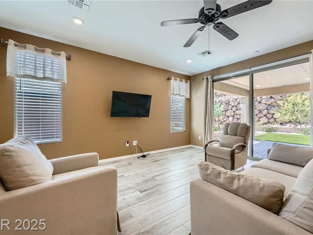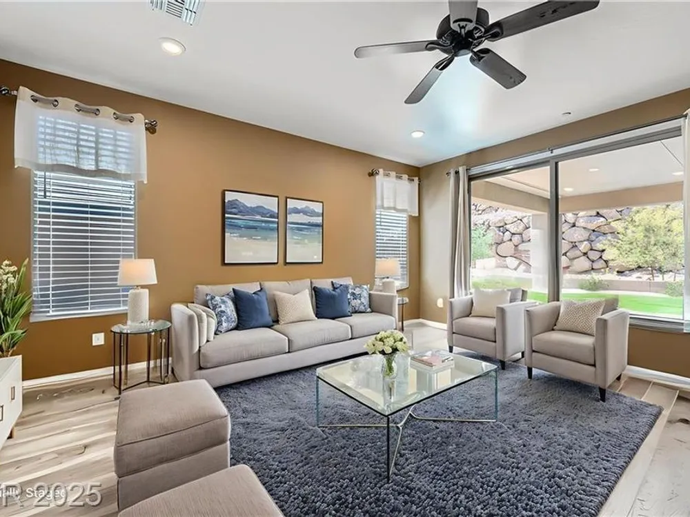 EXPERIENCE UNPARALLELED LUXURY AND LEISURE IN THIS EXQUISITE SINGLE-STORY DEL WEBB LAKE LAS VEGAS HOME, WHERE FABULOUS STYLE MEETS TREMENDOUS DESIGN IN AN OPEN, LIGHT-FILLED LAYOUT; FEATURING A BEAUTIFUL KITCHEN WITH A LARGE ISLAND, TILE FLOORING THROUGHOUT THE MAIN AREAS, AND A MASSIVE OPEN-CONCEPT LIVING SPACE PERFECT FOR ENTERTAINING. TWO PRIMARY BEDROOM SUITES, A VERSATILE DEN/OFFICE (OR THIRD BEDROOM), UPGRADED BACKYARD ACCESS FROM THE MASTER, AND UPGRADED LIVING AREA SLIDERS ENHANCE THE HOME'S APPEAL. STEP OUTSIDE TO A TRUE BACKYARD OASIS WITH AN EXTENDED COVERED PATIO, LOW-MAINTENANCE TURF, AND NATURAL ROCK BOULDER VIEWS. ENJOY LAKE LAS VEGAS'S VIBRANT LIFESTYLE, COMPLETE WITH ONSITE RESTAURANTS, SHOPS, GOLF COURSES, TRAILS, WATER SPORTS, AND DEL WEBB'S PRIVATE CLUBHOUSE WITH FITNESS FACILITIES, OFFERING THE PERFECT BLEND OF LUXURY AND LEISURE.