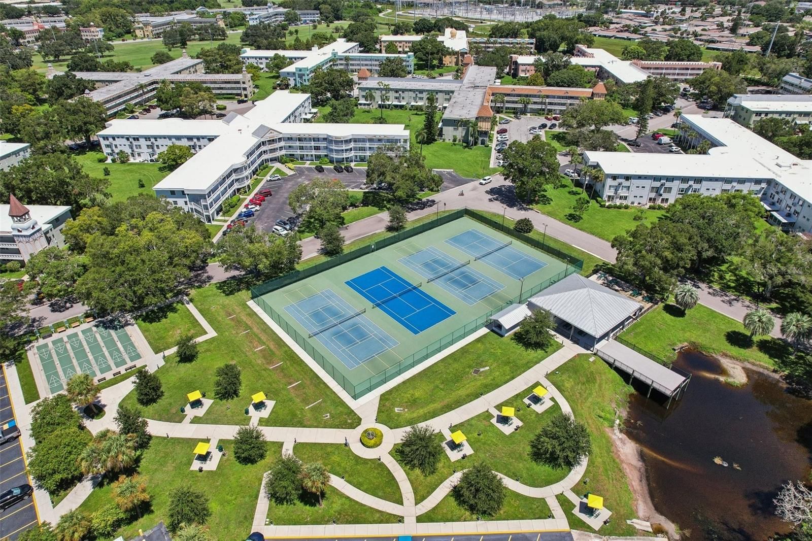 - Includes: Clubhouse, Elevator(s), Fitness Center, Golf Course, Pickleball, Pool, Recreation Facilities, Shuffleboard Court, Storage, Tennis Court(s)