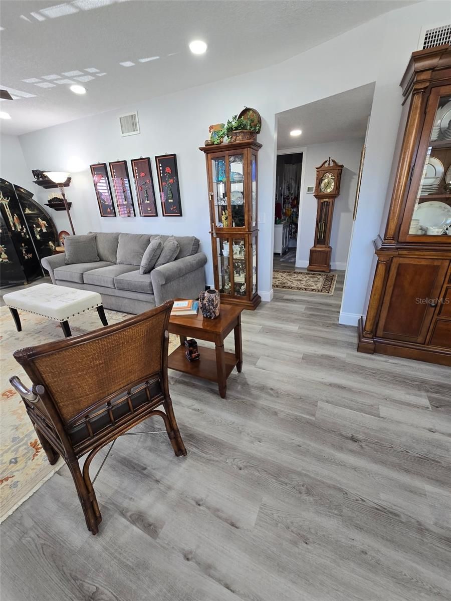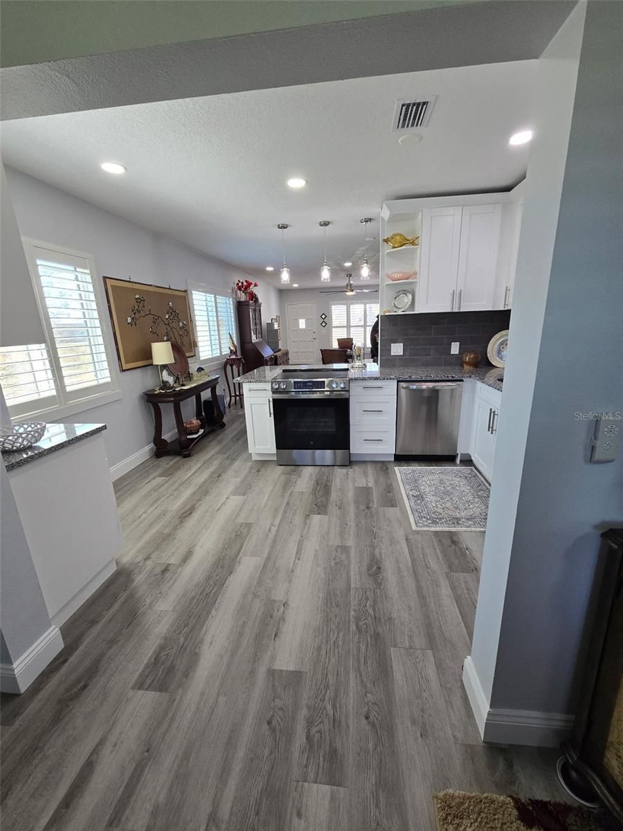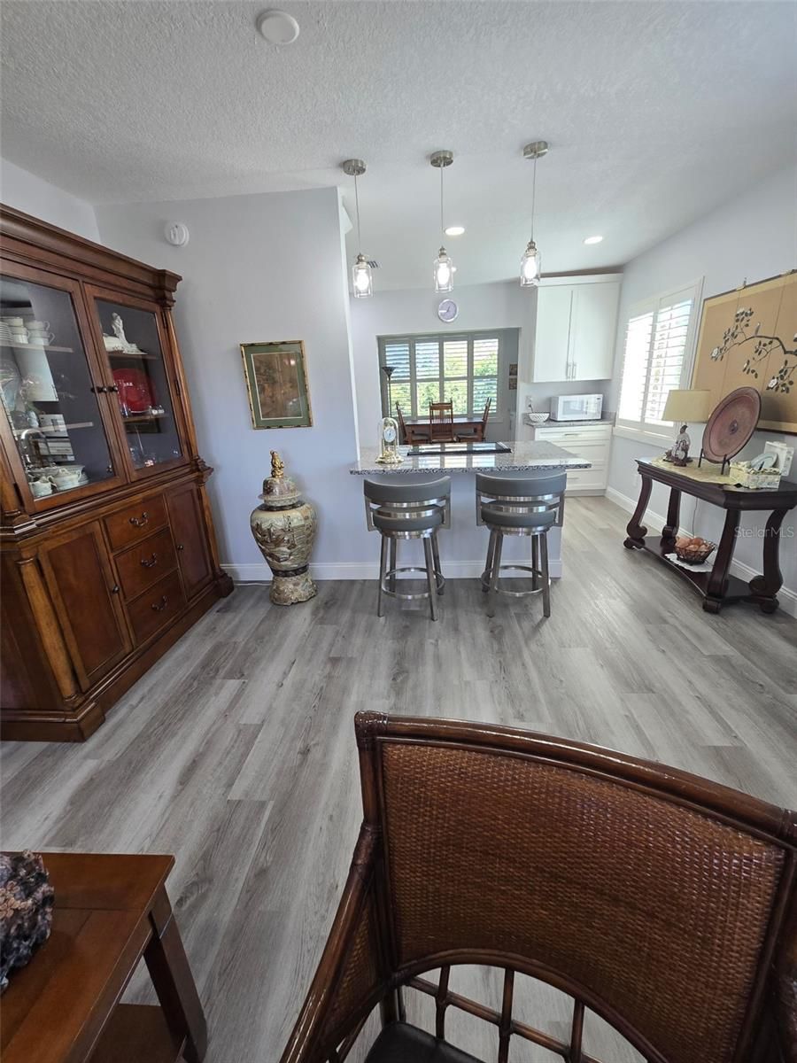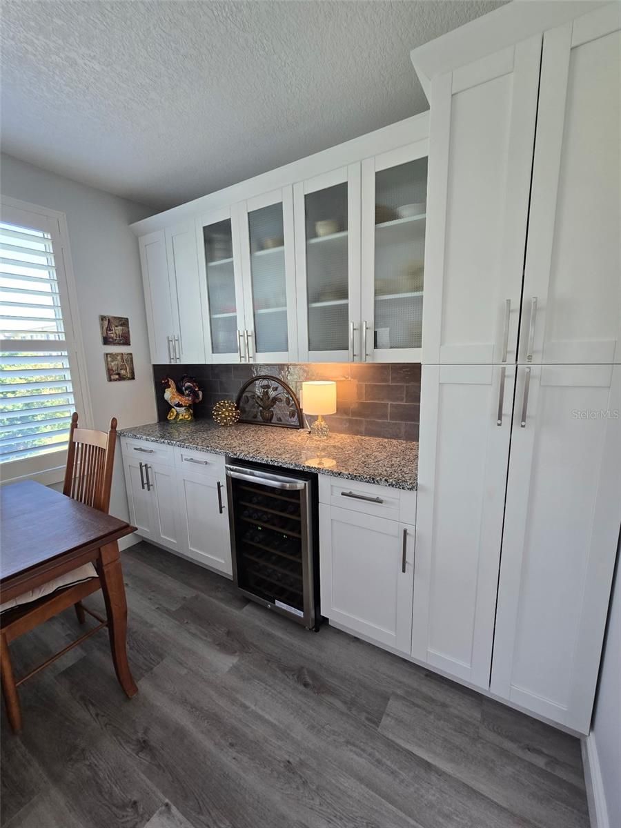 This beautiful remodeled 2-bedroom, 2-bath condo in Clearwater’s premier 55+ community, On Top of the World, offers the perfect balance of modern upgrades and resort-style living. Step inside to an open-concept design with waterproof luxury vinyl flooring, fresh paint, recessed lighting, and stylish ceiling fans. A brand-new Trane HVAC system (installed August 2025) ensures comfort year-round. The updated kitchen is both functional and elegant, featuring shaker-style cabinetry, granite countertops, subway tile backsplash, stainless steel appliances, soft-close drawers, under-cabinet lighting, and a breakfast bar. The spacious living area flows into a bright Florida room with custom built-ins and a wine bar, ideal for relaxing or entertaining. As an end-unit, this home is filled with natural light and offers sweeping golf course views through newer hurricane-rated windows with plantation shutters. Both bathrooms have been tastefully renovated with marble countertops, updated vanities, porcelain tile, and upgraded fixtures. Added conveniences include ample closet space, an in-unit washer and dryer. Living at On Top of the World means access to unmatched amenities: two private golf courses (free for owners), two heated pools, a fitness center, tennis and pickleball courts, hot tub, sauna, dog park, hobby studios, billiards, lawn bowling, library, café, and an active calendar of clubs and events. Cable and internet included in the low monthly fees. Just minutes from Clearwater's world-famous beaches, dining, shopping, and entertainment, this move-in-ready condo offers low-maintenance living in one of Florida’s most sought-after 55+ communities.
