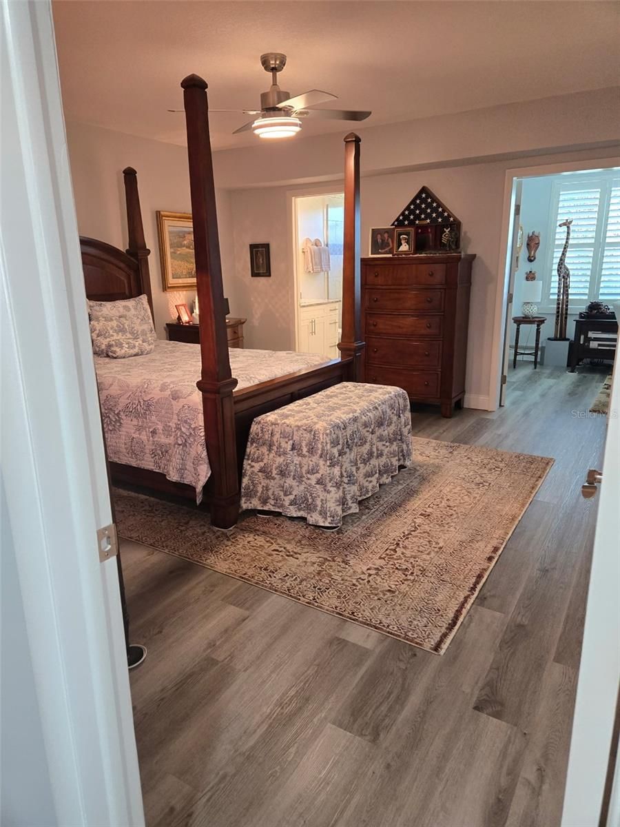 - Ceiling Fan(s), Open Floorplan, Main Level Primary, Solid Surface Counters, Solid-Wood Cabinets, Thermostat, Window Treatments