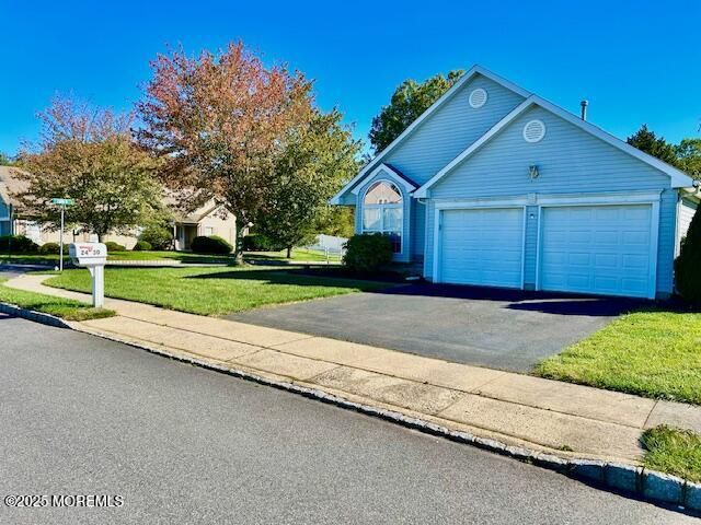 Situated on a CORNER LOT. This lake ridge model has a well-designed floor plan with spacious rooms and a 2-car garage. As you enter the foyer, you are greeted by a formal living room and dining room, perfect for entertaining. The eat-in kitchen, in the heart of the home, offers lots of cabinets and counter space. From the kitchen, relax in the family room with sliding doors that lead to the private yard and patio. The primary bedroom suite offers a vaulted ceiling, walk-in closet and private bath with double sinks, soaking tub and shower. Down the hall is a second bedroom, bathroom and laundry room. Priced to sell! Don't miss this opportunity to enjoy the amenities of this active 55+ community close to the Jersey Shore Beaches.