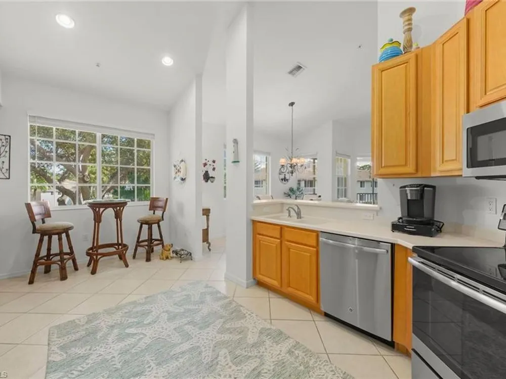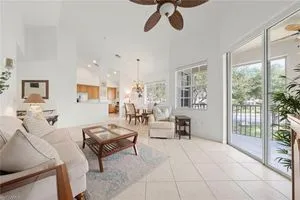 Private elevator. Two-car garage. Enjoy stunning long lake and preserve views from this fabulous second-floor residence in Pelican Landing’s desirable Sandpiper Isle neighborhood. High vaulted ceilings and 16-inch tile flooring enhance the spacious main living areas, while an abundance of windows fills the home with natural light. The expansive primary suite offers a cozy sitting area with large windows that showcase the lake views. The open kitchen features beautiful cabinets, ample counter space, and an inviting layout for entertaining. Split bedrooms ensure privacy for guests, and a private elevator provides convenient access. Offered turnkey furnished, this home also includes a two-car garage. The cozy lanai provides a peaceful setting to enjoy your morning coffee or evening cocktail while taking in the tranquil surroundings. Pelican Landing amenities include a community center with planned social activities, a fitness center, 12 Har-Tru tennis courts, six pickleball courts, a canoe and kayak park, a sailing center with boats, a marina with boat slips, a butterfly garden and a private 34-acre Gulf beach park. Optional golf memberships are available (subject to waitlist). Conveniently near Coconut Point Mall with dining, shopping and entertainment, and just a 20-minute drive to the airport. Enjoy your luxury lifestyle today!