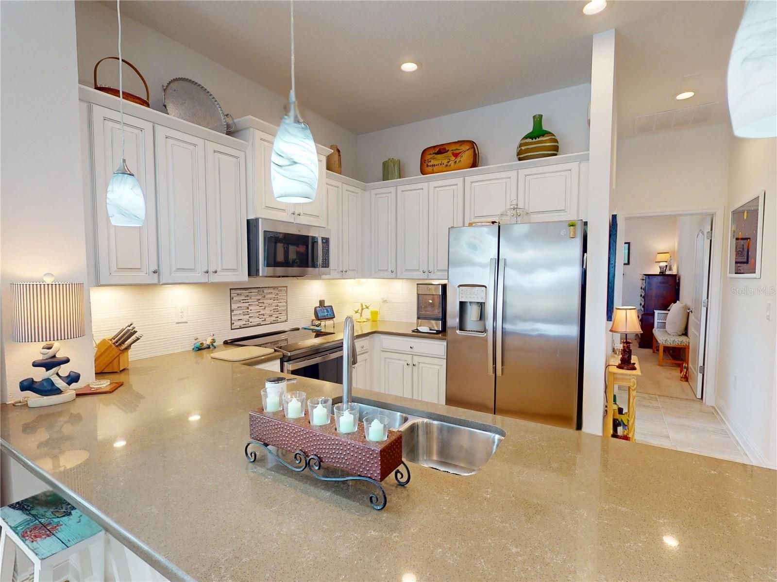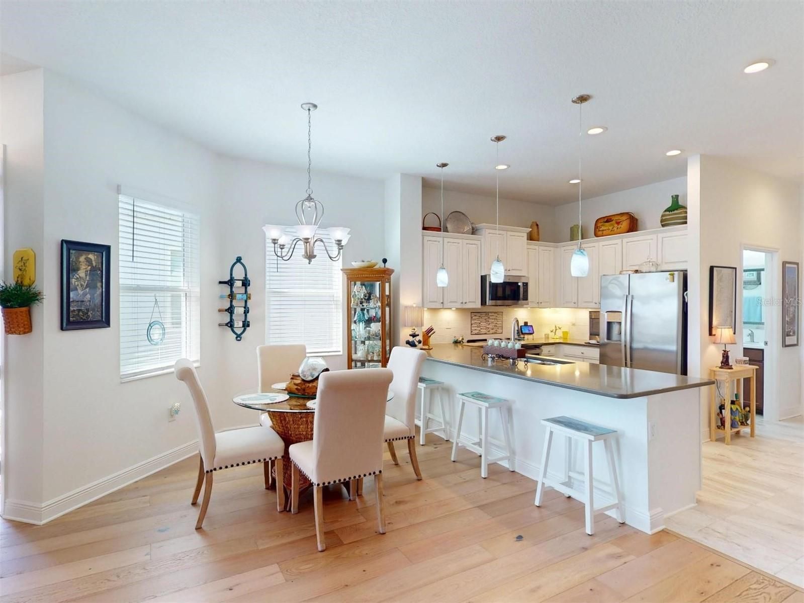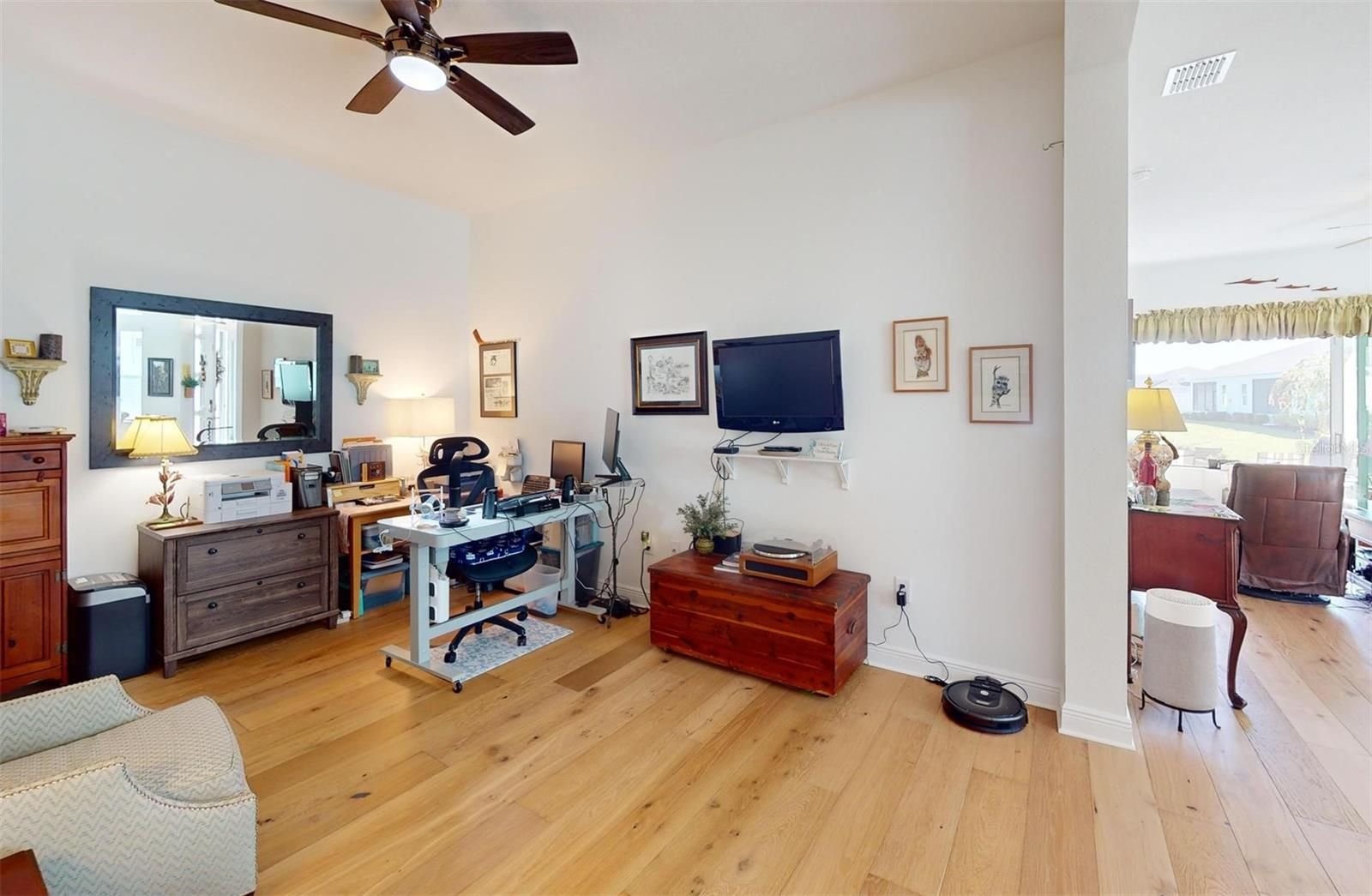 Exceptional upgrades on a premium lot, one of the nicest in Kings Gate. The sq. ft. priced right with all the amenities, plus ready to move in and much better than a new build. FLOOD ZONE X. 2 /3 bedrooms possible 2 Baths. Come see this beautiful home in Kings Gate which is a 55 + community. It is so spacious, and the backyard is on a very large pond with a fountain - the view is breathtaking! This home is two years new; it meets the latest hurricane building code requirements. Hurricane impact windows, and hurricane shutters for the lanai and front door. As you enter this home, you walk into a very open Great Room with 10-foot-tall ceilings and beautiful hardwood floors. The expansive sliding glass door opens up into a tiled lanai with gorgeous views of the pond. This is great when entertaining your family and friends that will come to visit you. Both, the lanai and patio are so peaceful with that million-dollar view whether during the day or at night is simply breathtaking. You can easily get used to enjoying your favorite beverage while relaxing on a chaise lounge on the patio. You could be watching the Pelicans dive into the pond for fish, watching the helmet turtles popping their heads up out of the water or sunbathing along the shoreline, or you could watch the golfers on the green, hoping for a hole in one. There is always something to see while gazing at the pond area. When you enter into the kitchen you will notice the beautiful quartz countertop and the walk-in pantry with plenty of shelving space to meet your needs. All the tile flooring throughout this home, the quartz countertop and kitchen cabinets were all upgrades at the time of build. The microwave is vented to the outdoors, and the kitchen appliances were upgraded as well. The range/oven is an induction with convection and air fry capabilities. If you are a person on the go or busy with all the activities going on in The Kingdom, you can start and stop your oven via Wi-Fi connection. All the rooms in this home are large and in the master bedroom it has a custom barn door that separates the bedroom from the master bath and closets area, Super Cool! Also, the view of the pond from the master bedroom windows is simply awesome to wake up to in the mornings and to gaze at when the full moon crosses over the pond at night. The light reflecting off pond is another reason to enjoy this great view. There are lots of nice upgrades done to this home, too many to mention here. There are many amenities that come with living in Kings Gate (better known as The Kingdom) - a large pool, large ball room, the Lion’s Den Restaurant and Bar is right inside this community. There is pickle ball, social events, like Bingo, Nine and Dines, Trivia night, Yoga and Monday, Wednesday, and Friday work out classes for anyone who wants to join. No charge. There is water aerobics too!! The list goes on and on. We are a golf cart community, so it is only natural to have golf cart decorating festivities, and those evening golf cart rides around the neighborhood is a great way to see your neighbors. If you love golf, this is the place to be living in, in Port Charlotte. Kings Gate Golf course - play 9 or 18 holes of golf on a beautiful golf course, plus enjoy all the nature. Kings Gate is amazing - you can drive your golf cart to Plaza, just right outside of gated area and select dining and or shopping located in the plaza. Please schedule to see this extraordinary home!