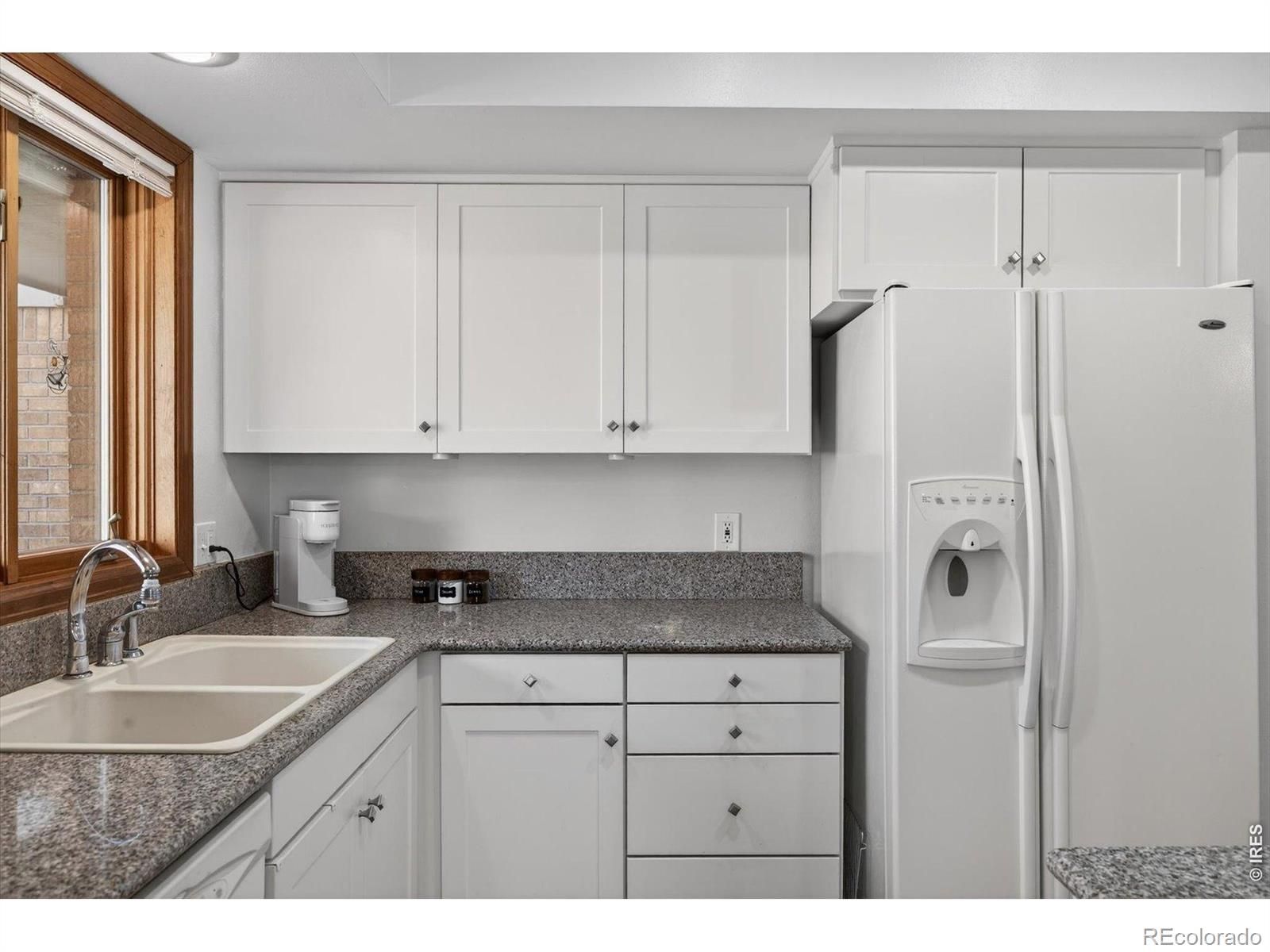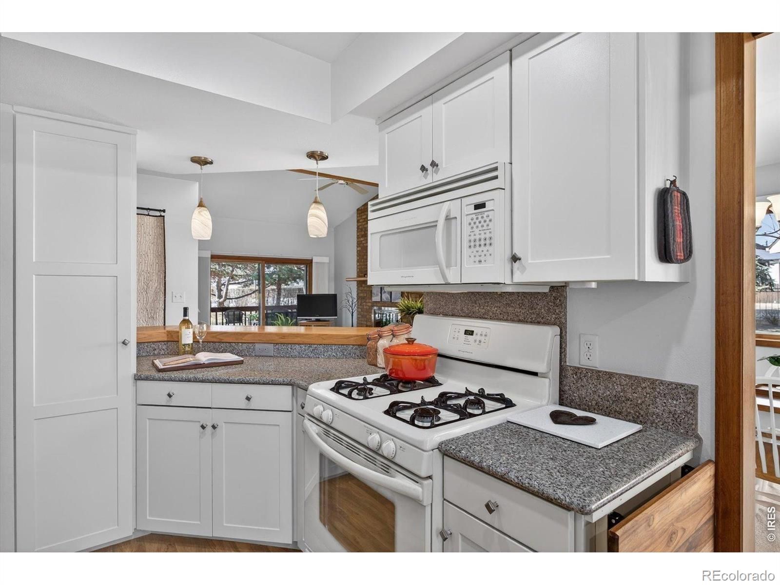 Prepare to be impressed with this beautiful, move in ready home in a small intimate 55 + community . With green space and mature landscaping all around, one can appreciate the quiet neighborhood and the low maintenance living which allows one to concentrate on the important things! The living space features a gorgeous gas brick fireplace to enjoy those cool Colorado evenings, which opens to a generously sized dining room with plenty of light! This property also features an updated kitchen with newer cabinets and quartz countertops. The primary suite provides a serene oasis with nice open space views of the landscaping and trees outside and includes adjoining bath and double closets.The second bedroom is currently being used as a quilting room and has plenty of space for guests, projects, office, crafts, and additional bedroom opportunities. There are a few storage options in the home: a walk in storage closet in the garage, crawl space below the home, and attic access in the garage with a built in drop-down ladder. Don't miss this opportunity to live in a sweet, quiet spot made just for you. Be prepared to see some stunningly colorful sunsets throughout the year. In addition, there is resident access to a bench on the lake to sit and watch the wildlife that frequents the area.