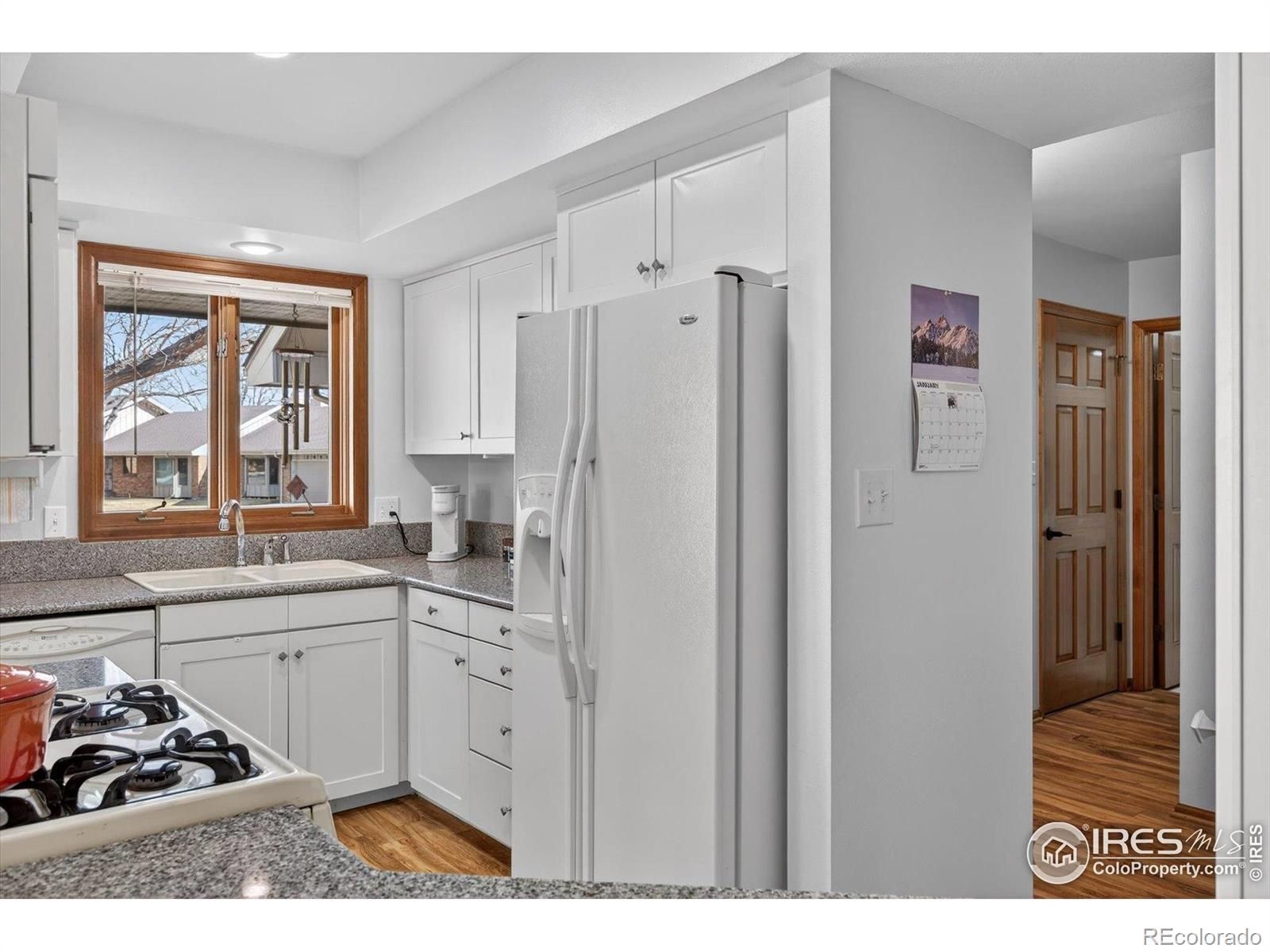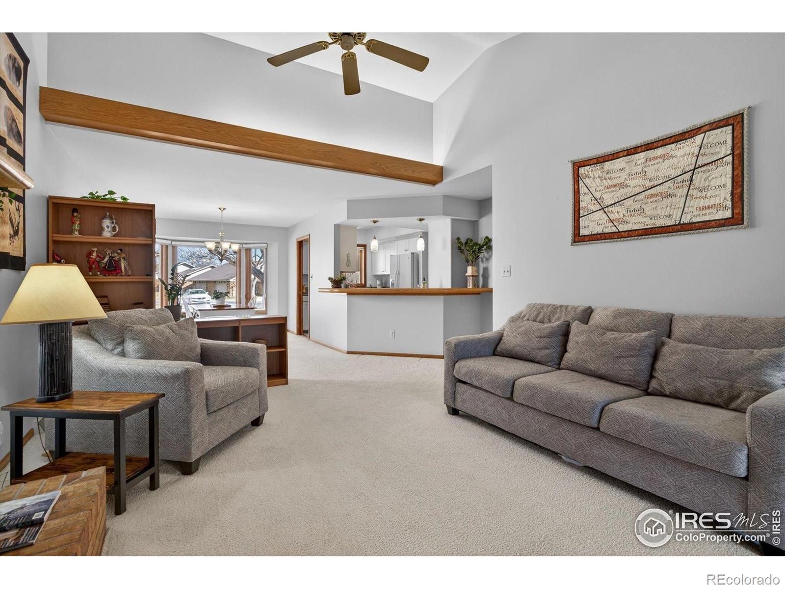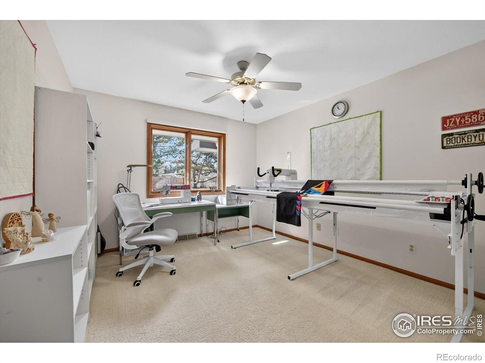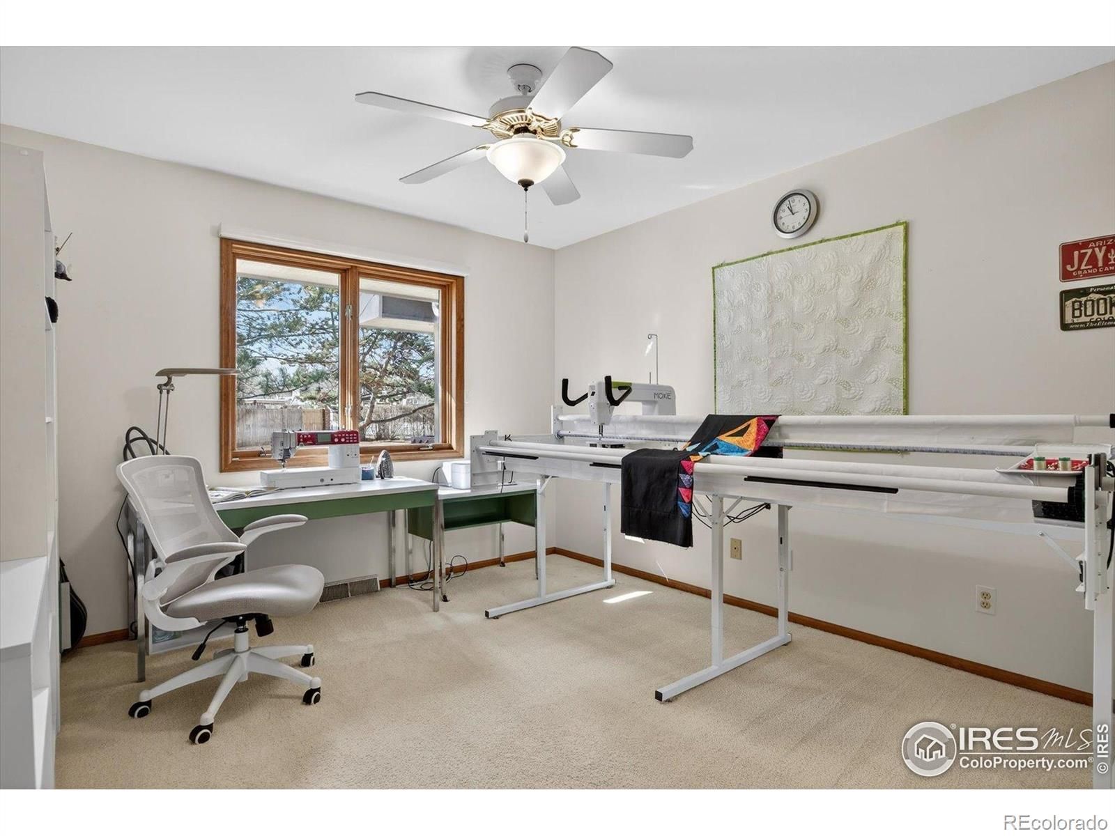 Prepare to be impressed with this beautiful, move in ready home in a small intimate 55 + community . With green space and mature landscaping all around, one can appreciate the quiet neighborhood and the low maintenance living allows you to concentrate on the important things! The living space features a gorgeous gas brick fireplace to enjoy those cool Colorado evenings, which opens to a generously sized dining room with plenty of light! This property also features an updated kitchen with newer cabinets and quartz countertops. The primary suite provides a serene oasis with nice open space views of the landscaping and trees outside and includes adjoining bath and double closets.The second bedroom is currently being used as a quilting room and has plenty of space for guests, projects, office, crafts, and additional bedroom opportunities. There are a few storage options in the home: a walk in storage closet in the garage, crawl space below the home, and attic access in the garage with a built in drop-down ladder. Don't miss this opportunity to live in a sweet, quiet spot made just for you. Be prepared to see some stunningly colorful sunsets throughout the year. In addition, there is resident access to a bench on the lake to sit and watch the wildlife that frequents the area.