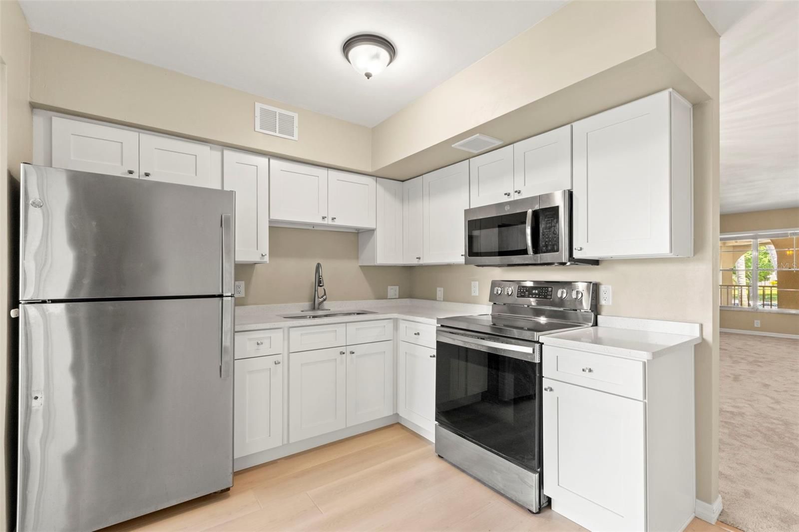 Welcome to maintenance-free living in the highly desirable 55+ community of On Top of the World Clearwater! This fully renovated 1-bedroom, 1-bath condo has just been completed and has never been lived in since the renovations. Step inside to a light and bright interior featuring a beautifully updated kitchen with quartz countertops, white shaker cabinetry, and stainless steel appliances. The spacious layout flows seamlessly to a large covered private balcony with new ceiling fans, creating an inviting outdoor living space perfect for relaxing or entertaining year-round, with potential to enclose for additional interior living space. The primary bedroom is generously sized with ample closet space, while the fully updated bathroom features white shaker cabinetry, quartz countertops, and a tub/shower combination, delivering both style and functionality. Every detail has been thoughtfully updated, providing a move-in ready home with a clean, modern feel throughout. Enjoy the added convenience of a community elevator located just steps from your front door, along with assigned parking and a well-maintained building. Residents of On Top of the World enjoy an exceptionally active, amenity-rich lifestyle with access to tennis courts, pickleball, multiple swimming pools, a fitness center, community center, library, billiards room, card room, dog park, and a full calendar of social activities. The community is pet friendly. Ideally located near top-rated hospitals, as well as just minutes to Clearwater Beach, Countryside Mall, Downtown Dunedin, Safety Harbor, and the Pinellas Trail—offering the best of Florida’s coastal lifestyle with shopping, dining, recreation, and beaches all nearby. Whether you’re looking for a full-time residence, seasonal retreat, or low-maintenance Florida condo, this home delivers exceptional value, modern updates, and the lifestyle you’ve been waiting for.