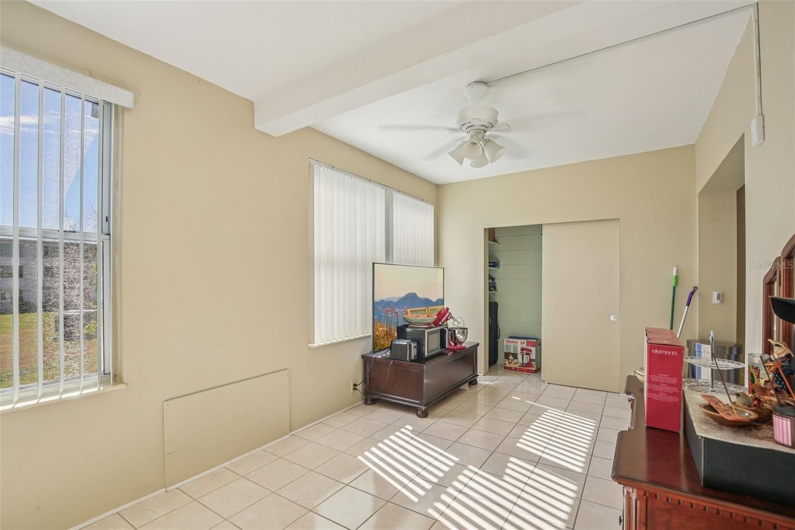 - Ceiling Fan(s), Main Level Primary, Solid Surface Counters