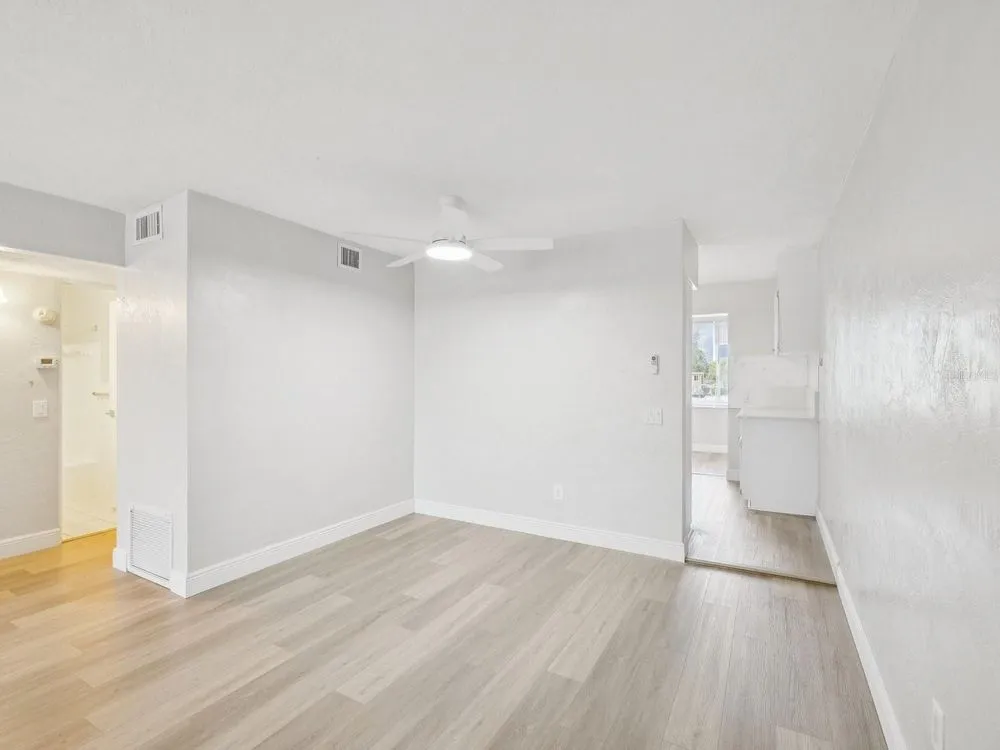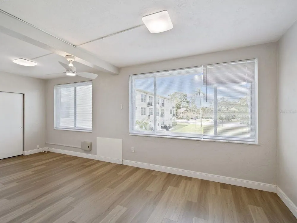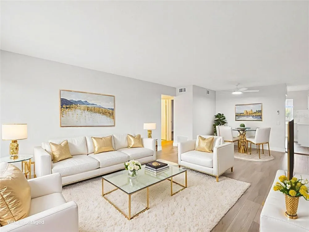 One or more photo(s) has been virtually staged. BEAUTIFUL AND AFFORDABLE FLORIDA LIVING in this nicely UPDATED 2/1 with a generous 1,100sf of living space in the spectacular On Top Of The World condos in Clearwater! You don’t want to miss seeing this one. This unit is in a Fee Simple building with no land lease making it highly sought after. There are only a few buildings here that are Fee Simple meaning there is no additional land lease fee. Also, it’s very close to the Clubhouse and you will find many wonderful amenities in this active lifestyle 55+ community. Your new home features exquisite NEW LVP Flooring, fresh soothing paint palate, beautiful updated kitchen featuring NEW Quartz countertops, newly painted wood cabinets, and NEW stainless appliances. Windows are upgraded and add lots of natural light to your space! The Florida room runs the entire length across the back and is a wonderful flex space with a wall of bright windows overlooking lovely views of well kept grounds and landscaping. Ceiling fans in each room keep spaces breezy if you like and modern sinks and faucets are in kitchen and bath. Pet friendly community with street lighted sidewalks for day or evening strolls. On Top Of The World is a very well maintained larger community and enjoys on-site property management, boasts a huge clubhouse, resort style pool, tons of activities, classes, and TWO Golf Courses to keep your game on par! Meet up with new friends in the Good Karma Cafe or learn to paint, join a dance class, maybe spend time in the state of the art fitness center. On site EV Charging Stations for convenience and scheduled transportation to shopping. The elevator is located only steps from your unit as well as the clean and maintained laundry center. There is assigned parking with ample visitor parking. Buildings are block construction to weather any storm, in No Flood Zone, and Florida’s pristine top rated soft sand beaches are only a 10-15 minute drive away. Right outside this gated community you will fine a plethora of restaurants, shopping, hospitals, Drs, and quaint downtown Dunedin or Safety Harbor. It is hard to find Affordable and Beautiful communities these days in Florida with so much to keep you busy but you just found one! Reasonable HOA includes water sewer trash cable tv and internet as well as all amenities and Golf! Schedule your private showing soon!