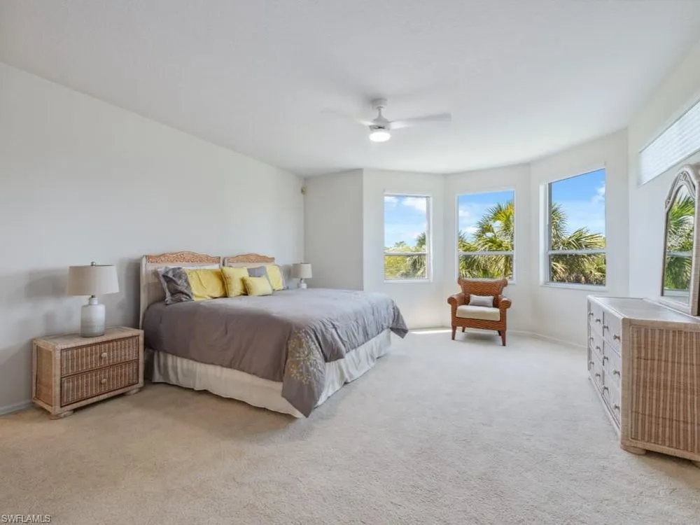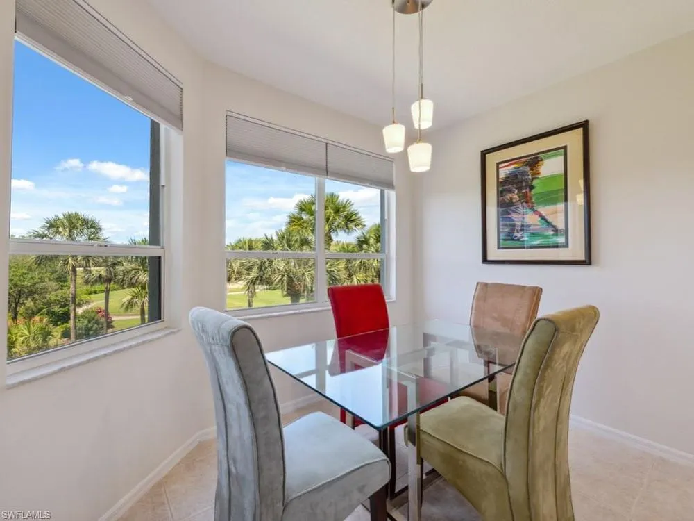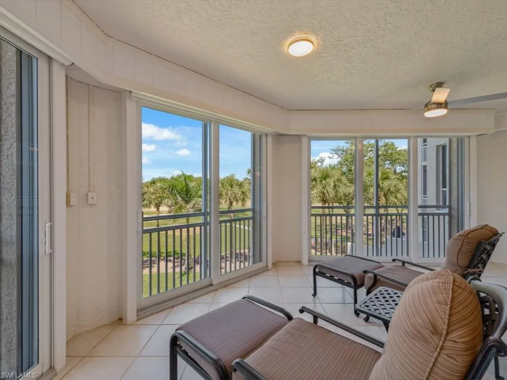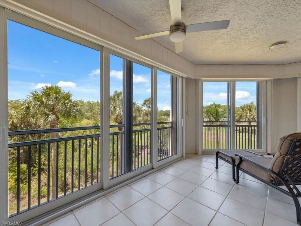 BACK ON MARKET! BUYER COULD NOT CLOSE! Indulge in the coveted Pelican Landing lifestyle with this 3-bedroom, 3 full bathroom condominium in Sandpiper Isle. Wake up to breathtaking golf course views and savor spectacular sunsets from your light-filled haven. This residence offers almost 2000 sq ft of air conditioned living space. The spacious wrap-around lanai complete with sliding glass doors extends your living space for year round use. Inside, you'll find a wet bar, custom built-ins, and a well-appointed kitchen with stainless steel appliances, a pantry, and abundant cabinet space. The generous primary suite provides direct lanai access and an ensuite bathroom with dual sinks, a deep soaking tub, and a walk-in shower. Enjoy peace of mind with hurricane impact windows and doors, and electric hurricane shutters on the lanai. This condominium also includes an oversized laundry room and two deeded parking spots in the under-building garage. Nestled in Pelican Landing—a master-planned community spanning 2,300 acres of protected wetlands, wildlife areas, and vibrant landscaping—residents enjoy exclusive amenities including a private beach park, tennis center with 12 Har-Tru courts, a fully equipped fitness center, pickleball courts, kayak/canoe park on Spring Creek, fishing piers, and a marina with sailboat and kayak rentals plus sailing lessons. Optional Social and Golf Memberships are available for The Nest Golf Club, featuring two championship 18-hole courses designed by Tom Fazio. This property is turnkey furnished and move-in ready, offering an exceptional opportunity to embrace the best of Southwest Florida living!
