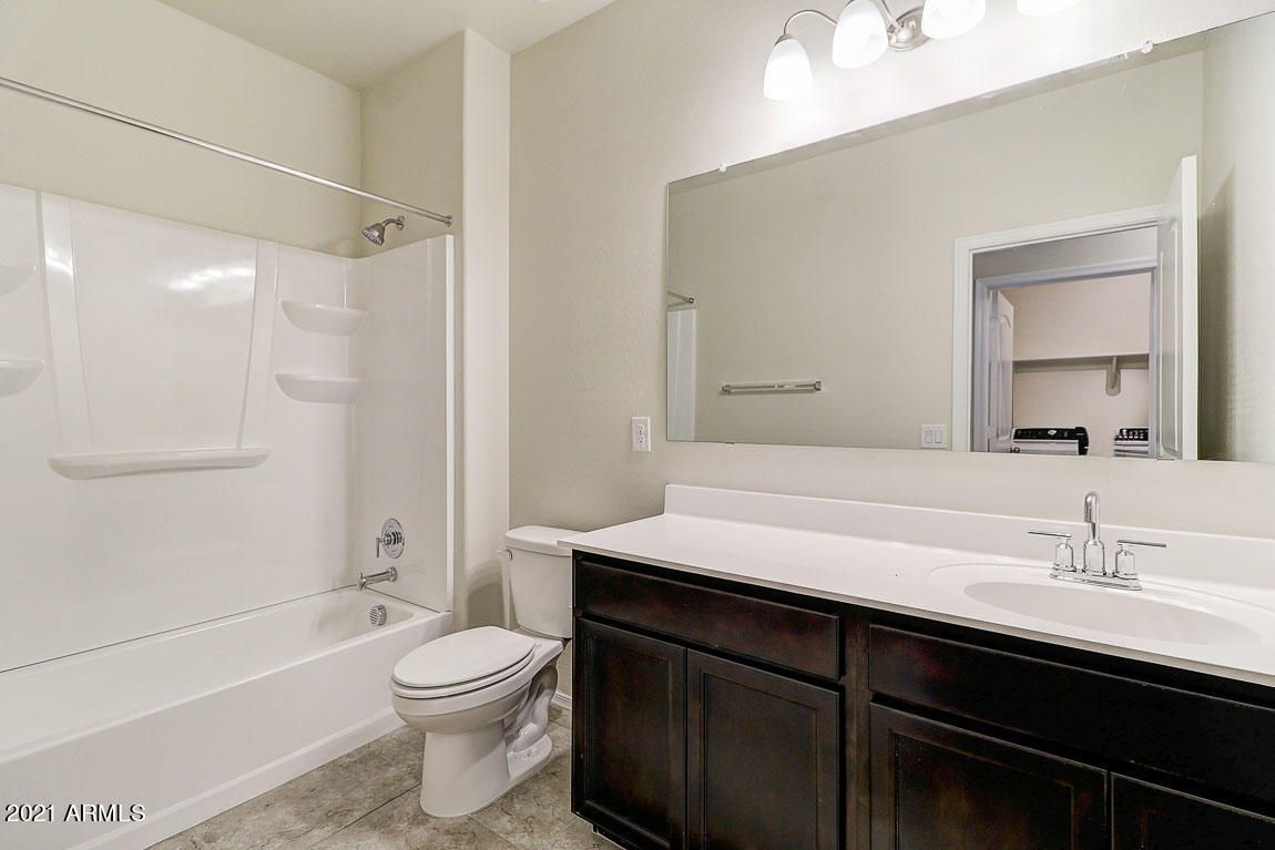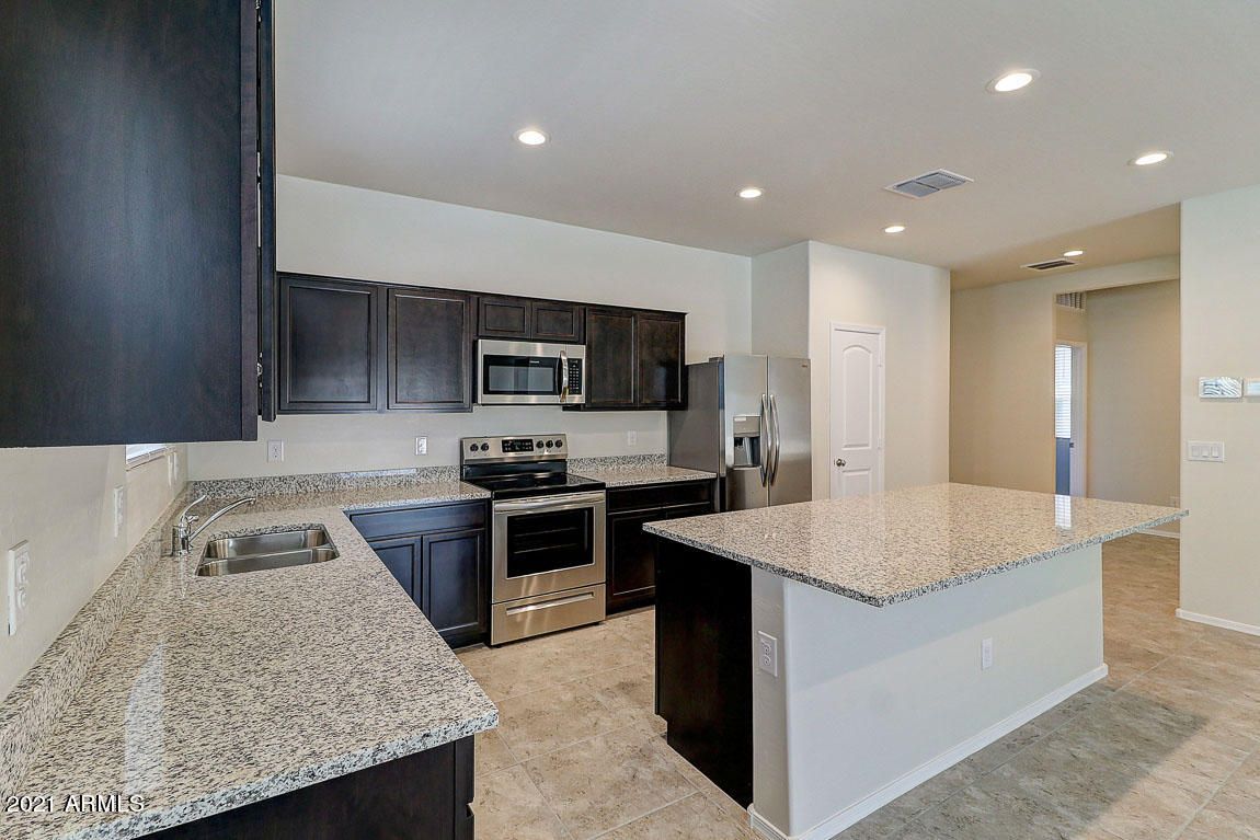 Location! Location! It is an open single-story home featuring 4 bedrooms with 2 bathrooms and a 2-car garage. Upgraded interior finishes include granite counter tops in the kitchen, cultured marble bathrooms, Espresso cabinets and 20x20 tile extended tile flooring in all area except Bedrooms. A complete upgraded stainless steel appliance package + refrigerator, washer and dryer, window blinds, garage door openers, front and backyard desert landscaping are all included! Located easy access to I10, Shopping and Restaurants. Mission Royale offers Community Pool with waterslide, volleyball and basketball court.