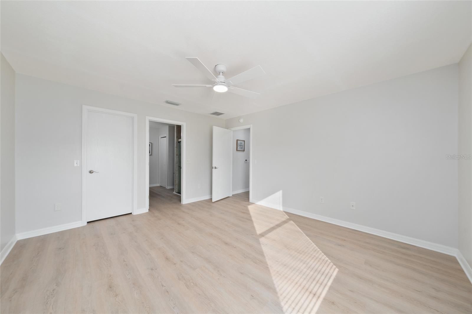 - Ceiling Fan(s), Kitchen/Family Room Combo, Living/Dining Room, Open Floorplan, Main Level Primary, Split Bedrooms, Thermostat, Walk-In Closet(s)