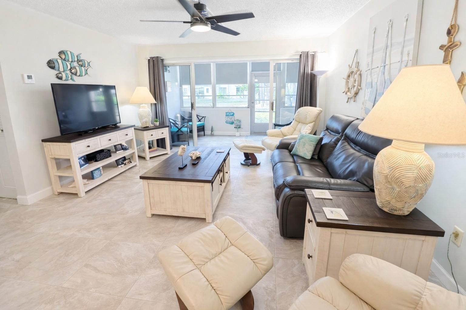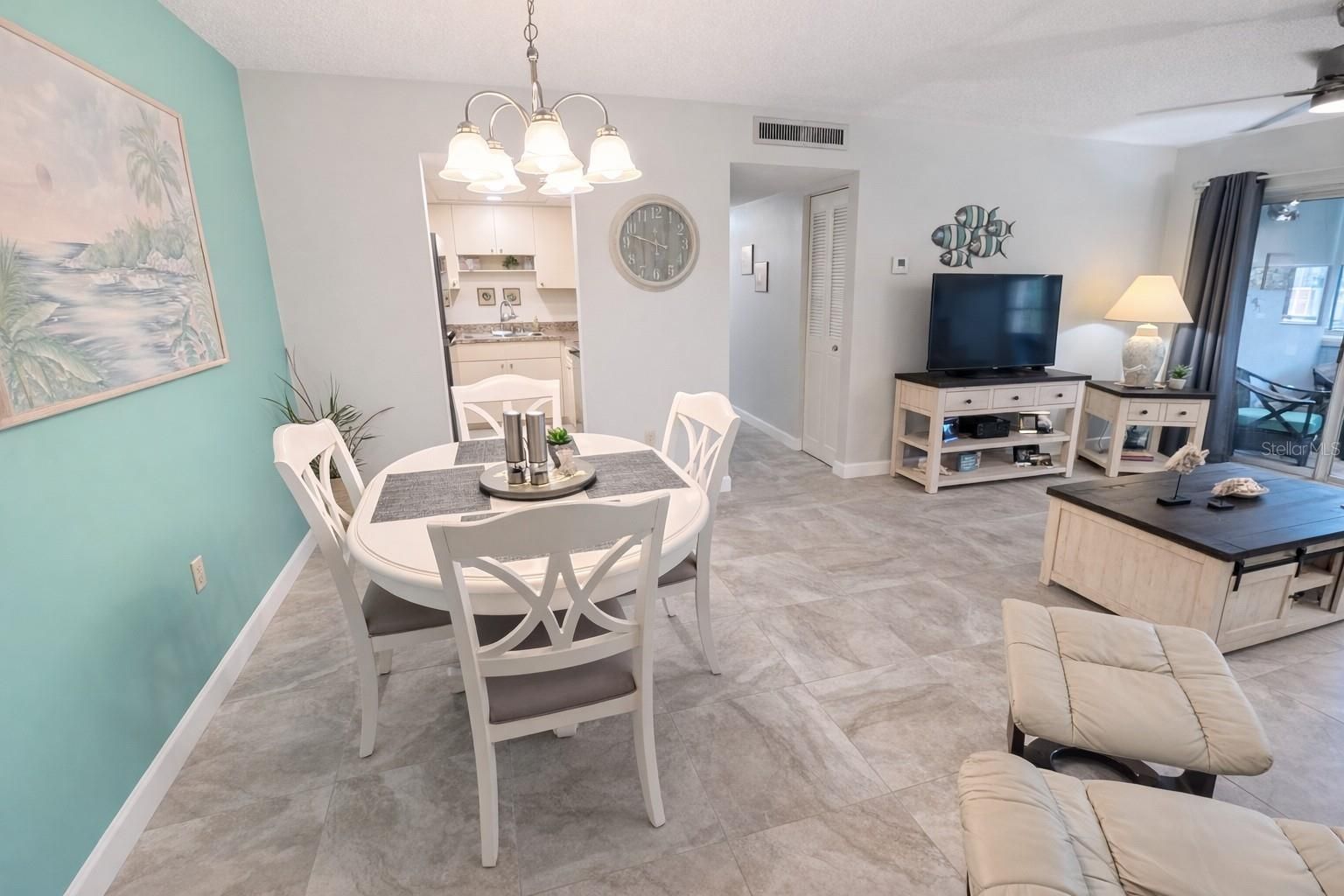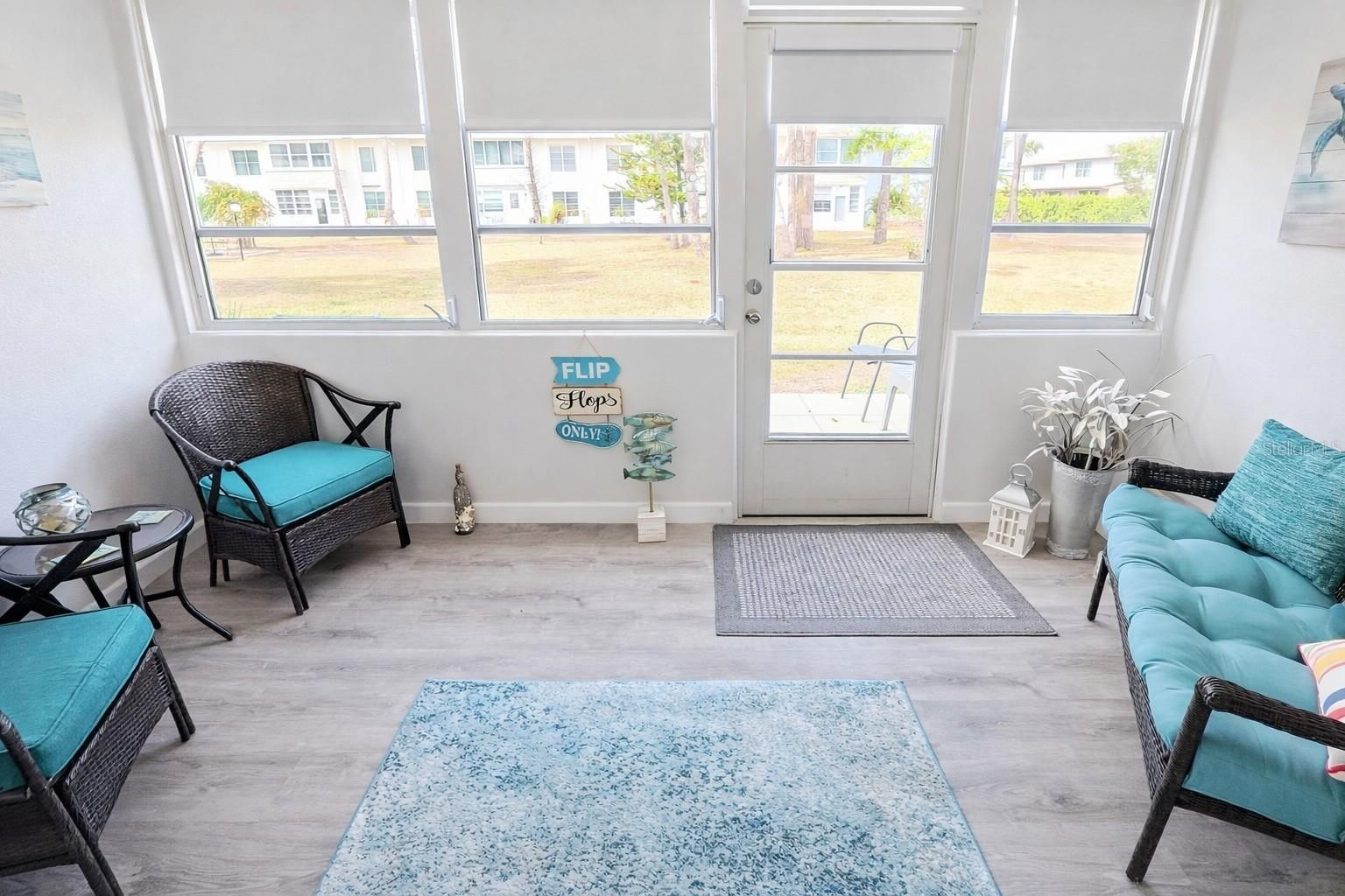 Super cute and move-in ready! This fully furnished, first-floor condominium offers easy, low-maintenance living in the desirable Essex House 55+ community. Tastefully decorated and thoughtfully laid out, this unit is being sold turnkey furnished, making it ideal for full-time residents or seasonal owners. The bright, open living and dining area features tile flooring throughout, neutral coastal décor, and sliding doors leading to an enclosed lanai—perfect for relaxing and enjoying the Florida lifestyle. The kitchen offers ample cabinet and counter space and is open to the dining area for easy entertaining. The spacious bedroom provides comfortable accommodations and generous closet space, and the bathroom has been nicely partally updated. Major improvements include a new electrical panel and a new hot water heater, both replaced in 2024, offering peace of mind for the next owner. A private storage unit is included and a community storage area, adding valuable extra space rarely found with condo living. Conveniently located on the first floor with close access to parking, laundry, and common areas. The association maintains the exterior, roof, landscaping, and common amenities for true maintenance-free living. Essex House is a 55+ community with association approval required. No pets. Leasing restrictions apply. Centrally located near shopping, dining, medical facilities, and area beaches. Just bring your suitcase—this adorable condo is ready for you to enjoy!