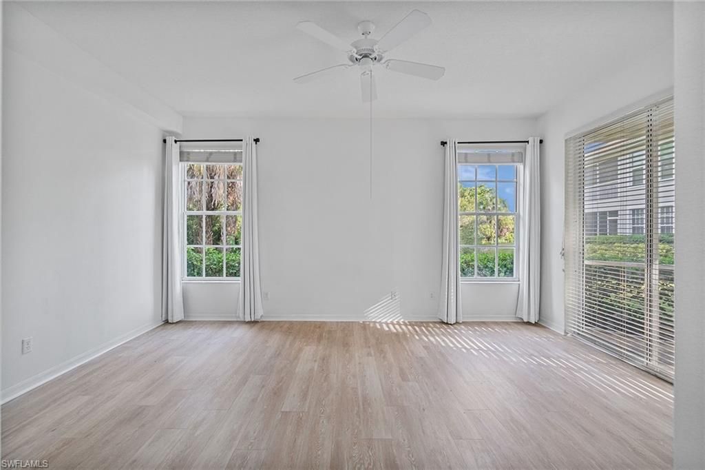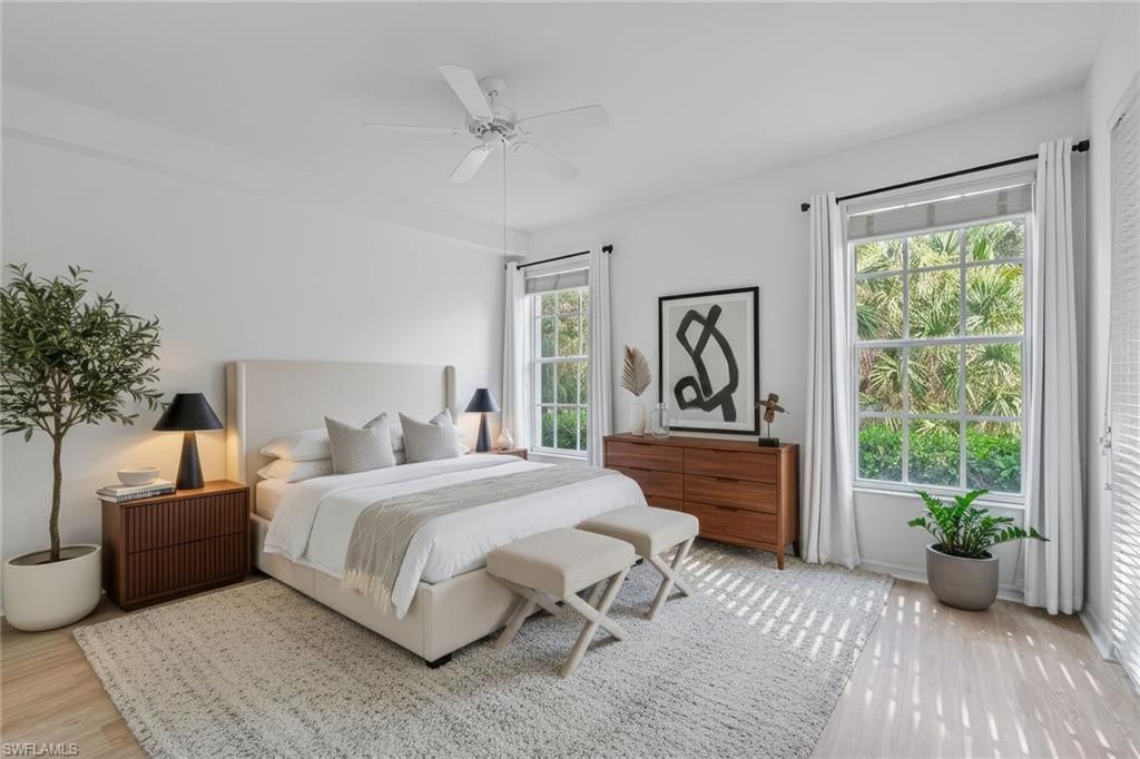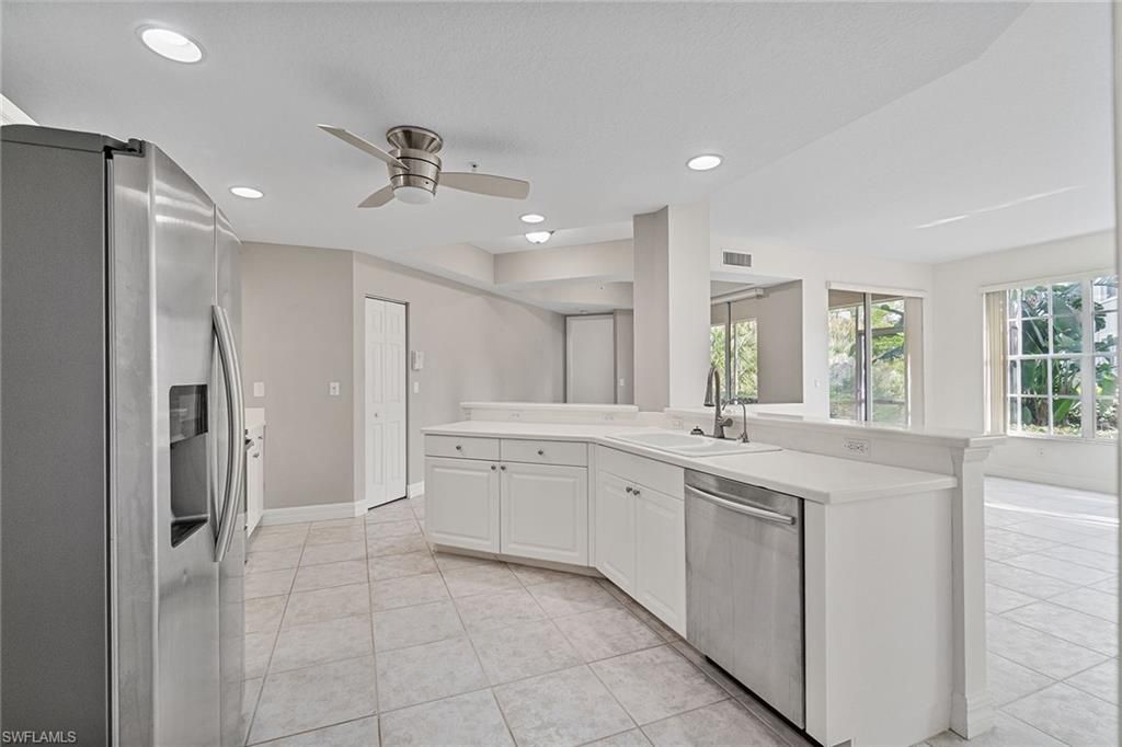 Outstanding value and priced to sell quickly! HOA fees include nearly everything (water, cable, wifi, etc.) with the exception of electricity. This bright end-unit garden oasis showcases a striking wall of windows that fill the property with an abundance of natural light while framing lush greenery and preserve views from nearly every room. Step inside to discover an open airy floor plan with volume ceilings, tile and luxury vinyl flooring, and a guest bedroom and bath on the opposite side of the residence, providing comfort and privacy for visitors. The open-concept kitchen is stylish and functional, featuring a 2024 stove, walk-in pantry, center island and breakfast bar, recessed lighting, pot filler, new garbage disposal, and an upgraded Aquasana 3-tank water filtration system. The spacious primary suite overlooks the preserve and offers a relaxing retreat with a large walk-in closet, dual sinks, a separate soaking tub and walk-in shower, recessed lighting, and a private water closet. Enjoy peace of mind with recent updates including a 2022 AC system, 2024 water heater, and new dryer. Additional highlights include a pristine one-car attached garage with a new Chamberlain garage door opener system and rollers, and a screened lanai perfect for taking in the gorgeous surroundings. Residents of Pelican Landing enjoy an unparalleled lifestyle with access to a private beach park on Big Hickory Island, sailing, kayaking (two kayak launches with equipment and attendants), a full-service marina, state-of-the-art fitness center, tennis and pickleball, bocce, a beautiful butterfly garden, and miles of scenic walking and biking trails.