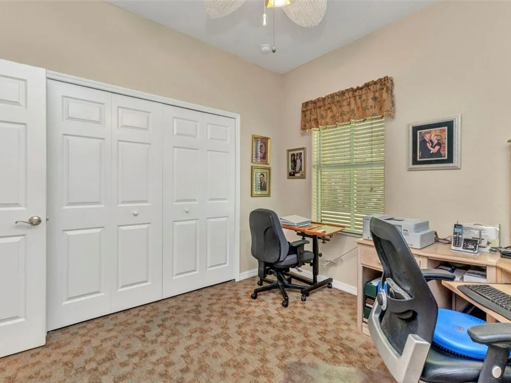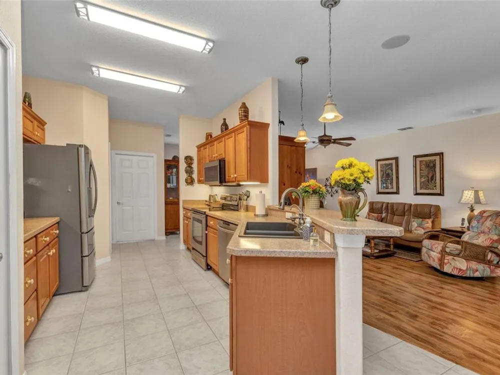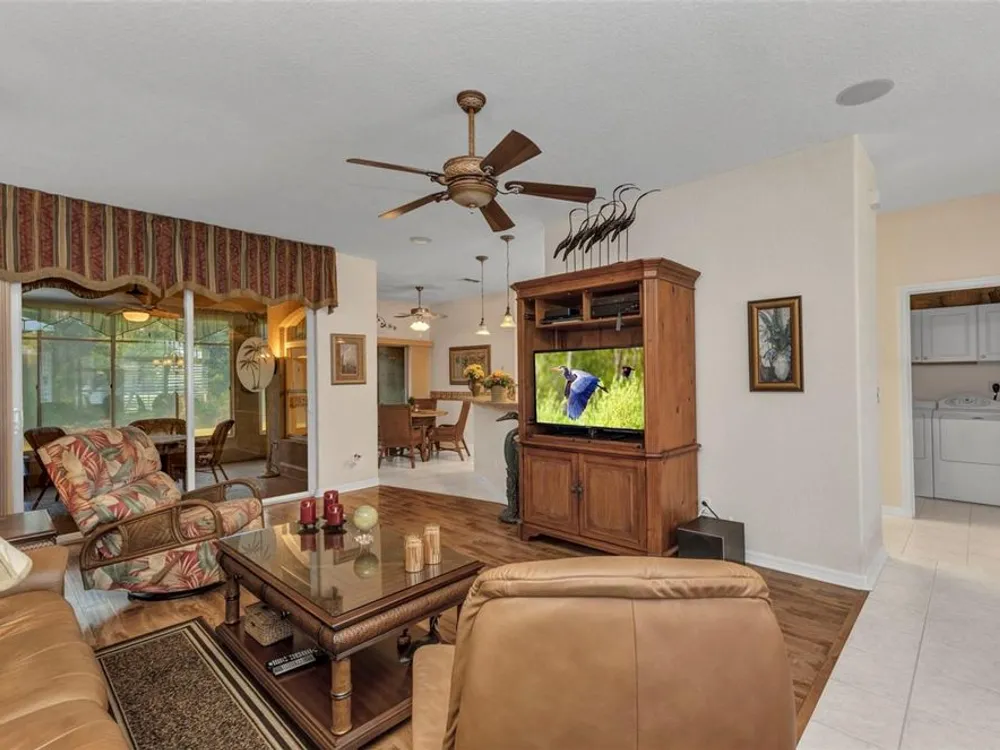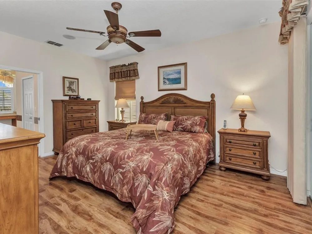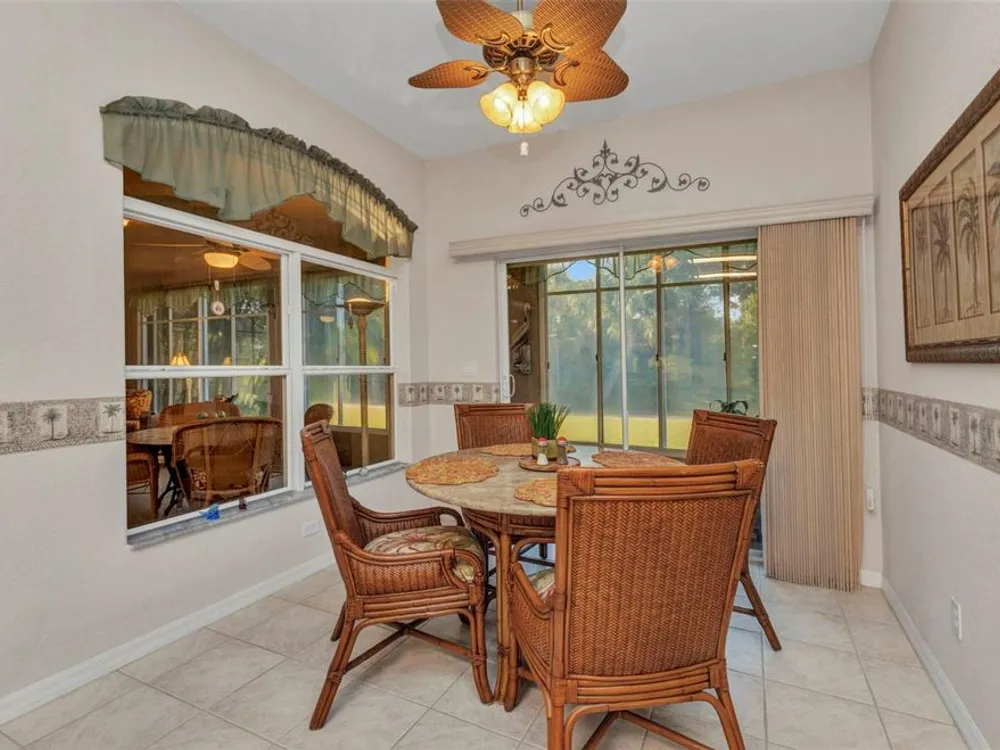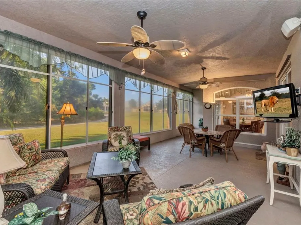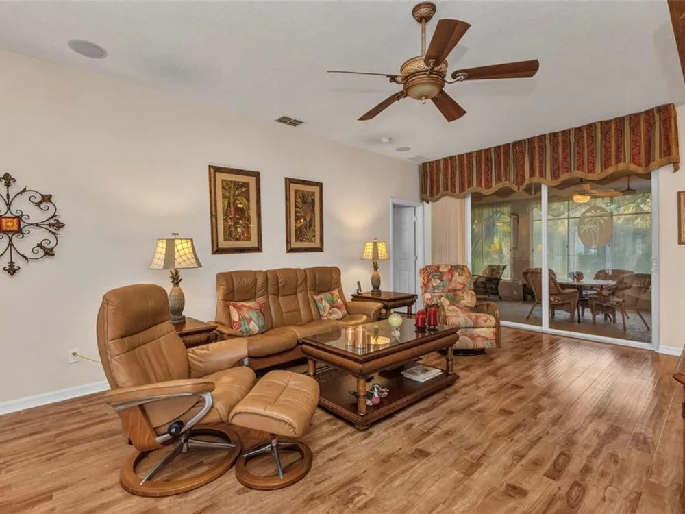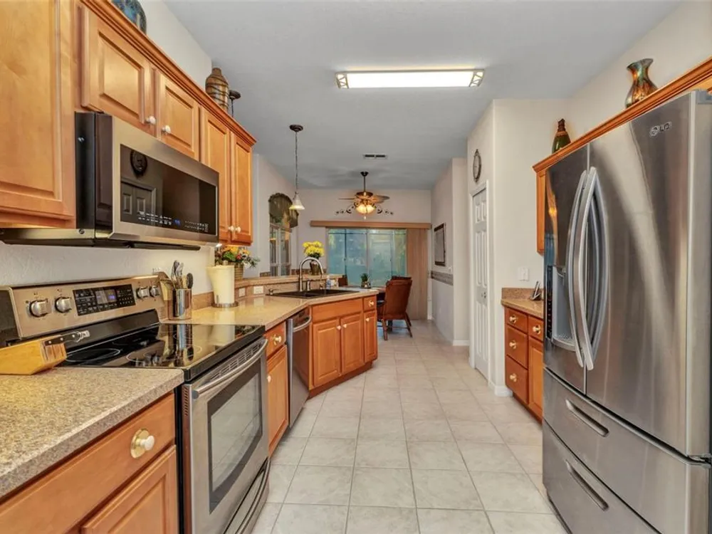 SENSATIONAL BRISTOL Floor plan - true 3 bedroom with MASSIVE LANAI and AWESOME VIEW available in the highly desirable gated golf course/active resort of Kings Gate, a 55+ community that is NOT in a flood zone and in evacuation zone D (have never been ordered to evacuate). Located on a quiet street - this home being sold MOSTLY FURNISHED features a 2020 ROOF, 2022 AC and 2023 HWH and has accordion shutters and Bahama shutters. Step inside this WELL MAINTAINED home and you'll see a SPACIOUS living room before your eyes are drawn to that MASSIVE LANAI and gorgeous view it provides. The floor plan flows exceptionally well as it seamlessly brings together the dining room, kitchen, living room and lanai - providing you plenty of options for entertainment and/or relaxation. Kitchen offers SS appliances, pull outs in the cabinets and under cabinet lighting. Split floor plan has master bedroom on the back left with the guest bedrooms/bath on the back right - providing plenty of privacy for both you and your guests. One of the guest bedrooms is currently set up as an office with the other guest bedroom featuring a murphy bed and pull out craft table allowing for tremendous flexibility on how to use the room year round. Garage has sliding screens across the front and hang down storage. No question you're going to love enjoying your morning cup of coffee or your favorite after dinner drink on that massive enclosed lanai providing a scenic view. And if you haven't been to Kings Gate before - you're going to love the options for activity (Olympic size heated swimming pool and spa, tennis courts, pickle ball, lawn bowling, shuffle board, bocce, horseshoes, gym, billiards, library, euchre, bingo, bridge, Texas hold em, poker, mahjong and more). The onsite AND NEWLY REMODELED Lions Den restaurant and bar is super convenient and also offers Tuesday night Karaoke and monthly trivia contests. Many residents love the fact that they are just a golf cart ride away from the shopping plaza that provides you access to grocery store, drug store, bank, restaurants and shopping. Want to explore outside of Kings Gate – you are minutes away from the restaurants and shops of downtown Punta Gorda and Fisherman's village. And if you want to explore more of Florida's fun spots you’re near I75 to quickly head north or south. An AWESOME home with a MASSIVE LANAI and a great view in a PREMIER gated community that NEEDS to be EXPERIENCED. Call today for a private showing and a golf cart tour of the community/amenities.