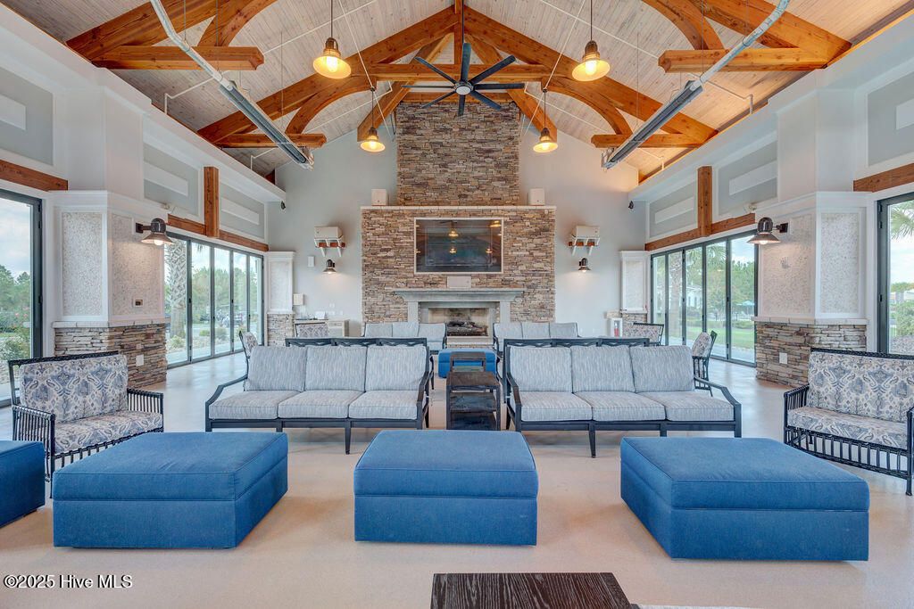 - Blinds/Shades, Tray Ceiling(s), Walk-In Closet(s), Walk-in Shower, Gas Log, Kitchen Island, Ceiling Fan(s)