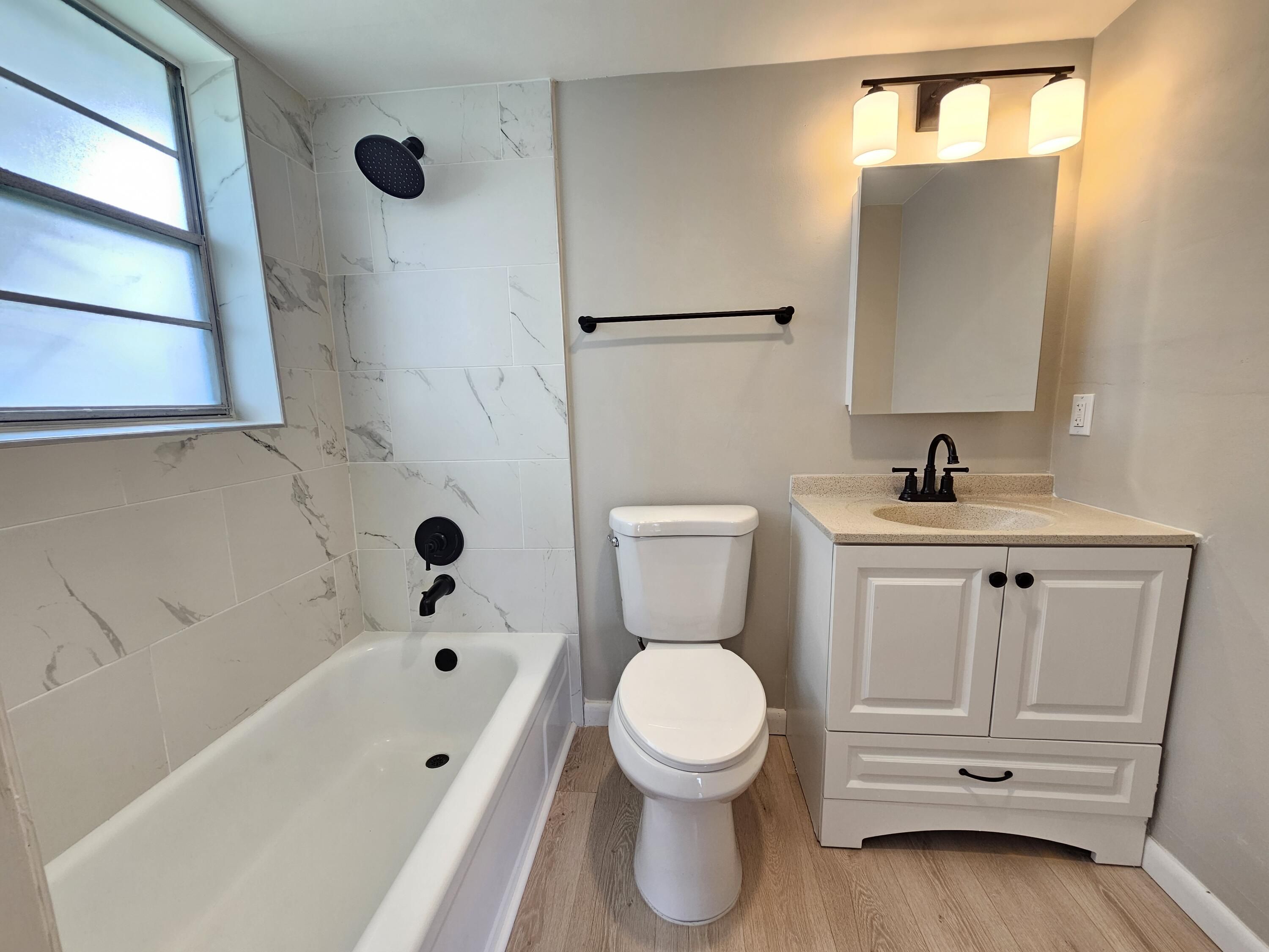 Come see this renovated 1 bedroom / 1.5 bathroom corner unit with a brand new central a/c system and upgraded electrical in the HOPA Community of Century Village in West Palm Beach! As you enter, you will notice the freshly painted neutral walls and upgraded LVP wood like flooring that gives the perfect contrast with the walls. The kitchen has been updated with brand new white shaker cabinets, quartz counters, under mount sink and stainless steel appliances. The large bedroom has plenty of closet space and a nice balcony to overlook the green space while sipping your morning coffee or reading a book. The full bathroom has updated wall tile that looks like marble. The spacious living room is perfect for entertaining! All new outlets, switches and electrical fixtures. Move-In Ready!!!!!!