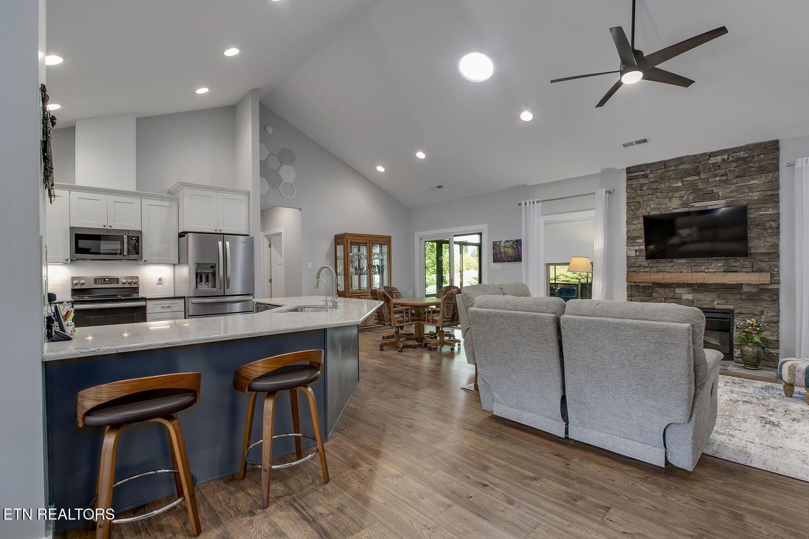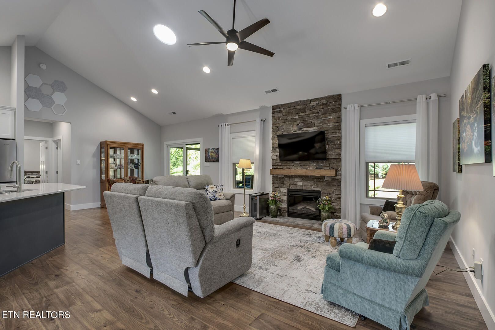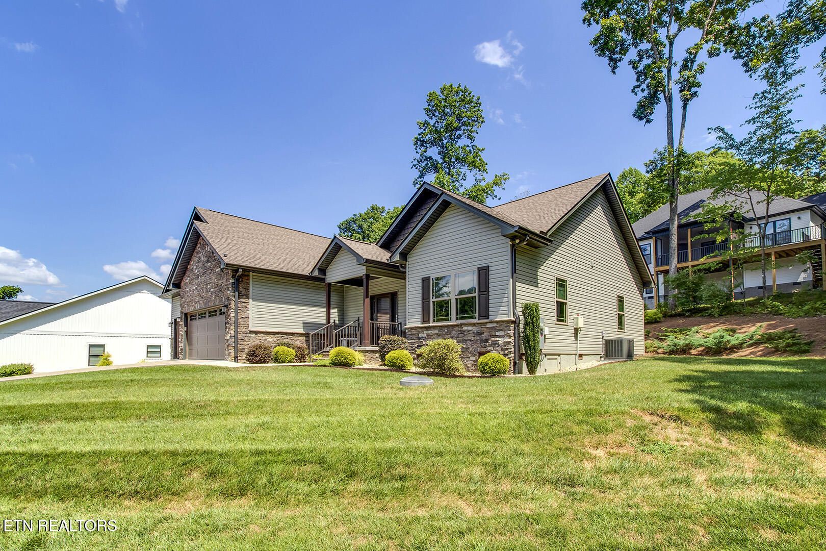 A craftsman style home with a three-car garage, on a corner lot that is located in the heart of Tellico Village. Although the owner has been in the home for a short while, the screened in porch was converted to a four-season sunroom and a mini-split system was added. The double wide, single door leading out to the all-season room was replaced with a sliding glass door. A utility sink was added to the laundry room (washer & dryer convey with the property). Driveway pavers were installed. Custom-made handrails were added to the front porch and stairs as you walk toward the front entrance. Huper Optik film was installed on the windows. This lovingly cared for home offers an open floor plan with cathedral ceilings, recessed lighting, the popular split bedroom floorplan, a stacked stone electric fireplace (50'' wall mounted Samsung TV conveys with the property). The kitchen has an L shaped breakfast bar, a dedicated filtered water spigot for purified drinking water, under cabinet lighting, large walk-in pantry with shelving; kitchen appliances are GE black stainless steel (refrigerator conveys with the property). The owner's suite has a huge walk-in closet, double basin sink vanity, oversized walk-in shower with multiple shower heads and transom windows for natural light as well as a free-standing tub. There are two guest bedrooms and a full bathroom for visiting family and friends. Other items included are Rainbird remote controlled irrigation system, a 10'x8' grilling deck; 10'x12' paver firepit patio for entertaining outdoors. In addition to the property being in move in condition, it is located minutes away from the Wellness Center and the Recreation Center, pickleball and tennis courts and walking trails. If you are looking for a social community, there are numerous groups and activities offered to meet people and start you new beginning. All information taken from public or seller records and deemed reliable but not guaranteed and for the buyer to verify.