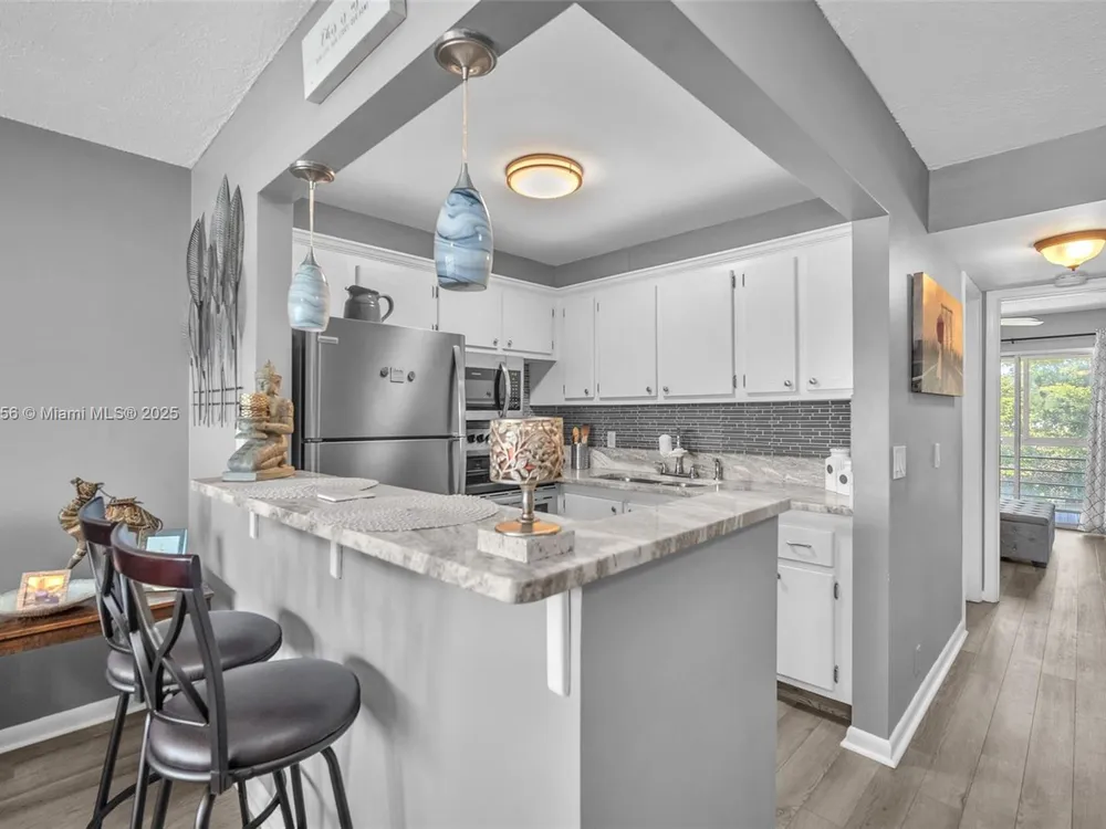 Price adjustment on this pristine, furnished, and move in ready unit; this home features a beautifully renovated kitchen equipped with stainless steel appliances, including microwave oven, and an updated bathroom. You'll appreciate the built-incloset in the bedroom, stylish vinyl flooring, and a utility storage closet for added convenience. Enjoy a serene water view from your bedroom balcony, while sipping your favorite drink. The wall cooling unit is only one year old, and the water heater is 5 years old. Plus, the roof has been replaced in 2024! 55+ community offers amenities, including lush landscaping, multiple swimming pools, pickleball, tennis, a 1,500 seat theater, music , movies, social clubs, spectacular clubhouse; an opportunity for the ultimate lifestyle. See Broker remarks!