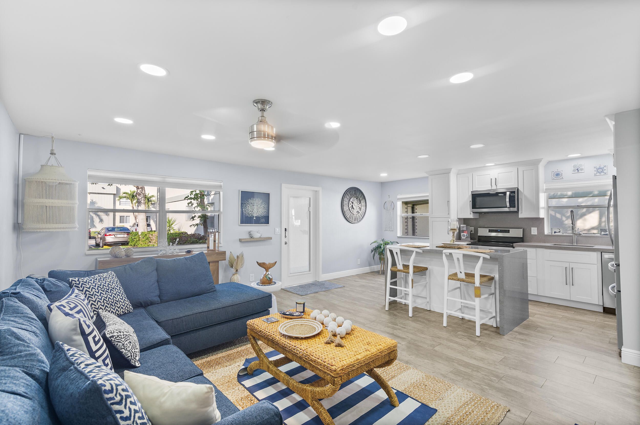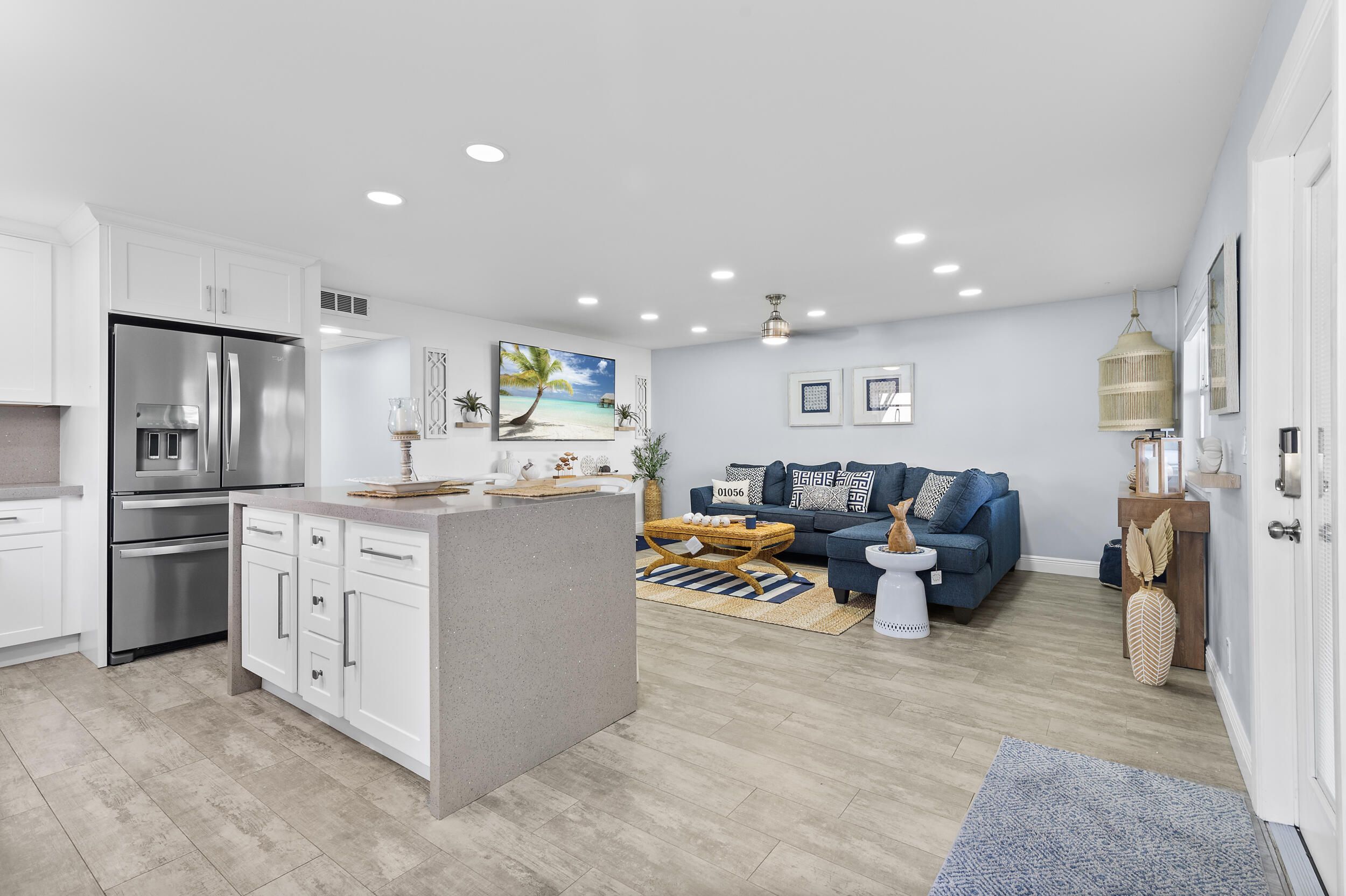 Welcome to your dream retreat at 244 Monaco F! This stunning, fully updated 2-bedroom, 2-bathroom ground-floor condo is located in the highly sought-after Kings Point Golf & Country Club, a premier 55+ community. Meticulously maintained, this paradise-like home has been upgraded to perfection with no expense spared! Located just moments from the Monaco Clubhouse, you'll enjoy easy access to the Bistro for a quick bite or a refreshing dip in the sparkling pool. From your enclosed patio, soak in the serene garden views, creating the perfect setting for relaxation. Inside, the open-concept kitchen is a showstopper, featuring a stunning quartz waterfall island, top-of-the-line stainless steel appliances, white shaker cabinets, and a quartz backsplash for a sleek, modern touch. The bright and airy living room is enhanced by flat ceilings, designer fixtures, LED recessed lighting, dimmer switches, and under-cabinet motion-activated LED lighting for added convenience and ambiance. The elegance continues with newly installed designer tile flooring throughout the living area. Both bathrooms have been completely transformed with tiled showers, new vanities, updated fixtures, and sleek glass shower doors. The spacious master suite features a large walk-in closet, providing ample storage. This condo is move-in ready, offered fully furnished with all the stylish features and upgrades you need to enjoy effortless living. Equipped with a 2019 A/C unit, updated electric panel, and a modern tankless water heater for energy efficiency. Beyond the home, Kings Point offers a multimillion-dollar clubhouse, two championship golf courses, a state-of-the-art fitness center, tennis, pickleball, multiple pools, and an on-site shuttle service for ultimate convenience. Looking to explore? Take an effortless drive to Delray Beach's famous Atlantic Avenue, where you'll find world-class dining, shopping, and entertainment. Plus, this prime location is just a short drive from major airports, making travel easy and stress-free. Whether it's your luxurious condo, the vibrant community lifestyle, or exciting evening entertainment, Kings Point has it all, both on-property and offsite. Don't miss out on this exceptional opportunity, schedule your private showing today and make this dream home yours!