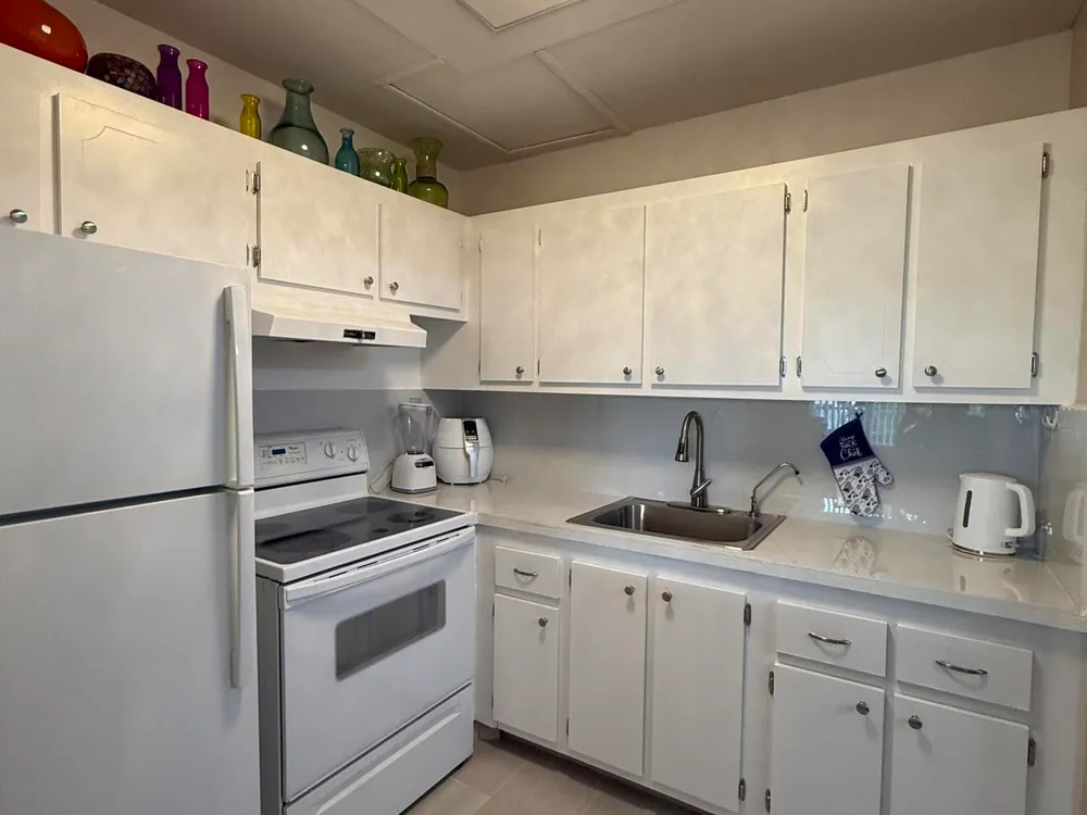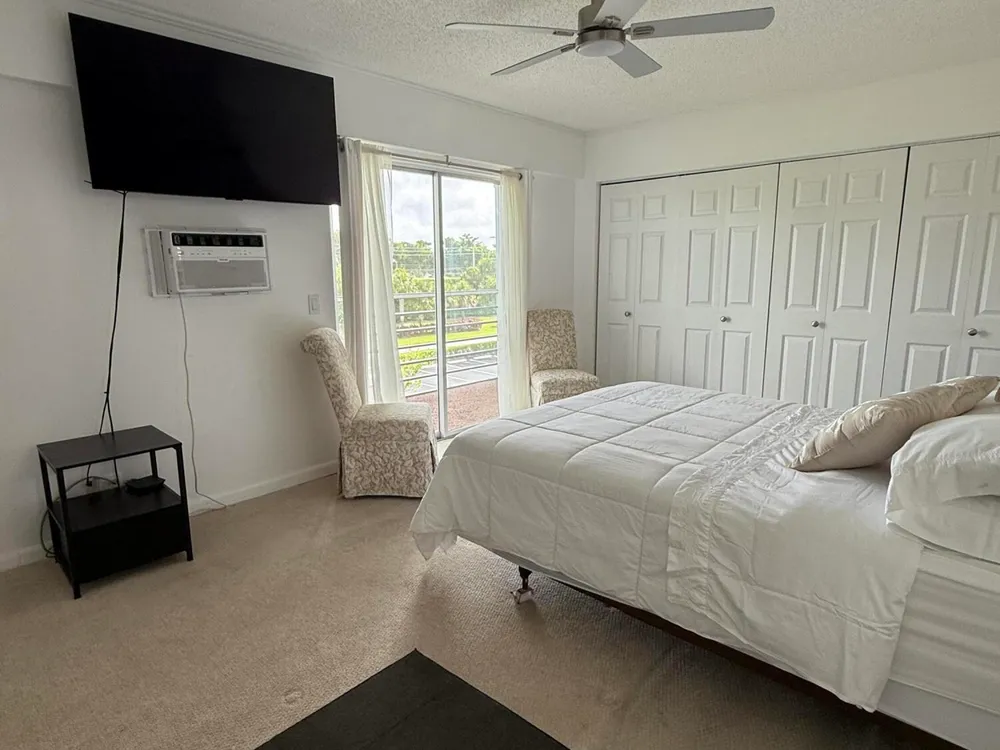 SHORT WALK TO HOUSES OF WORSHIP AND CLUBHOUSE. Move right in to this freshly painted 1 very large bedroom 1.5 bathroom condo. Built in work area. AC wall unit in bedroom is new. Porcelain floors in the kitchen with Porcelain counter tops. Laminate flooring in living room and dining room, carpet in the bedroom. Sliding doors to open porch from bedroom. Close to elevator. A MUST SEE