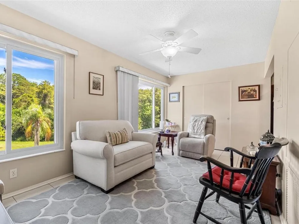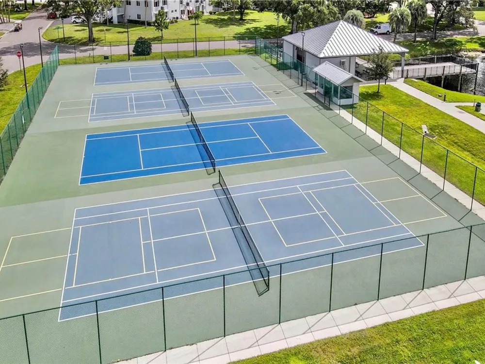 Welcome home to this BEAUTIFULLY FURNISHED, WELL MAINTAINED condo, with the expense of NEWER WINDOWS already taken care of! This unit is perfectly situated in the heart of the Countryside area of Clearwater. Tucked away at the end of a quiet cul-de-sac & located on the 3rd floor with no one above you, this residence offers peace and privacy along with GOLF COURSE VIEWS right from your front picture window. Inside you will appreciate the TASTEFUL UPDATES throughout. The kitchen features wood cabinetry, tile backsplash, Corian countertops, & NEWER STAINLESS STEEL APPLIANCES making it both functional & stylish. The baths have also been thoughtfully updated, most recently adding a new high sitting toilet in the primary bath, and new sink faucets. The AC and HWH are approx. 15 years old & have been well maintained to function properly & efficiently. The vibrant 55+ community is truly resort-style living at its best, with endless amenities and activities to enjoy everyday! Whether you're looking for a seasonal retreat or year-round Florida home, this move-in-ready condo checks all the boxes. This condo is being sold fully furnished, featuring over $12,000 worth of beautiful newer furniture from Rooms To Go! Assigned parking. The 55+ community has two activity centers, and two private golf courses with 9 and 18 holes, free exclusively for resident owners. There are two heated swimming pools. The remodeled Cardio Gym has the latest exercise equipment. A very pet-friendly community, there is a fenced dog park with covered seating. There are hobby studios, and a wood shop for the exclusive use of the residents. Activities include fitness classes, dancing, clubs, cards, billiards, entertainment, classes, and much more. The on-site Good Karma Café has take & bake meals and snacks. Close to beaches, transportation, shopping, entertainment, and fine dining. All room sizes, floor plans and square footage are approximate. This property is being transferred by a leasehold estate deed. Association approval is required. If financing, a 35% down payment is required.