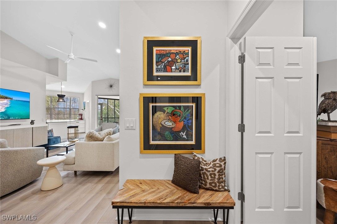 An exquisite renovated residence with thoughtful attention to detail, this residence is located in The Reserve at Pelican Landing — an exclusive 60-residence enclave surrounded by golf course and preserve views. Completed just two-and-a-half years ago, the renovation includes new flooring throughout, a custom-designed kitchen featuring an induction cooktop, convection oven, and stainless steel appliances, as well as updated owner and guest baths. The owner's suite offers a built-in closet system, while new mechanical systems — including air conditioner and water heater — provide added peace of mind. This home's open layout allows for comfortable everyday living and effortless entertaining. Situated in the center of Pelican Landing, residents of The Reserve enjoy their own community pool, spa, fitness room, and grilling stations. Just beyond, Pelican Landing provides access to exceptional amenities: a private beach island, 12 Har-Tru tennis courts, six pickleball courts, a sailing center with 15 sailboats, a marina, two golf clubs (The Nest and The Colony), and a modern fitness facility. Ideal for those seeking a low-maintenance lifestyle with rich recreational and social opportunities, this property presents a unique opportunity to experience Florida living with elevated comfort.