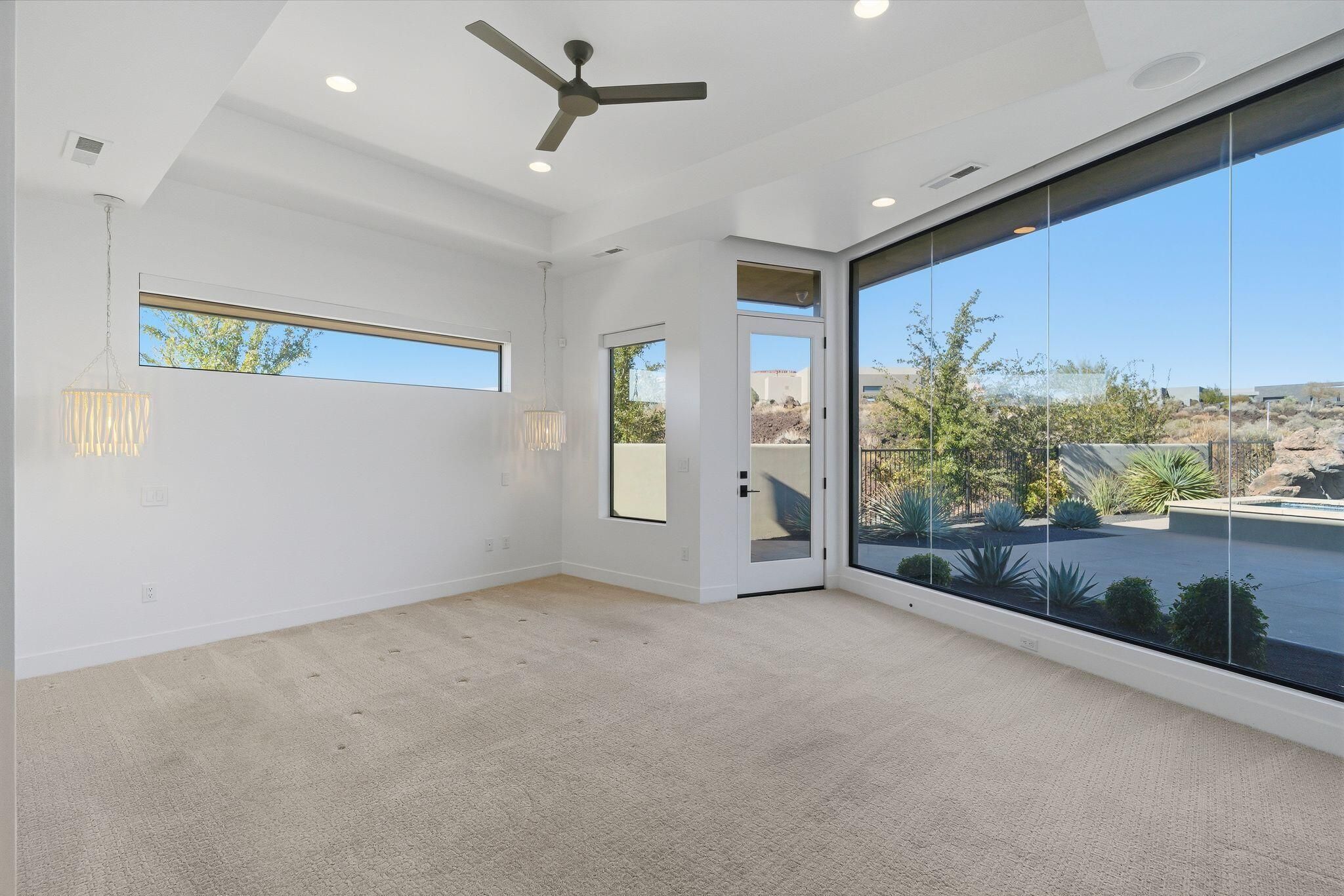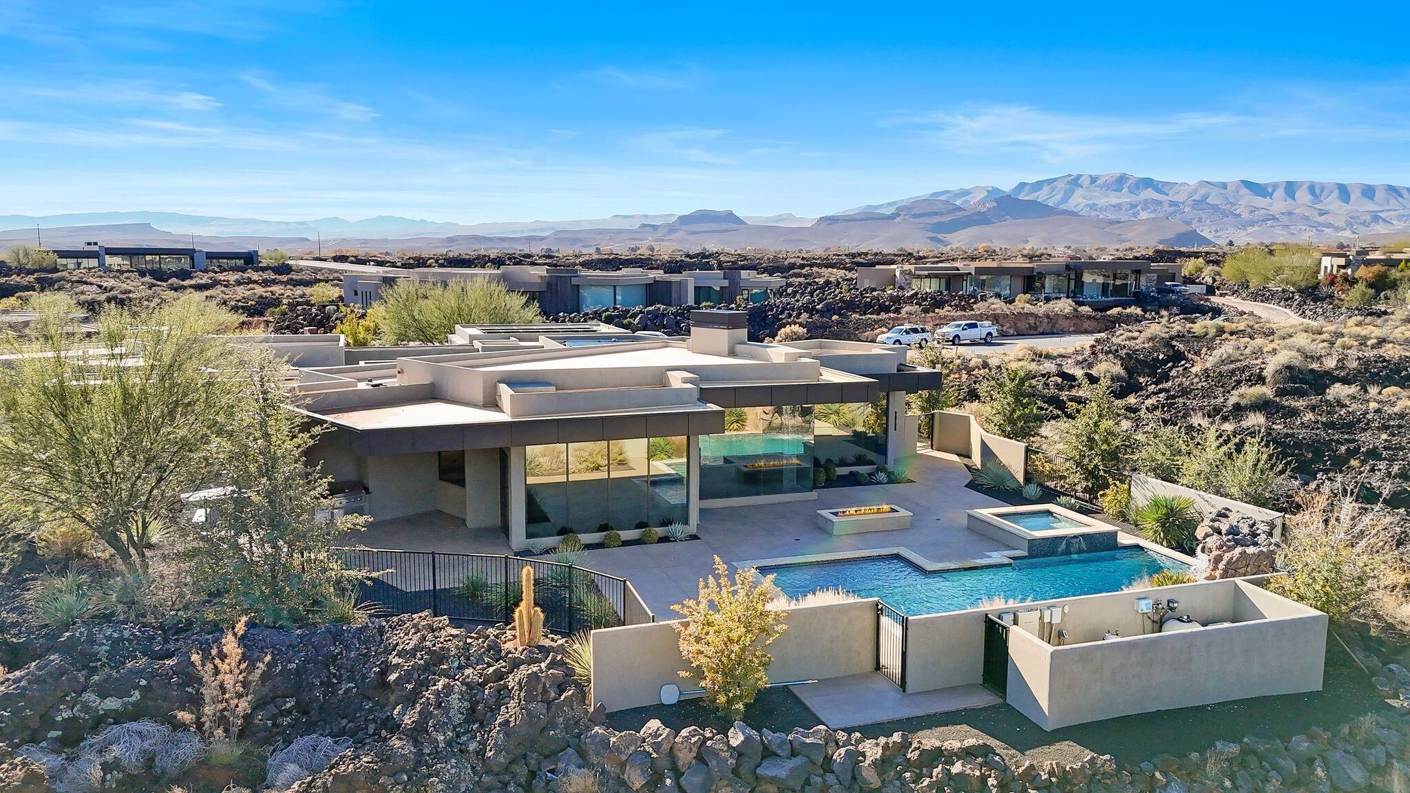 A true Desert Oasis nestled in the highly sought after and prestigious Entrada @ Snow Canyon Country Club. Situated on an oversized .81 acre lot, this sprawling estate features views of Snow Canyon & Red Mountain. The resort style backyard features a built in custom swimming pool equipped with a grotto, waterfall, detached Hot Tub, fire pit, and even a Mote! The gourmet kitchen features SubZero/Wolf appliances, a 6 burner wolf cooktop, and an open floor plan with floor to ceiling windows. The detached Casita (ADU) features its own private entrance, a private garage, and is fully equipped with a kitchenette, full bathroom, plumbed for stack washer / dryer, and a mud room with desk. The solar system on the roof is fully paid for and makes for extremely cheap power bills. This home was built by Shakespeare Dev. Group and is fully upgraded. Each bedroom has an ensuite bathroom with views and plenty of space. Come check out this gem nestled in the Lava Rocks @ Entrada.