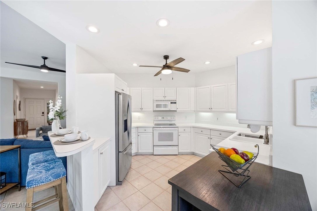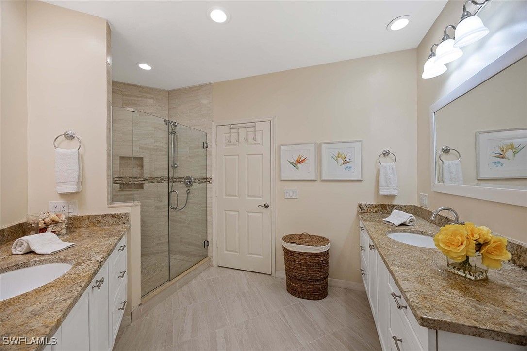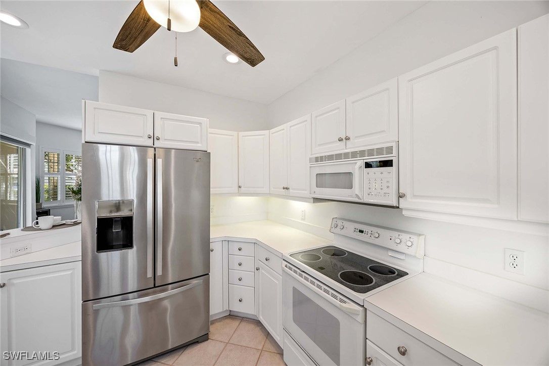 Welcome to this residence at 24420 Reserve Court Unit 103 in Bonita Springs. Offering three bedrooms, two baths and 1,657 square feet, this home features an open kitchen overlooking the golf course and preserve, complete with a stainless steel refrigerator and dishwasher replaced in 2022. A laundry room with sink, washer and dryer, also replaced in 2022, adds convenience. The renovated primary bath enhances the private retreat. The residence is fully furnished, with televisions in the living room and all bedrooms. One guest room includes a double bunk bed accommodating up to four adults. The screened lanai and lush patio provide additional outdoor living with golf course and preserve views. Constructed of concrete block, the building is part of a 60-residence community. Amenities include a renovated pool and spa, fitness room, outdoor kitchen with two stainless steel grills and an outdoor shower. A single attached garage is included.