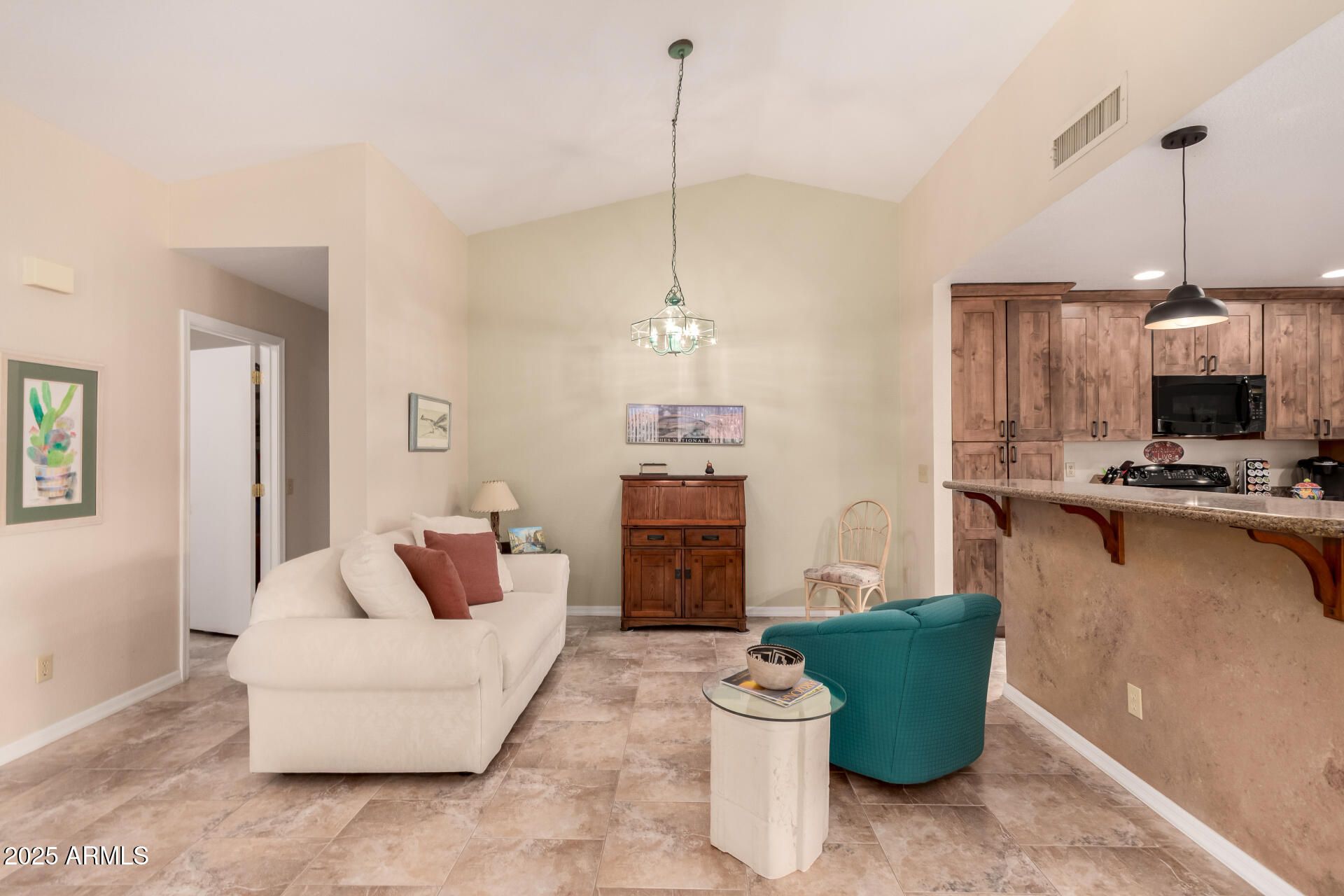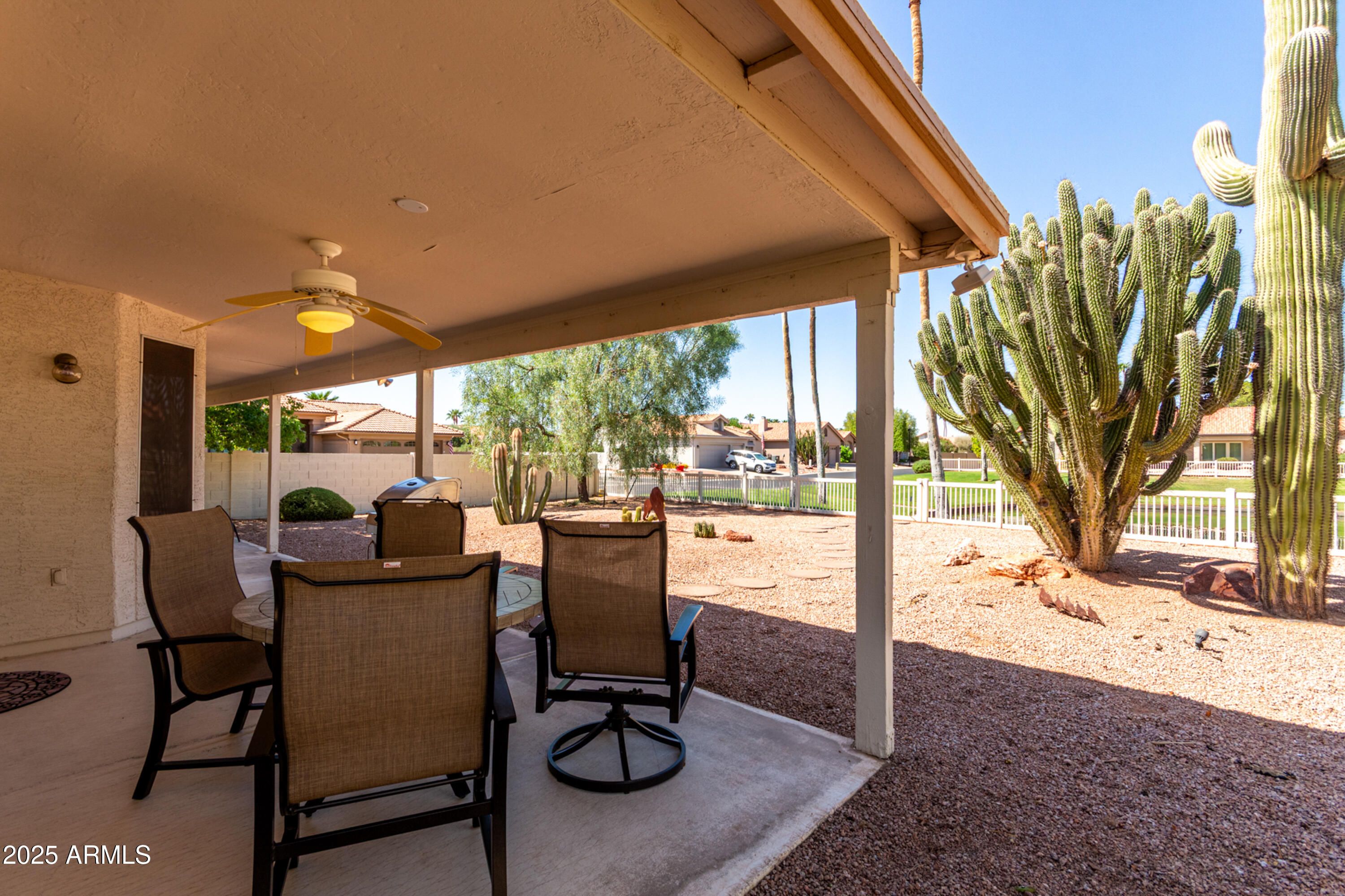 Discover this lovely, single-level, southwestern retreat in desirable Iron Wood at Sun Lakes. Located on the waterway, this on-owner home showcases stone countertops, custom cabinetry and hardware, and upgraded flooring that flows throughout the open, split bedroom floor plan. The expansive master suite becomes your retreat featuring a walk-in closet, spa-like, elegant glass shower, double sinks and new skylight. Entertain outdoors on the covered patio, and enjoy juices from your own fruit trees! Seller is including most furnishings. This special home epitomizes resort-style ''lock & leave'' living—where Arizona dreams meet reality. The Iron Oaks community includes 45 holes of golf, restaurants, fitness, tennis, pickleball, pools, and more! Note: new HVAC & Water Heater (12/24) and newly redone tile roof (9/25) Just bring your toothbrush! This home is being sold fully furnished, including furniture, beds, bedding, lamps, linens, most artwork, dishes, glassware, major appliances, TV's, kitchen appliances, patio furniture, cleaning supplies, garage tools, and more! All you need to do is move in. Truly a turnkey opportunity! Seller lives outside the USA (is a snowbird) and would simply love for her buyers to have almost everything. Note: the new underlayment on the SunVek roof has a 35-year warranty, fully transferred to the buyer, at no cost. (Over $30,000 in improvements have been made in the past 8 months!) Buyer must be willing to cooperate with FIRPTA documents, and Beth Mancini at PTA Title has already begun the process.