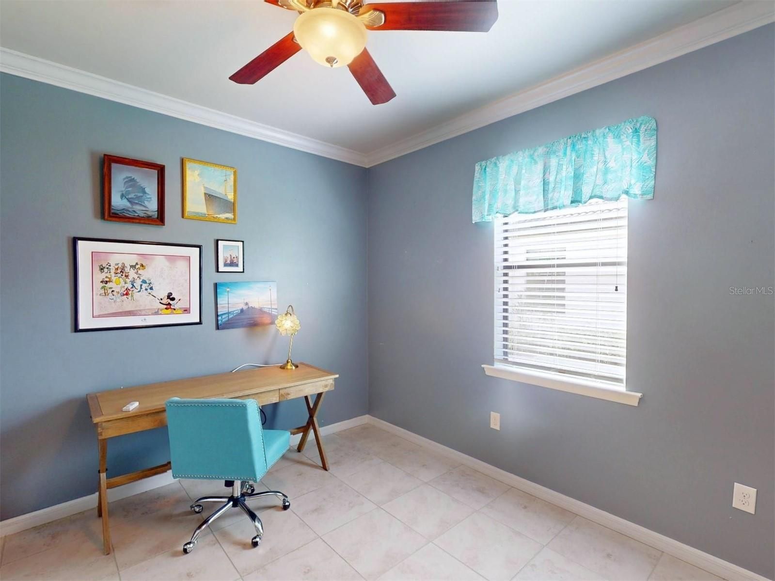 - Ceiling Fan(s), Crown Molding, High Ceilings, Living/Dining Room, Open Floorplan, Main Level Primary, Solid-Wood Cabinets, Stone Counters, Thermostat, Walk-In Closet(s)