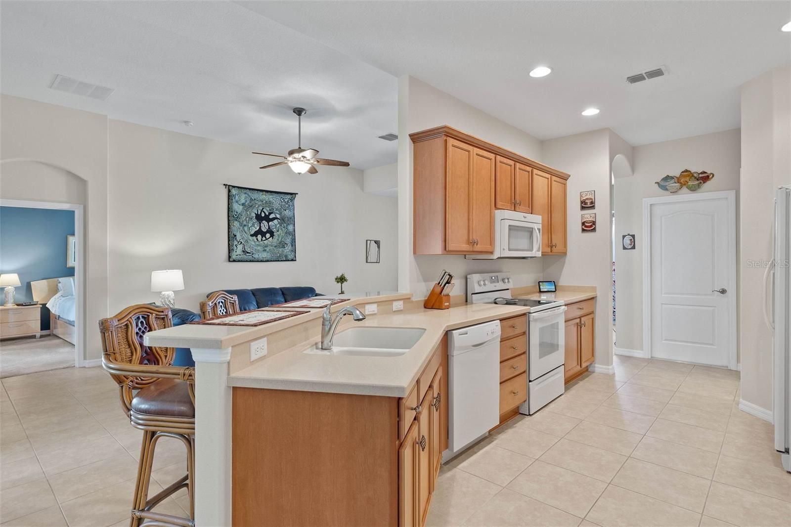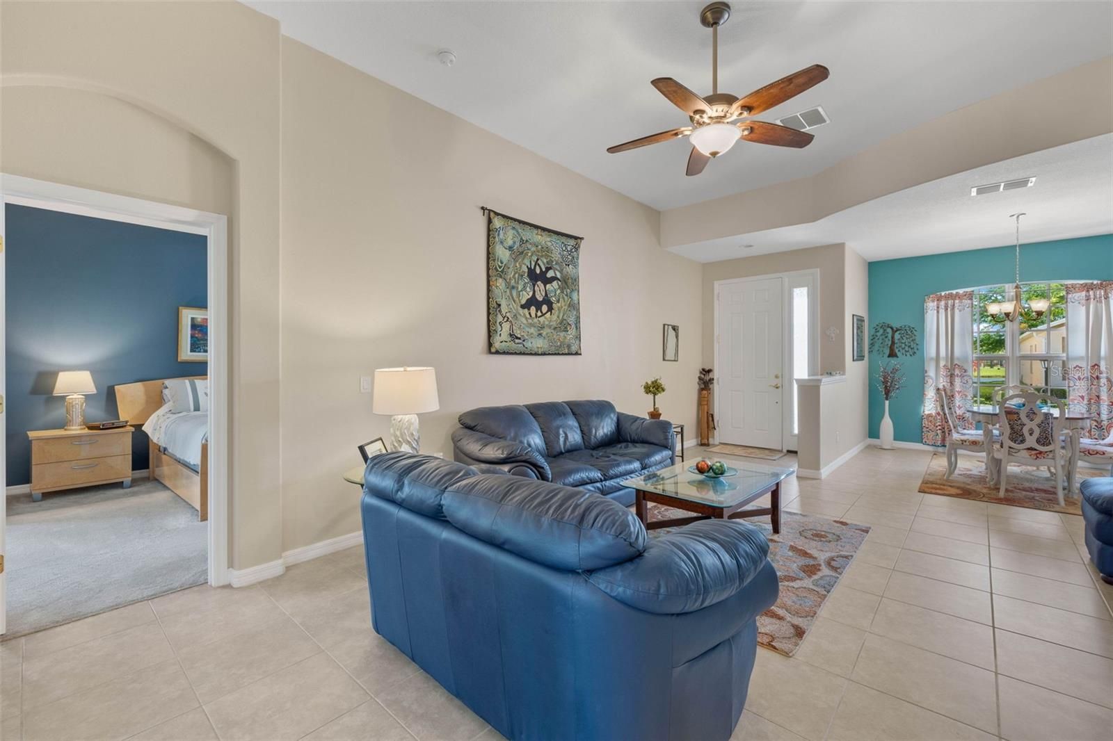 - Ceiling Fan(s), Eat-in Kitchen, Living/Dining Room, Solid Surface Counters, Solid-Wood Cabinets, Split Bedrooms, Walk-In Closet(s), Window Treatments