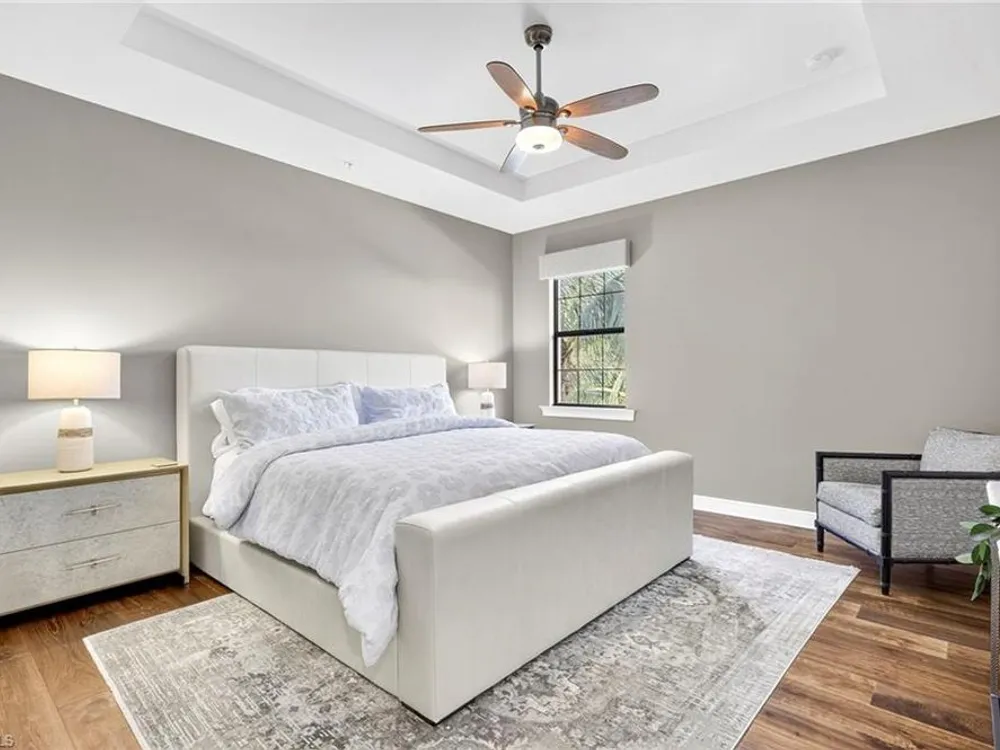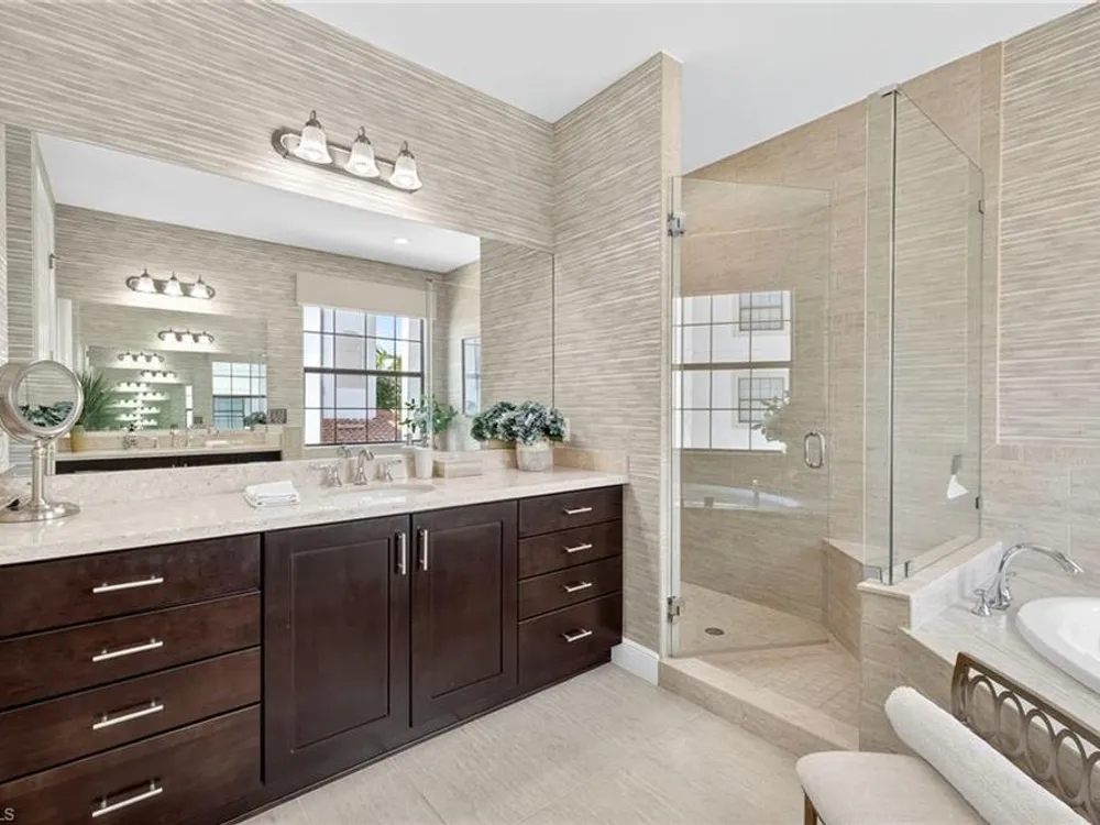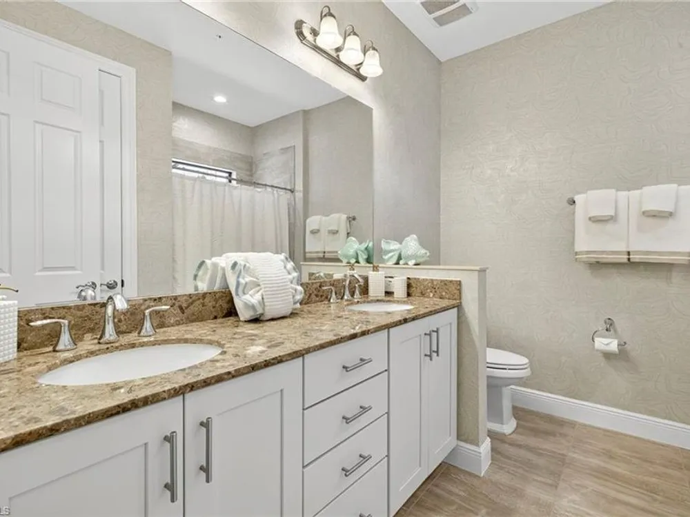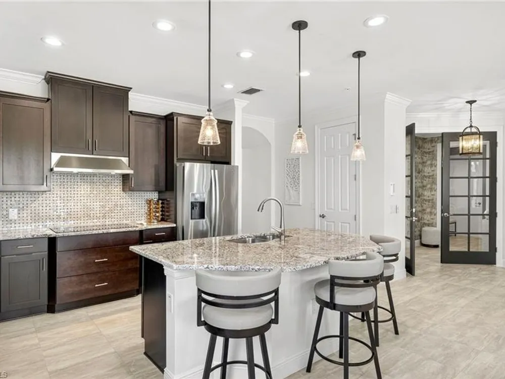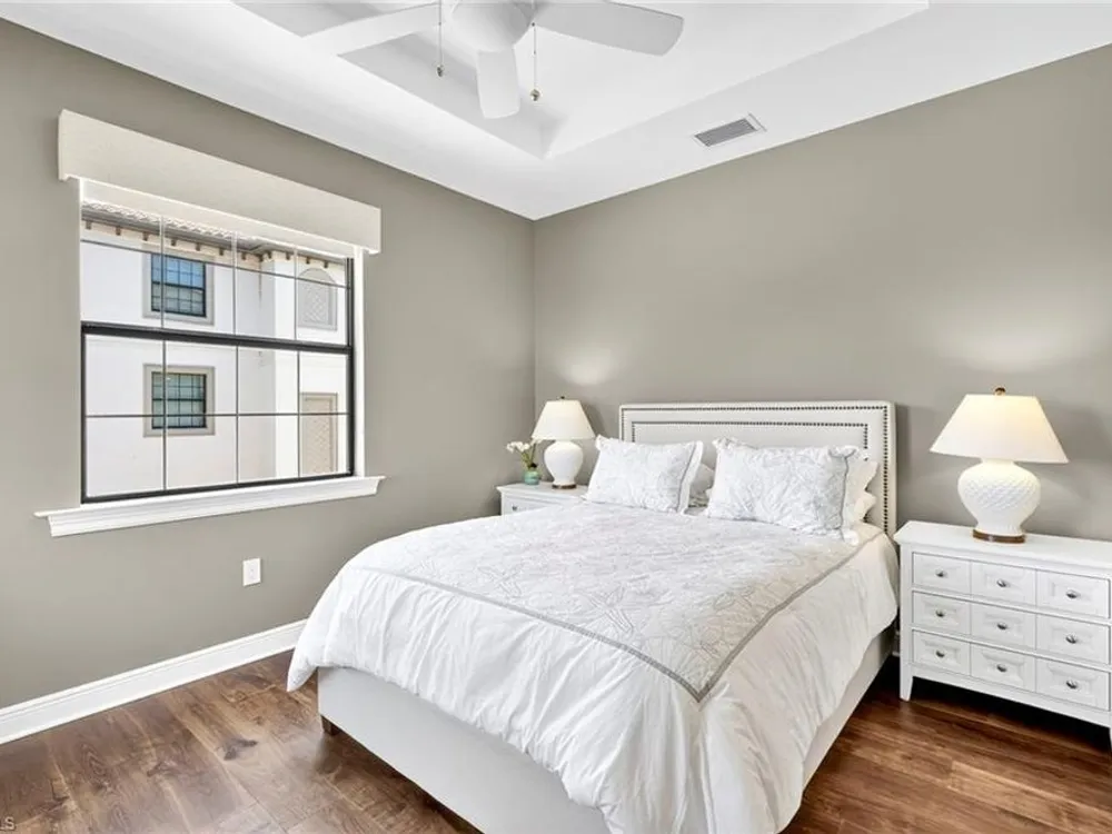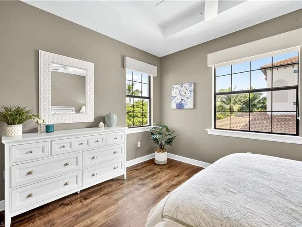 Experience Elevated Living at Terzetto in The ColonyThis stunning second-floor, furnished residence at Terzetto offers the feel of a spacious penthouse with a casual, yet elegant design. Tastefully decorated, the open-concept floor plan seamlessly connects indoor and outdoor living, ideal for both everyday comfort and effortless entertaining. Unique to second-floor units, enjoy a private open-air sun deck in addition to the expansive screened lanai—perfect for relaxing or taking in the peaceful, southern lake views. Every detail of this home reflects the highest level of upgrades, from the gourmet kitchen and luxurious bathrooms to premium flooring that extends gracefully onto the lanai. Custom features include remote-controlled electric shades in the great room, primary suite, and bath, as well as a built-in wine and beverage bar with wine cooler—adding a touch of sophistication to your entertaining space. Additional highlights include impact-resistant windows and doors throughout including electric storm shades on both the back and front balcony. 2-car private garage. This is a rare opportunity to enjoy refined living in one of The Colony’s most desirable communities.Amenities for Colony residents include dining at the Colony’s private and newly renovated Bay Club with unparalleled views of Estero Bay and kayak park. Pelican Landing amenities included in the HOA- private beach park with boat shuttle access from the community, tennis center, pickle-ball, bocce, attended fitness center and kayak park. Optional golf and sports memberships may be available at the Colony Golf Club and The Nest Country Club.