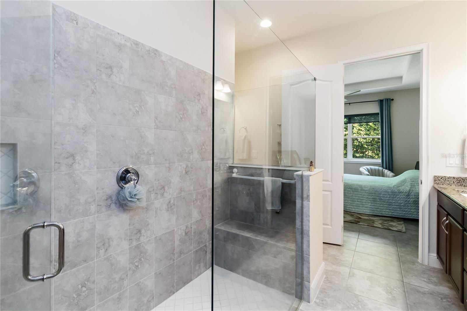 - Ceiling Fan(s), Eat-in Kitchen, High Ceilings, Kitchen/Family Room Combo, Living/Dining Room, Split Bedrooms, Stone Counters, Thermostat, Tray Ceiling(s), Walk-In Closet(s), Window Treatments