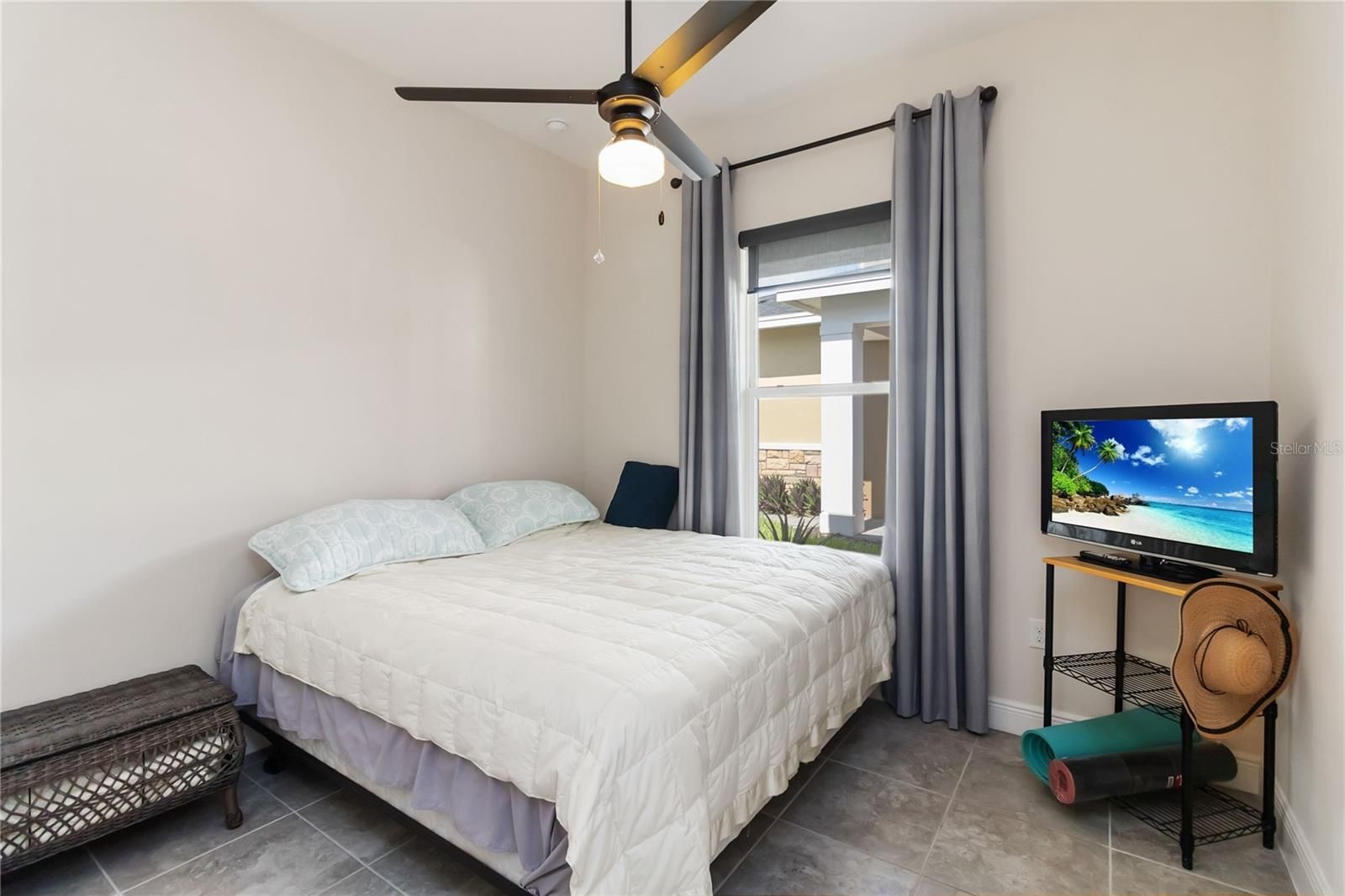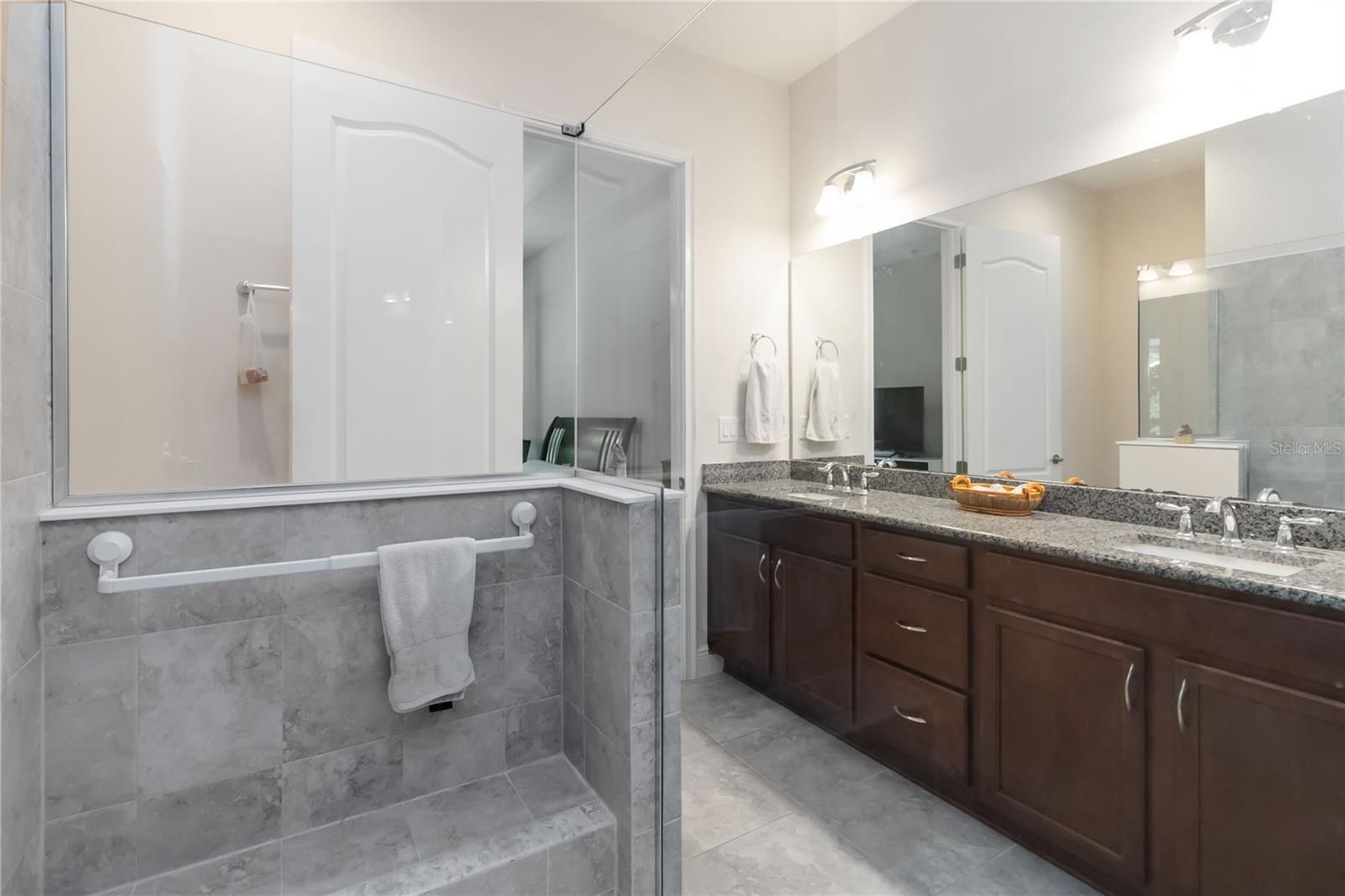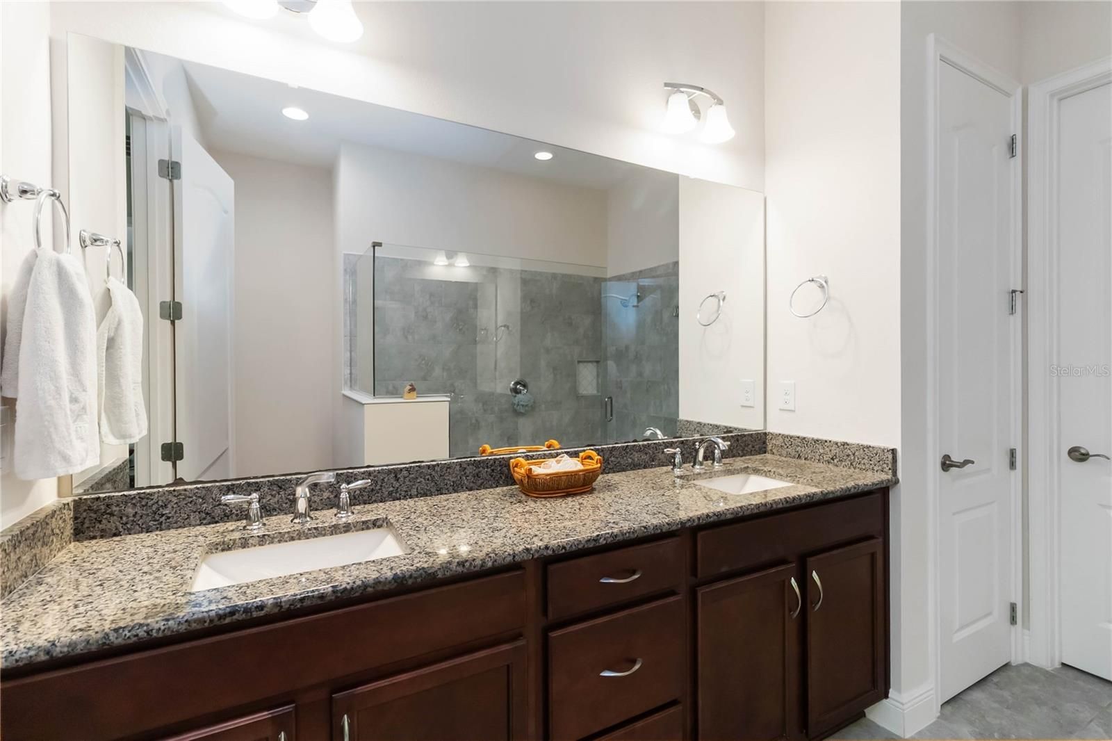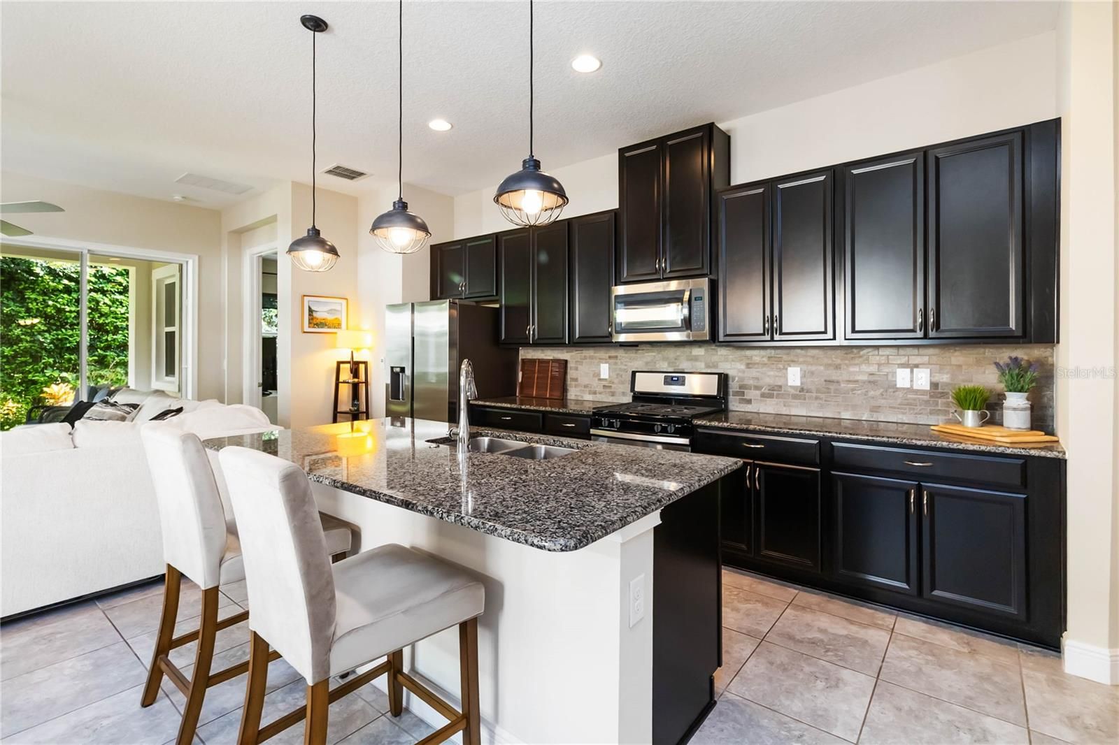 Meticulously kept! Absolutely Beautiful Daytona floor plan located in the well sought after Gated 55+ Active Del Webb Twin Lakes community. This floor plan is the largest of the Jones Homes villas! Twin Lakes HOA is responsible for the exterior of the villa, as well as maintaining the roof of the villa! Walk into the breathtaking property featuring ceramic tile throughout. Professionally painted, Great Décor. Upgraded kitchen 42" Cabinets, pantry, custom rounded granite countertops, Pendant lights, and chandelier. The living room features a transit window for extra natural lighting. Sliding glass doors lead to Lanai which features a privacy screen on the west side of the lanai that shades the sun, to enjoy your morning coffee or entertaining family and guest. Property is backed to privacy trees. Primary bedroom features a tray ceiling, and ceiling fan with light. The primary bedroom bathroom features custom closet by design shelving, glass shower doors, custom diamond shaped flooring in the shower, and custom tiling. Double vanity granite countertops. Large walk-in closet with closet by design shelving. Laundry room has tailored lower cabinets for great storage. Guest bedroom ceiling fan with light and custom blinds. Property has a newer Rinnai tankless water Heater. 2 car garage features custom paint and upper shelving for storage. Amenities include a Resort style pool, Lap Pool and 3rd pool on the carriage house side, 20,000 square foot Gorgeous Clubhouse, State of the art Fitness Center, Flex room, Tennis Courts, Putting Green, Walking Trails, Pickle Ball Court, Fishing, Kayaks, Pontoon Boats and Jon boat to use on Live Oak Lake! The community has many active and socializing activities. View today!