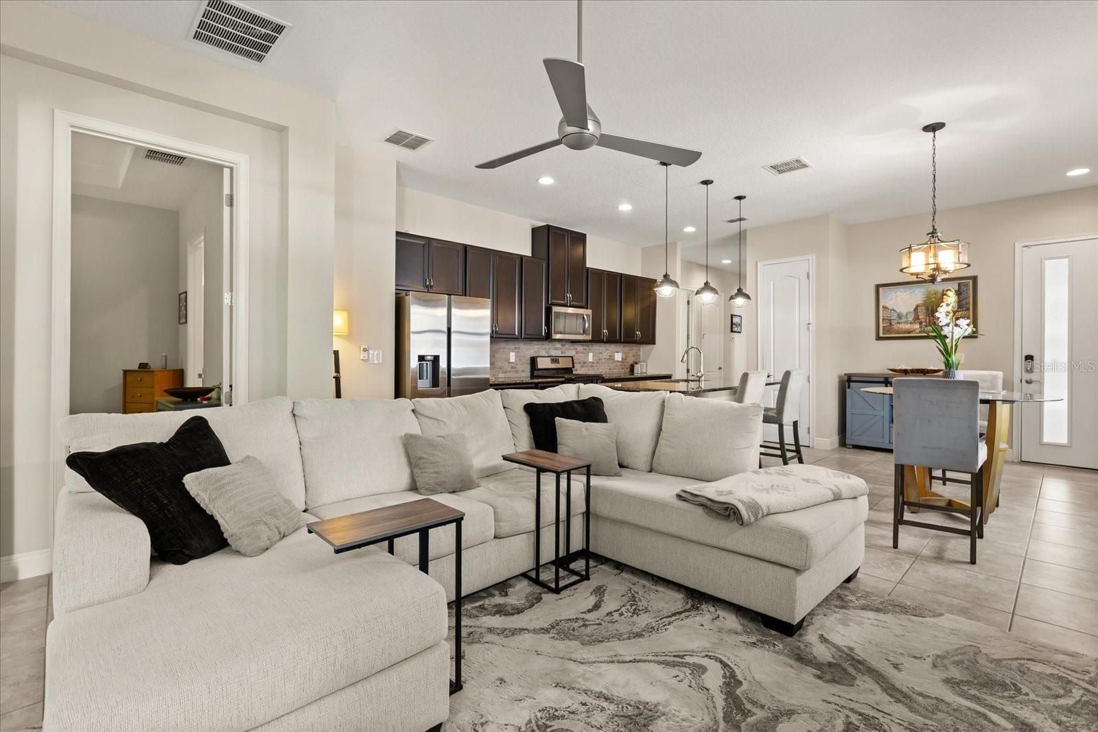 One or more photo(s) has been virtually staged. Welcome to your PEACEFUL retreat, a meticulously cared for 2 bed/2 bath villa located in the HIGHLY DESIRABLE 55+ gated community of TWIN LAKES. Beyond the home itself, the community offers a LOW-MAINTENANCE lifestyle with MANICURED GROUNDS and exterior house and roof maintenance included in the HOA fees. From the moment you arrive, you will appreciate the quiet surroundings and serene backyard setting with DOUBLE SLIDER DOORS, offering the perfect space to unwind and enjoy everyday living. Step inside and be greeted by a BEAUTIFULLY UPDATED INTERIOR featuring a neutral color palette and tile flooring that flows seamlessly throughout the home, creating a light, airy, and modern feel. Thoughtful features enhance both style and function, including an UPGRADED KITCHEN with 52" wood cabinetry with tons of STORAGE, a custom rounded granite countertop, blackout curtains, and cordless light-filtering blinds that allow you to customize your space for PRIVACY and COMFORT at any time of day. The primary bedroom offers a CUSTOM WALK-IN CLOSET, providing exceptional organization and storage. Throughout the home, you will find practical upgrades like an expansive bathroom with a shower and double sinks as well as UPGRADED TOILETS and an UPGRADED WATER HEATER, a full-sized laundry room with a full sink and washer/dryer, adding to the home’s overall EASE OF LIVING. A home security system is already in place, offering added PEACE OF MIND. Storage is never a concern with EXTRA STORAGE SPACE in the FULL 2 CAR GARAGE, making it easy to keep everything organized and accessible. Residents also enjoy soaking up the Florida sunshine at one of THREE STUNNING LAKEFRONT POOLS. The expansive 20,000-SQUARE-FOOT CLUBHOUSE offers a true RESORT-STYLE EXPERIENCE, featuring flexible gathering spaces, a bar with food service, a modern fitness center, sauna, billiards room, poker and gaming areas, arts and crafts studio, and a full lineup of dance, yoga, and fitness classes. OUTDOOR AMENITIES include tennis, bocce, and pickleball courts. Spend your days fishing, boating, or kayaking from the lakefront pier, or explore LIVE OAK LAKE by community jon or pontoon boat. For those who love gardening, there’s even a community garden where you can cultivate your own space. CONVENIENCE is key, with quick access to a variety of grocery stores, hospitals, and restaurants, making daily errands SIMPLE and EFFICIENT. If you are looking for a home that blends COMFORT, FUNCTIONALITY, and a PEACEFUL SETTING, this is an opportunity you will not want to miss. Come experience the lifestyle this home has to offer and imagine your next chapter here.